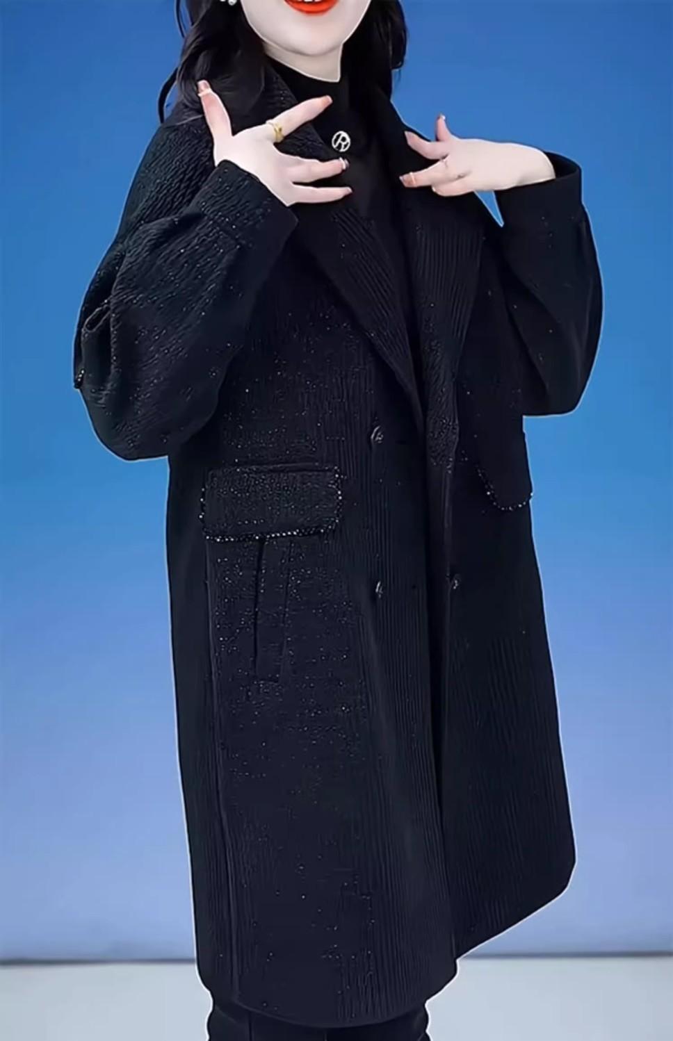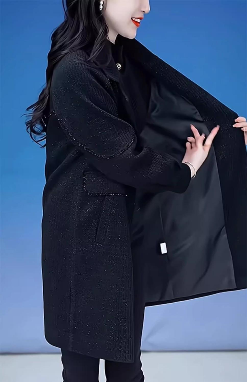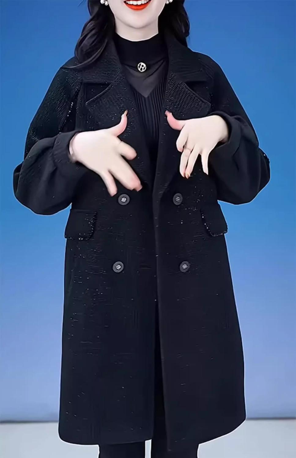 Abrigo de Lana para Mujer 2023 Nueva Moda de Otoño e Invierno Elegante Traje de Madre con Cuello Negro Largo Medio Abrigo de Lana