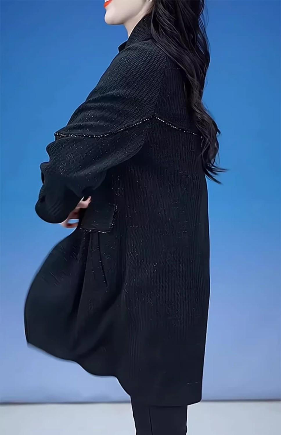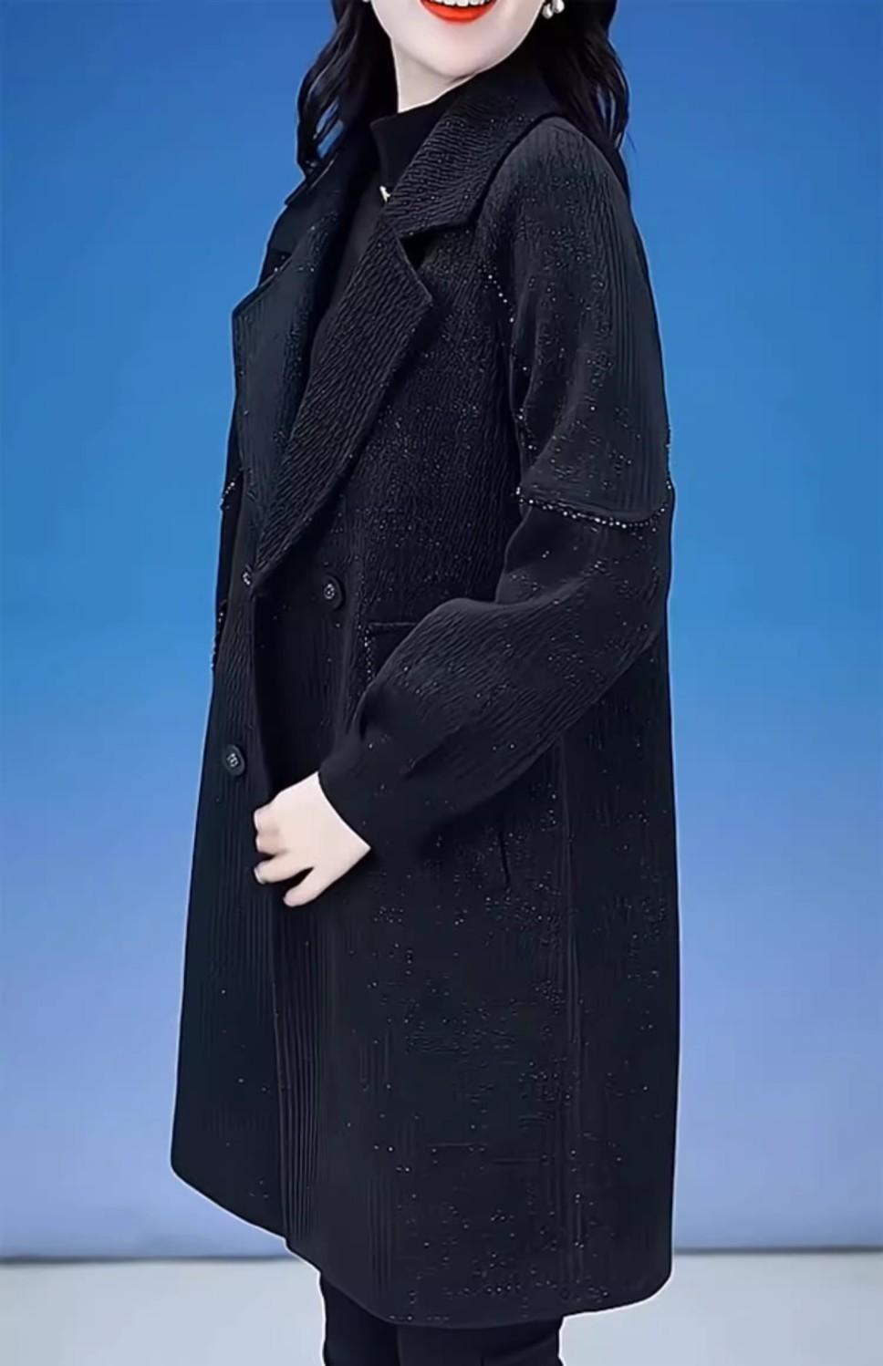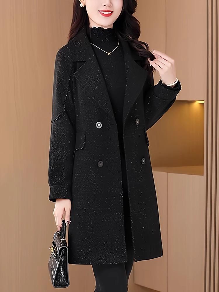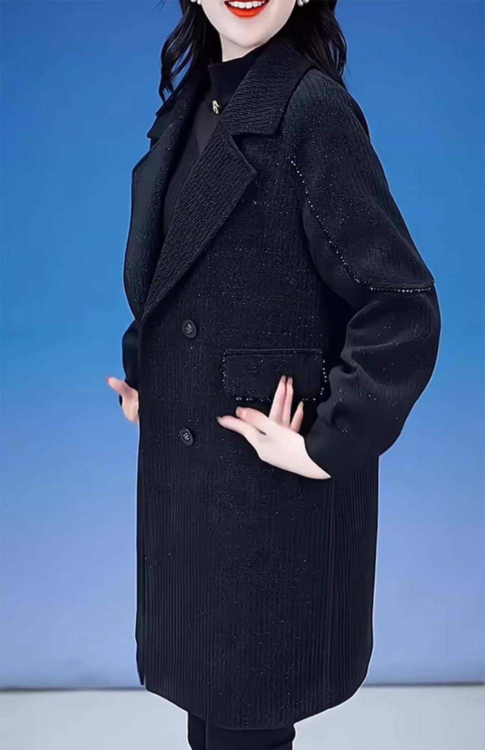Abrigo de Lana para Mujer 2023 Nueva Moda de Otoño e Invierno Elegante Traje de Madre con Cuello Negro Largo Medio Abrigo de Lana
