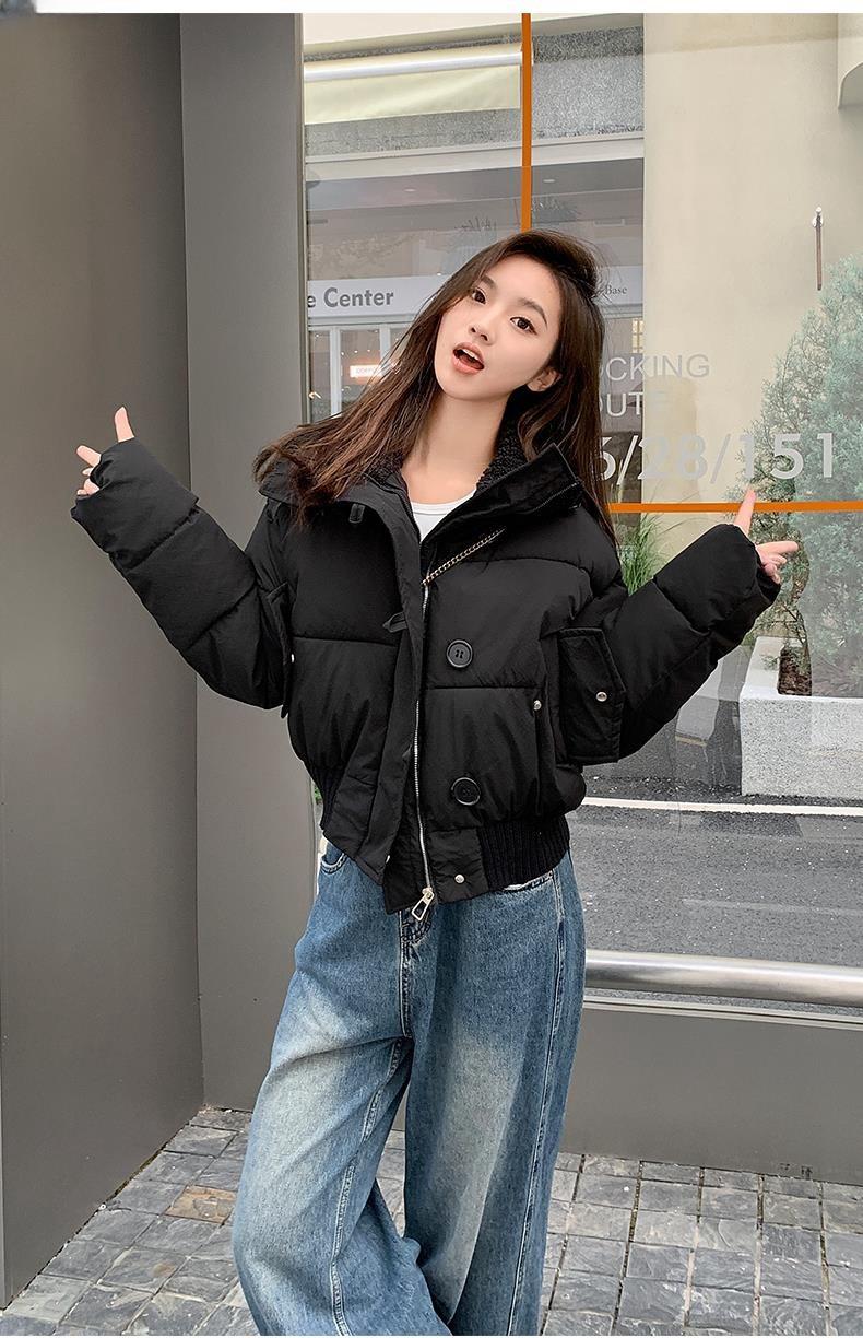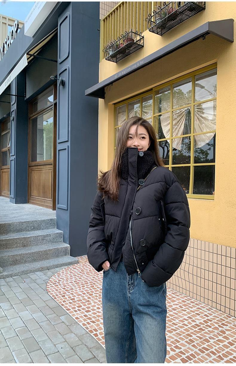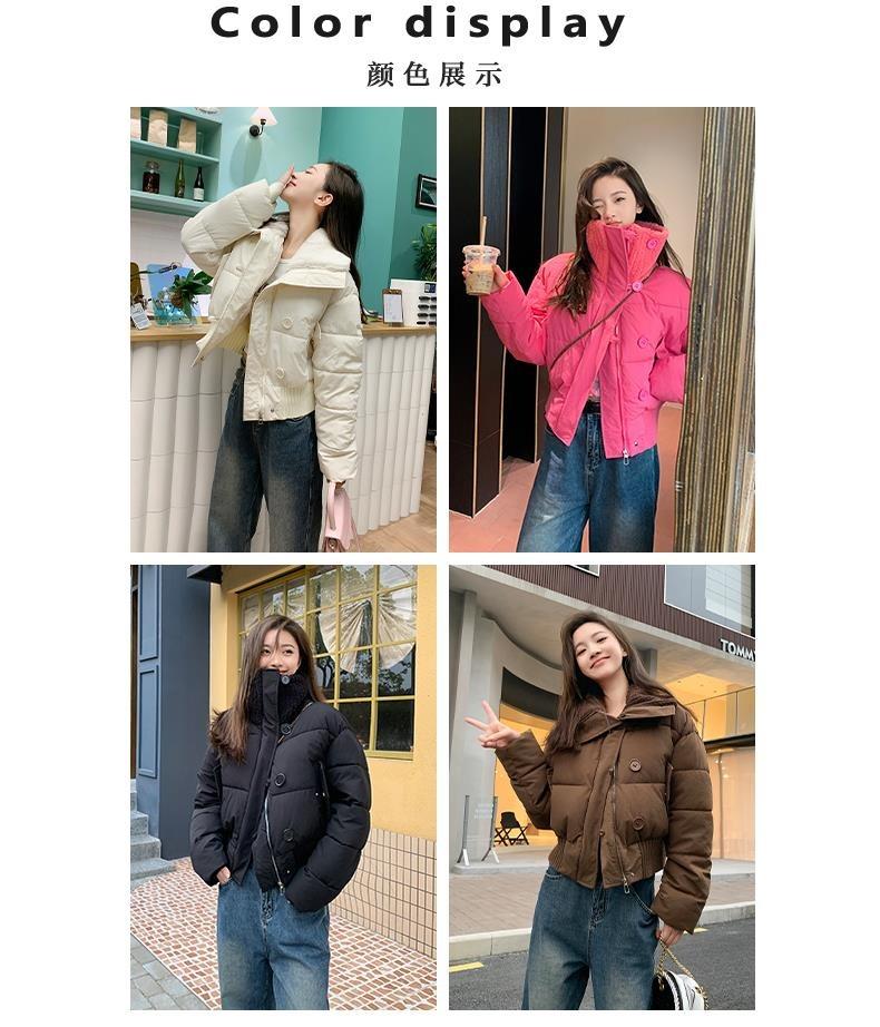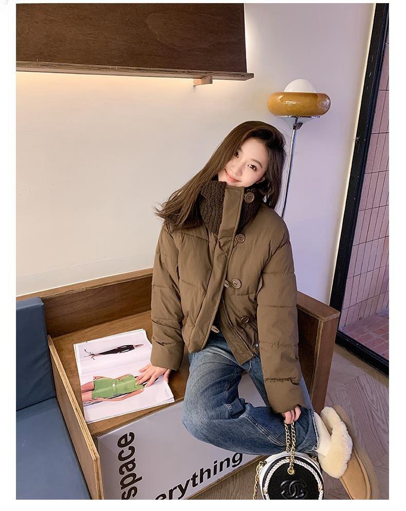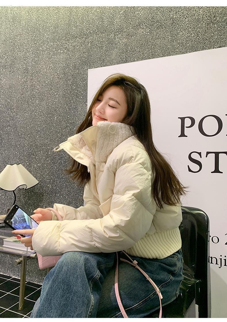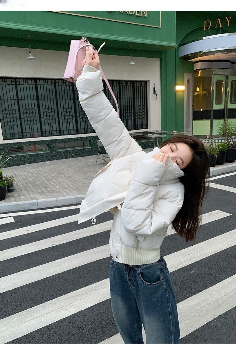 2025 Invierno para Mujer Nueva Chaqueta Corta Acolchada de Algodón con Cuello Alto, Abrigo Holgado de Moda Estilo Coreano