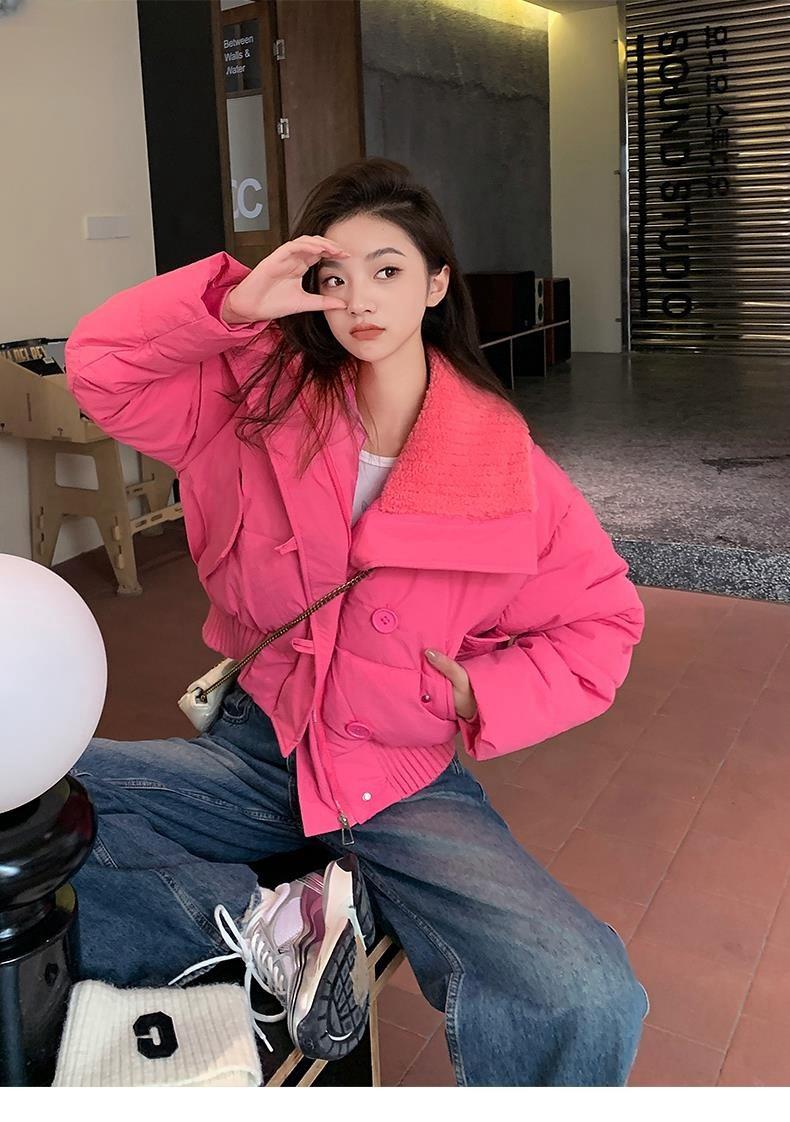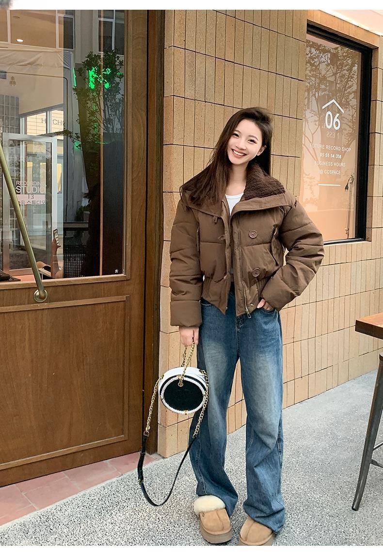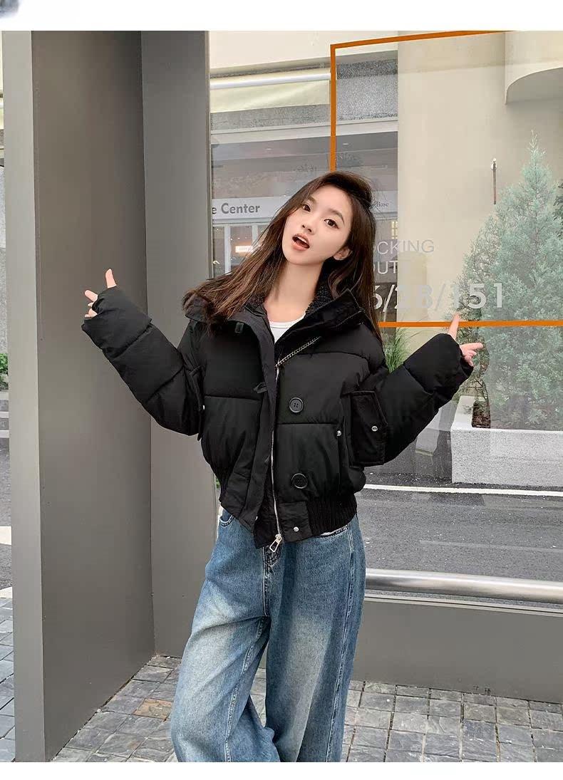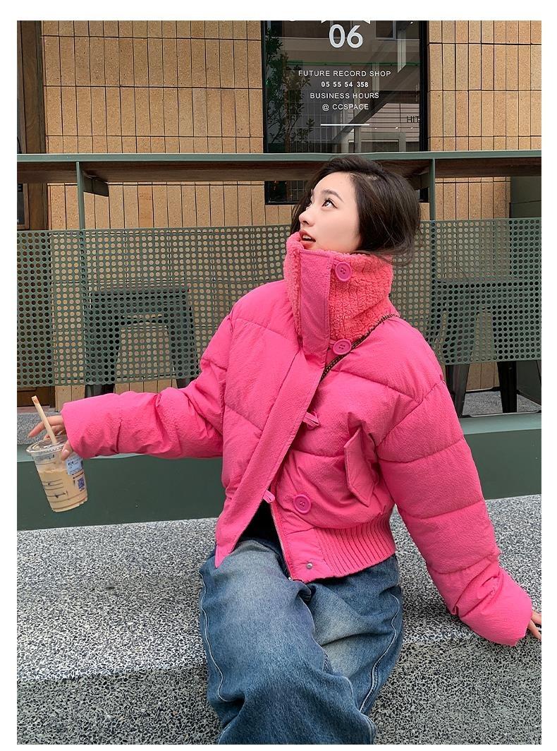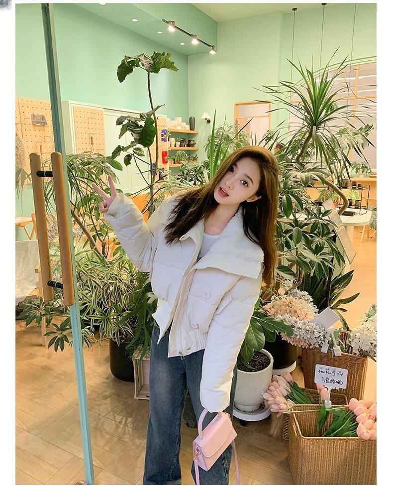 2025 Invierno para Mujer Nueva Chaqueta Corta Acolchada de Algodón con Cuello Alto, Abrigo Holgado de Moda Estilo Coreano