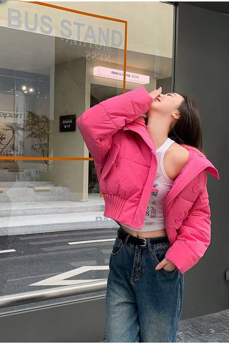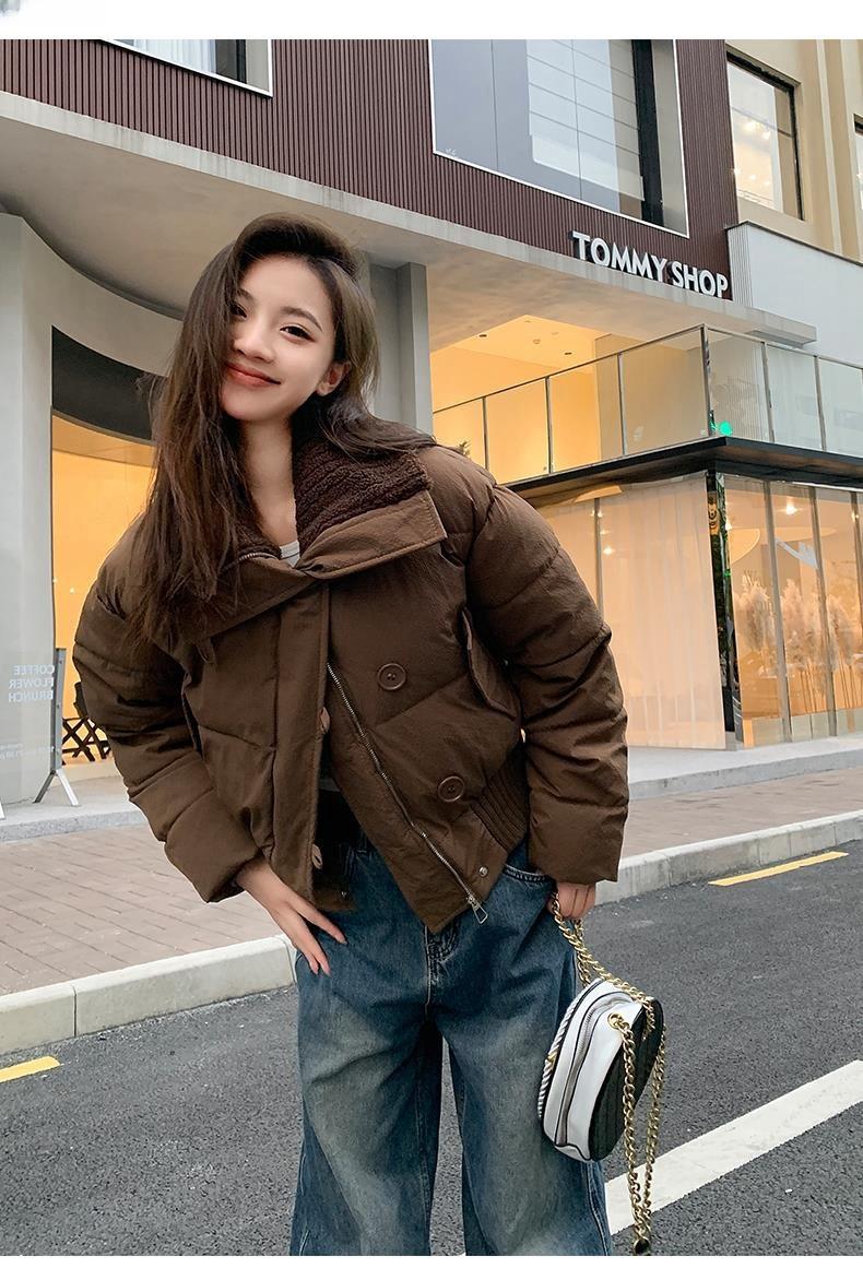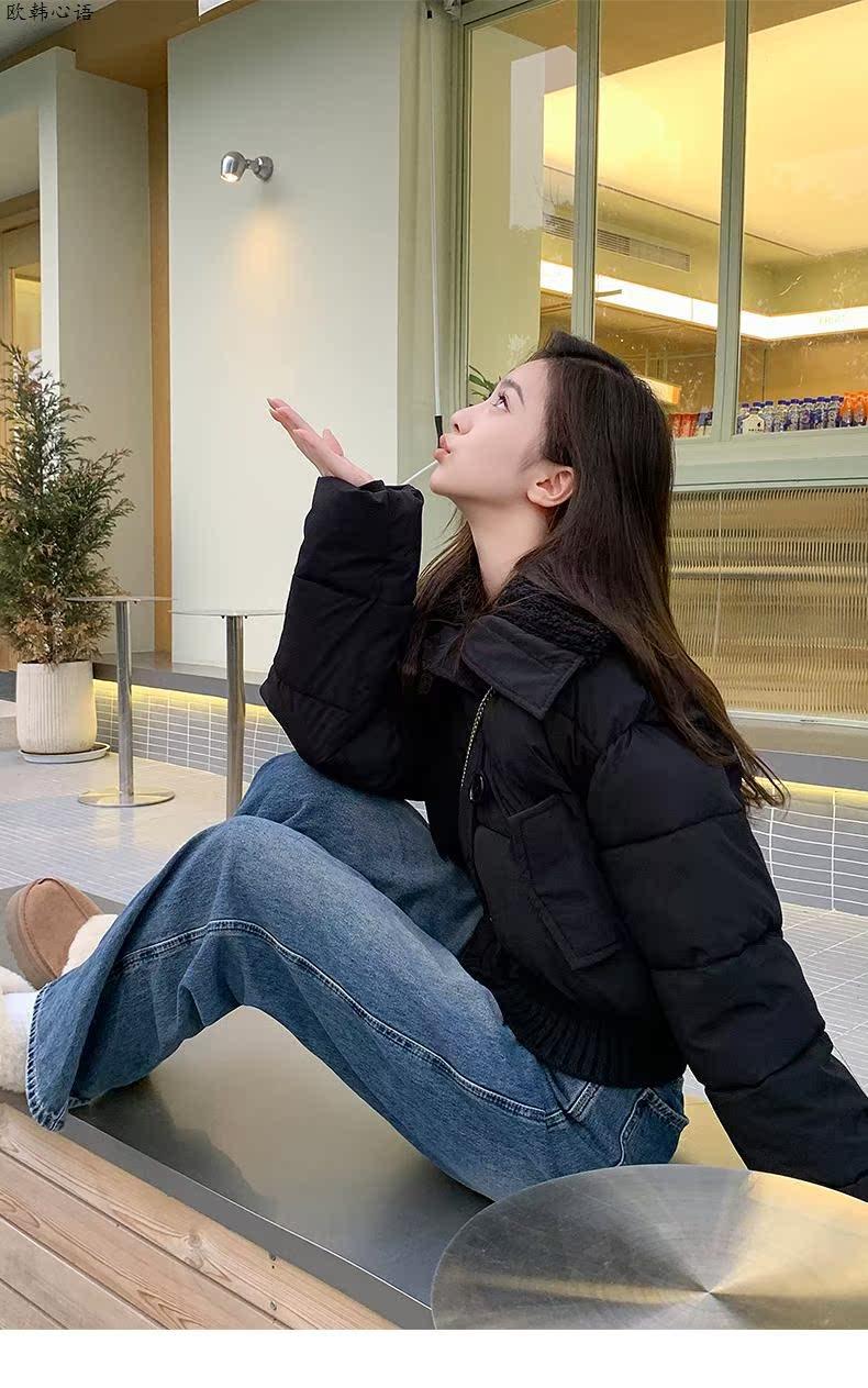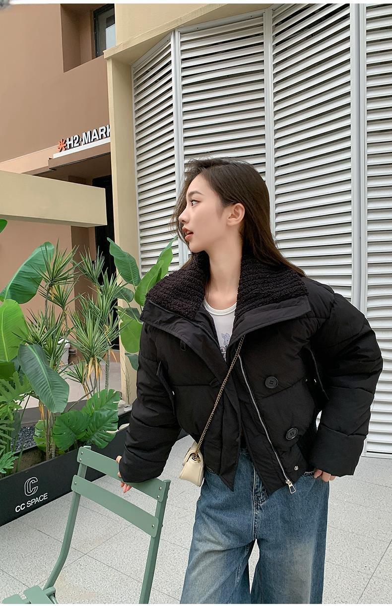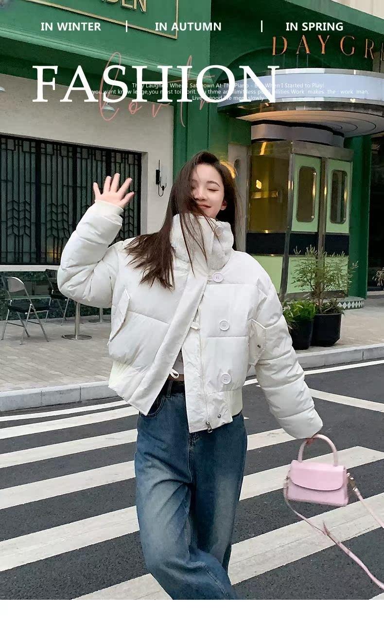 2025 Invierno para Mujer Nueva Chaqueta Corta Acolchada de Algodón con Cuello Alto, Abrigo Holgado de Moda Estilo Coreano