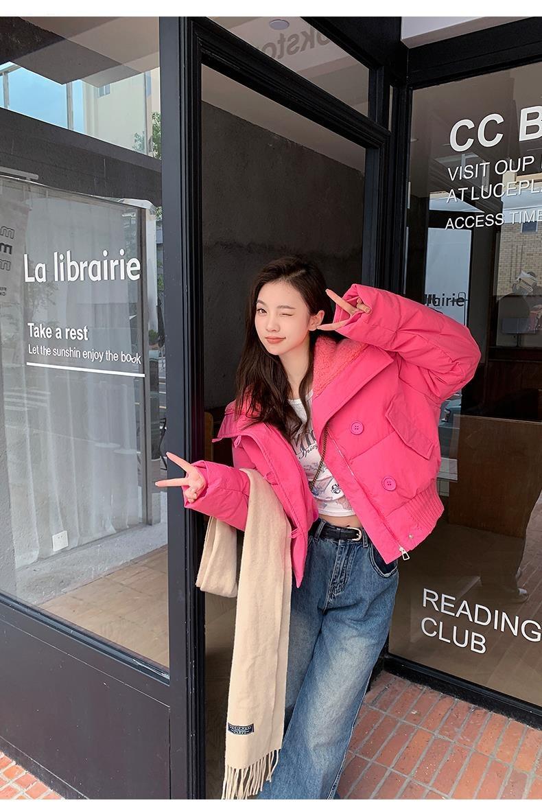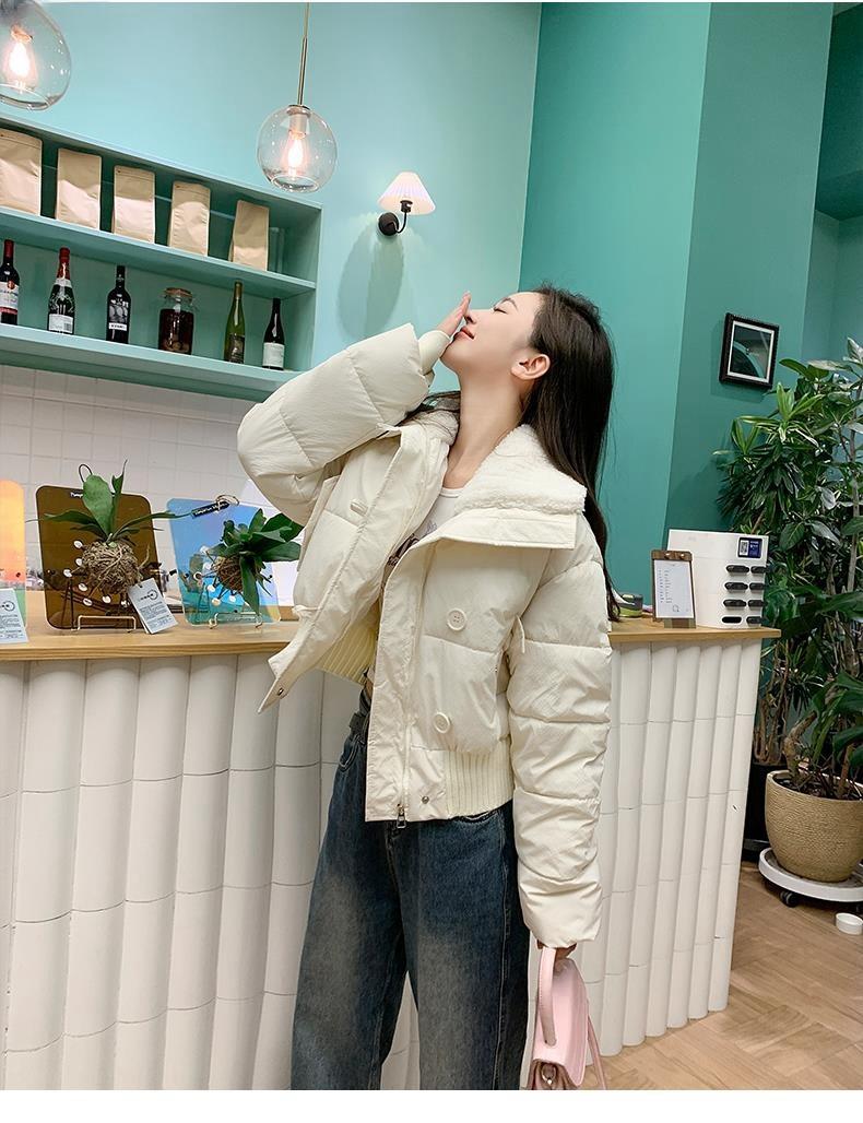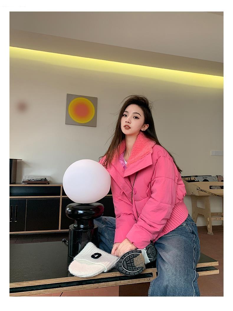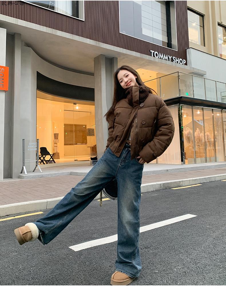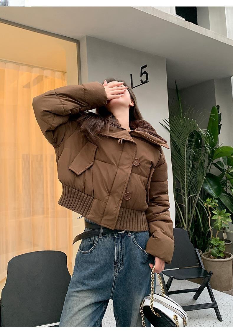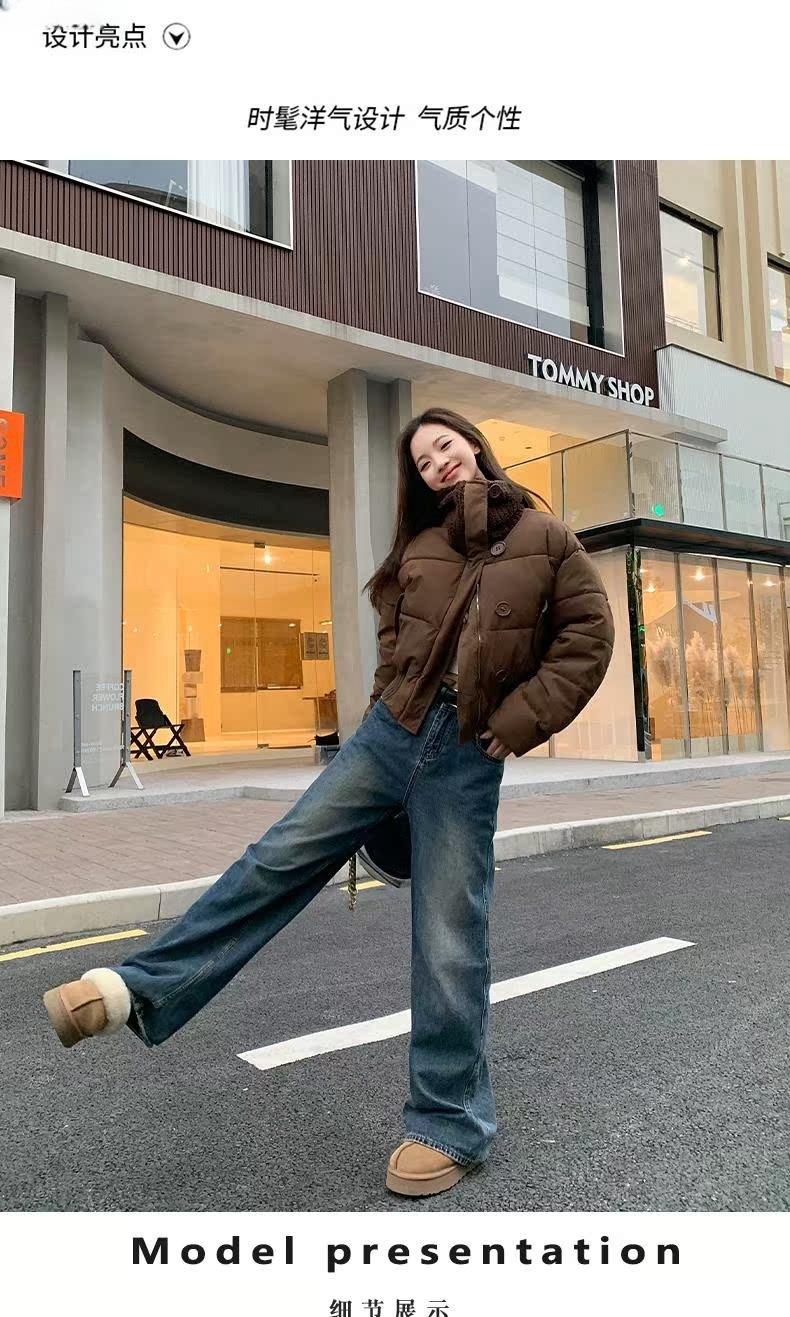 2025 Invierno para Mujer Nueva Chaqueta Corta Acolchada de Algodón con Cuello Alto, Abrigo Holgado de Moda Estilo Coreano