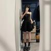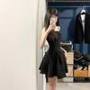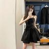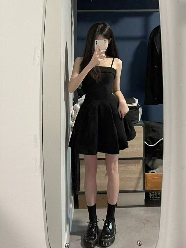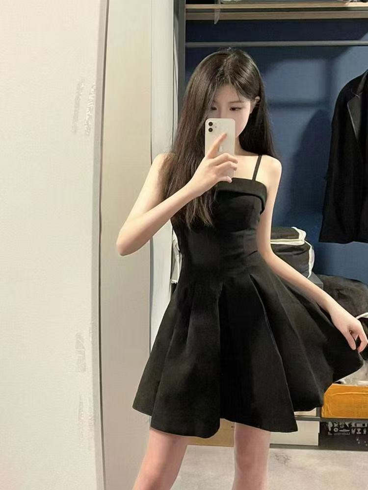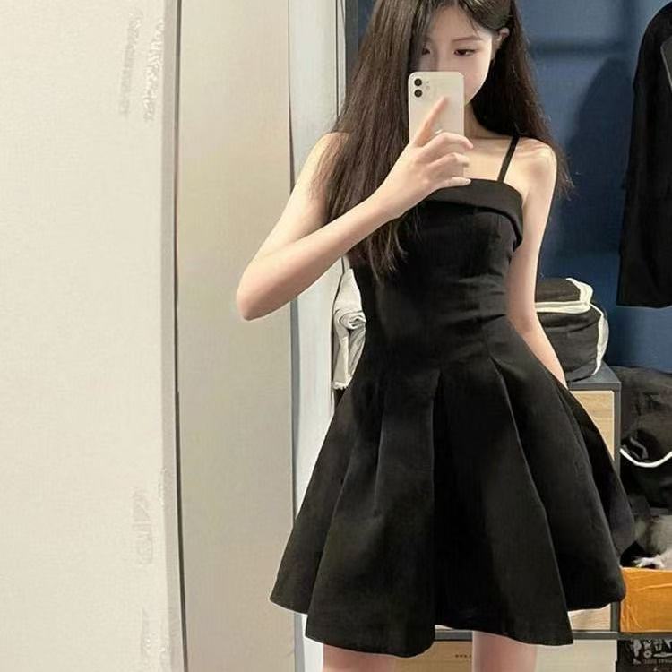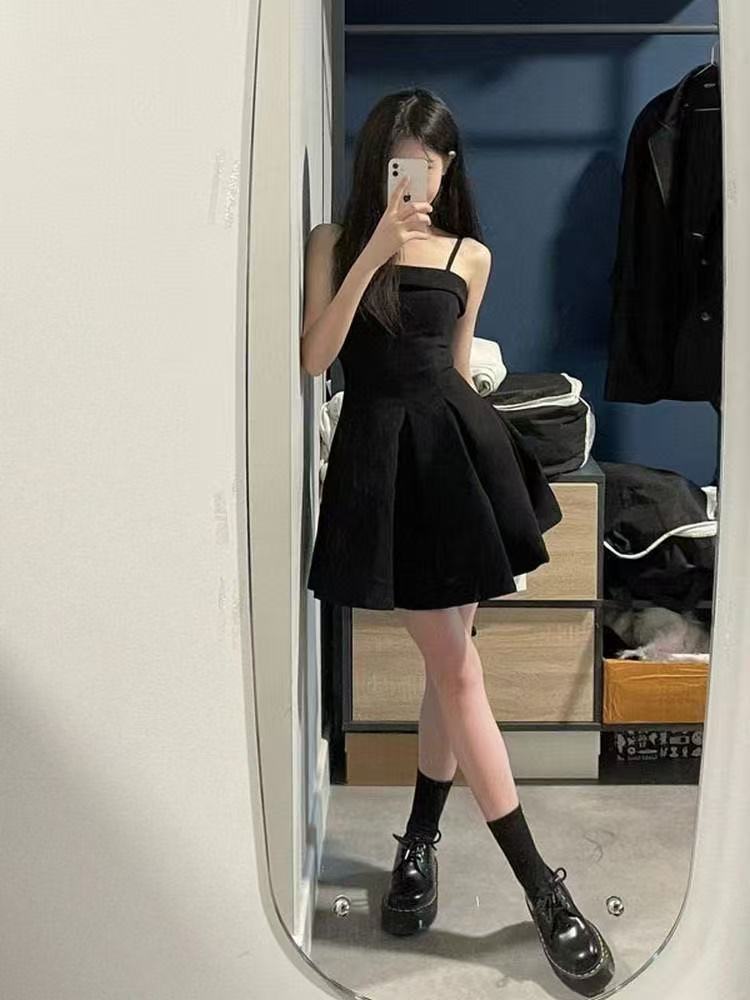 Vestido Negro Hepburn Francés con Tirantes Nuevo Temperamento de Alta Gama Adelgazante de Cintura Falda Corta Pequeño Vestido Negro