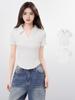 Playera Polo Blanca Corta Lel para Mujer Verano Hombro Cuello en V Ajustada Manga Corta Top 2025 Nuevo Estilo