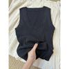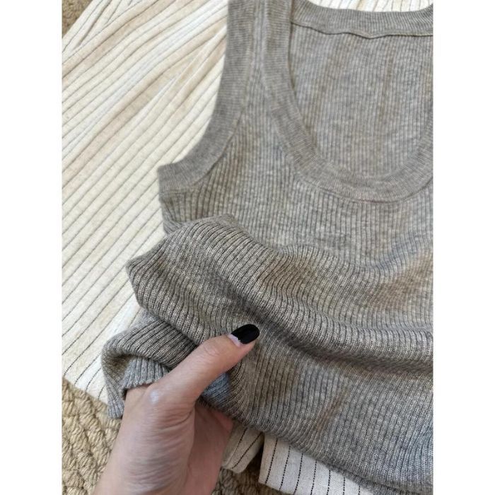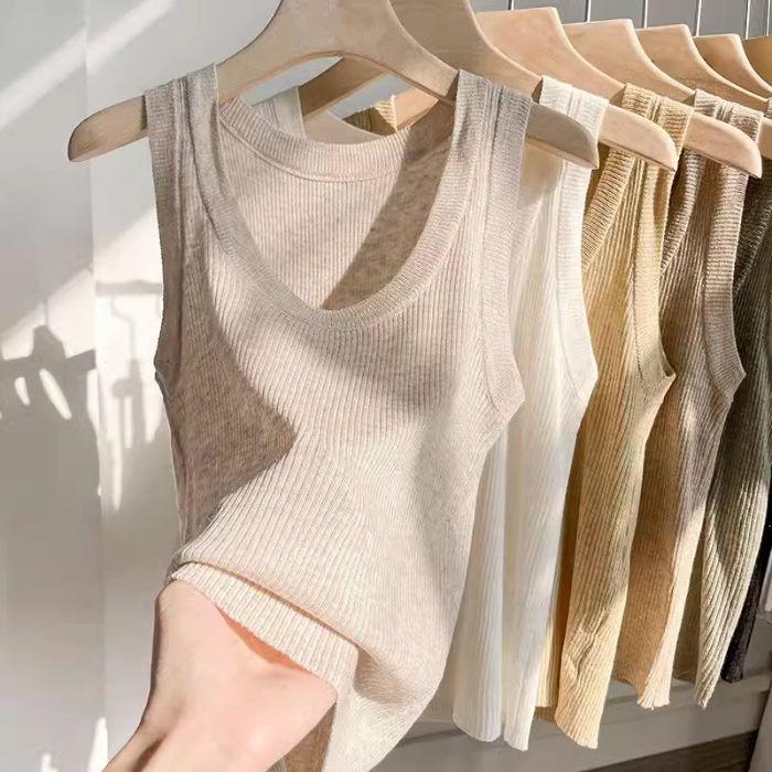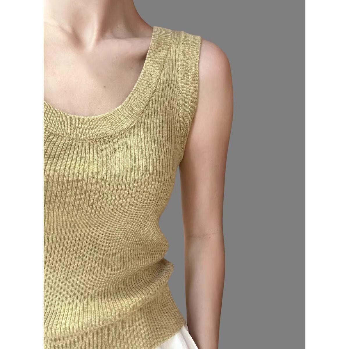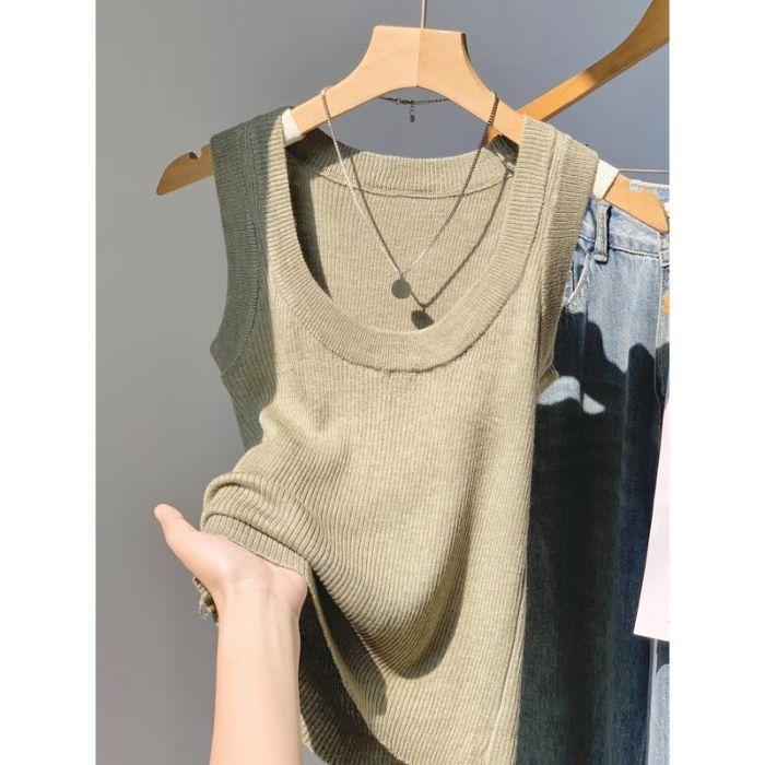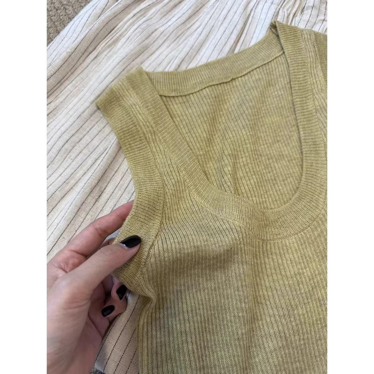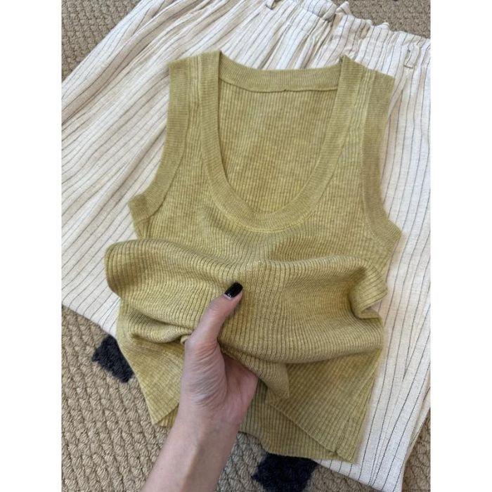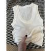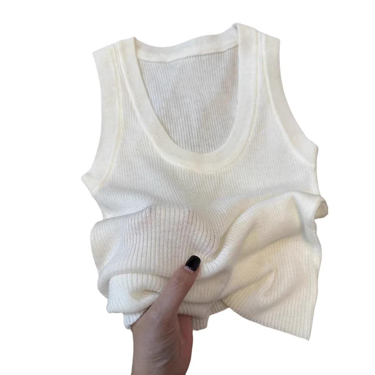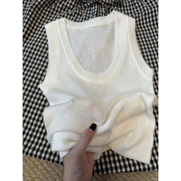 Camisola de Punto Blanca Adelgazante de Cuello U para Mujer Verano 2025 Texturizada Coreana Versátil Sin Mangas Capa Base