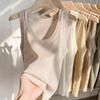 Chaleco blanco delgado con cuello en U de tirantes tejidos para mujer 2025 verano texturizado estilo coreano combinable tops sin mangas fondo