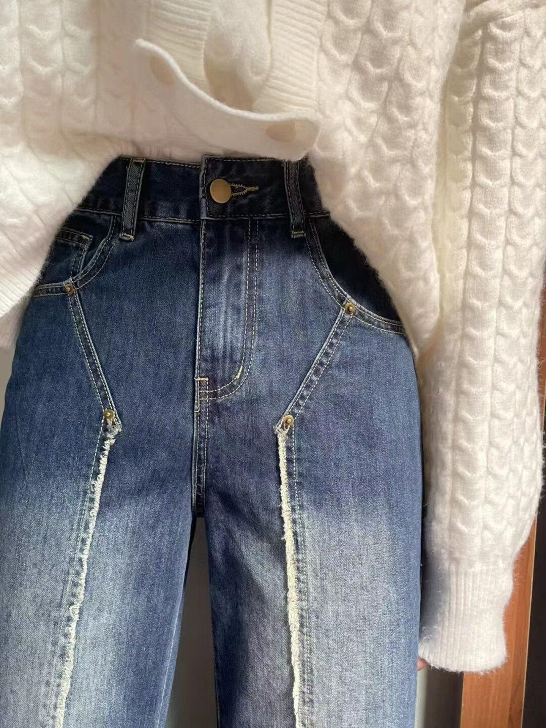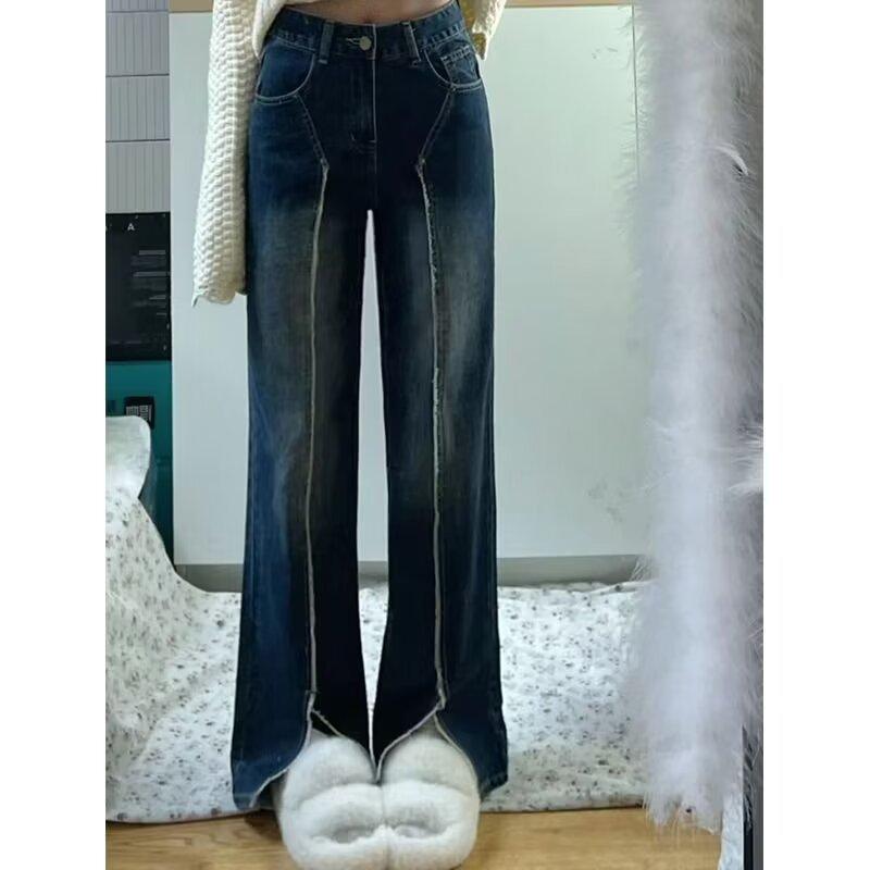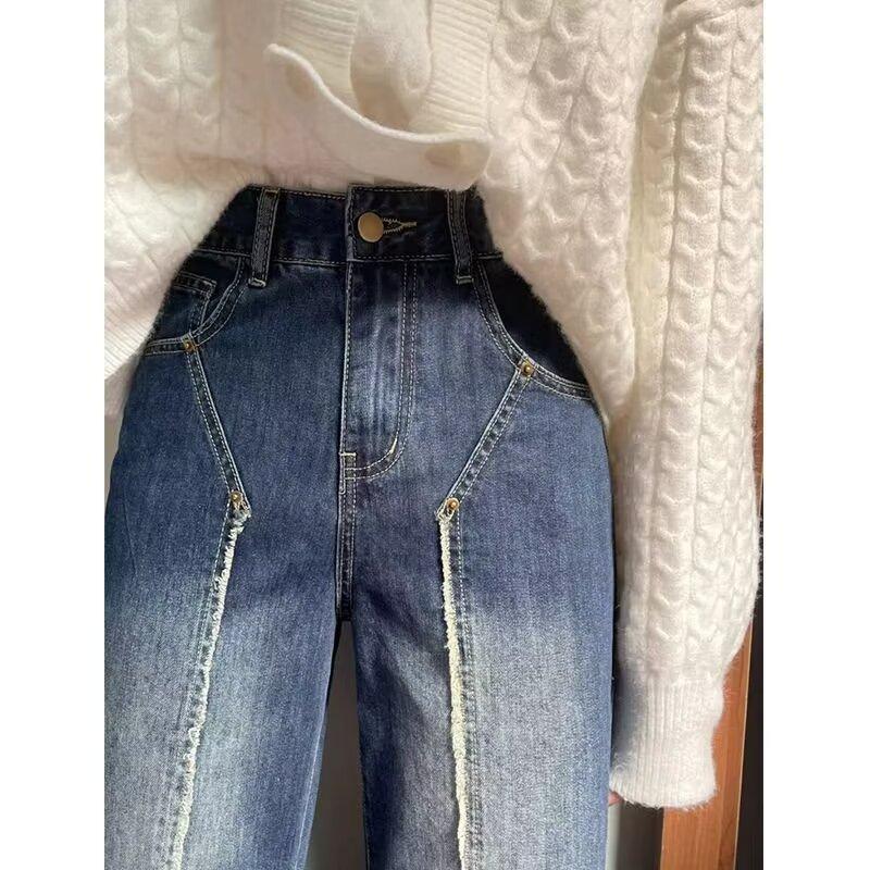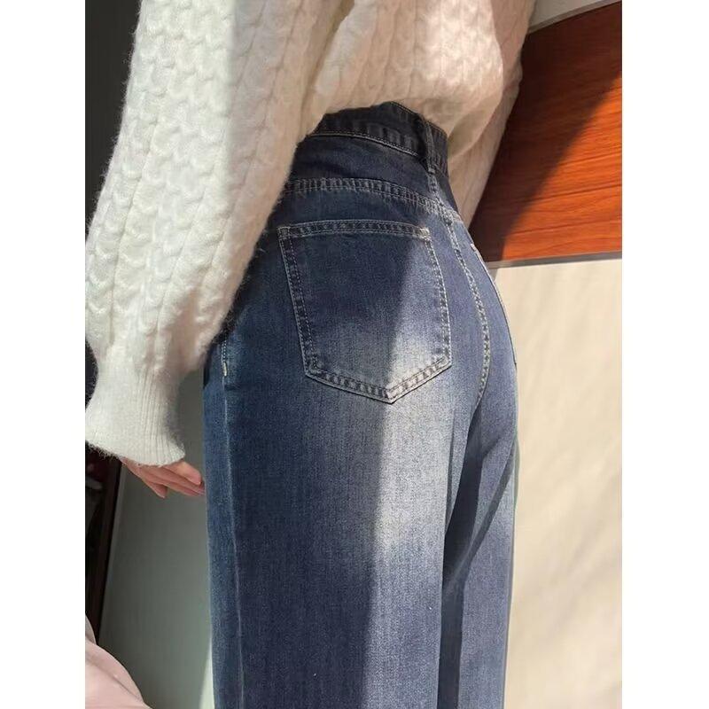 Talla grande chica gordita Jeans Ram Edge para Mujer Primavera y Otoño Retro Adelgazantes Cintura Alta Rectos Pantalones Sueltos de Pierna Ancha