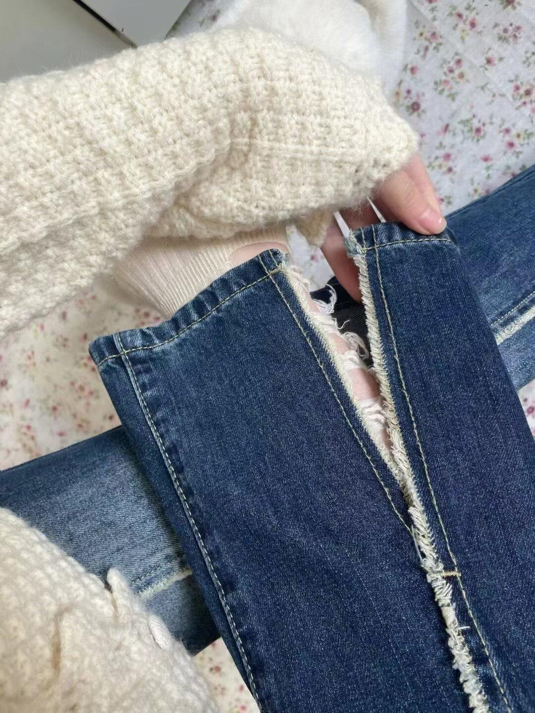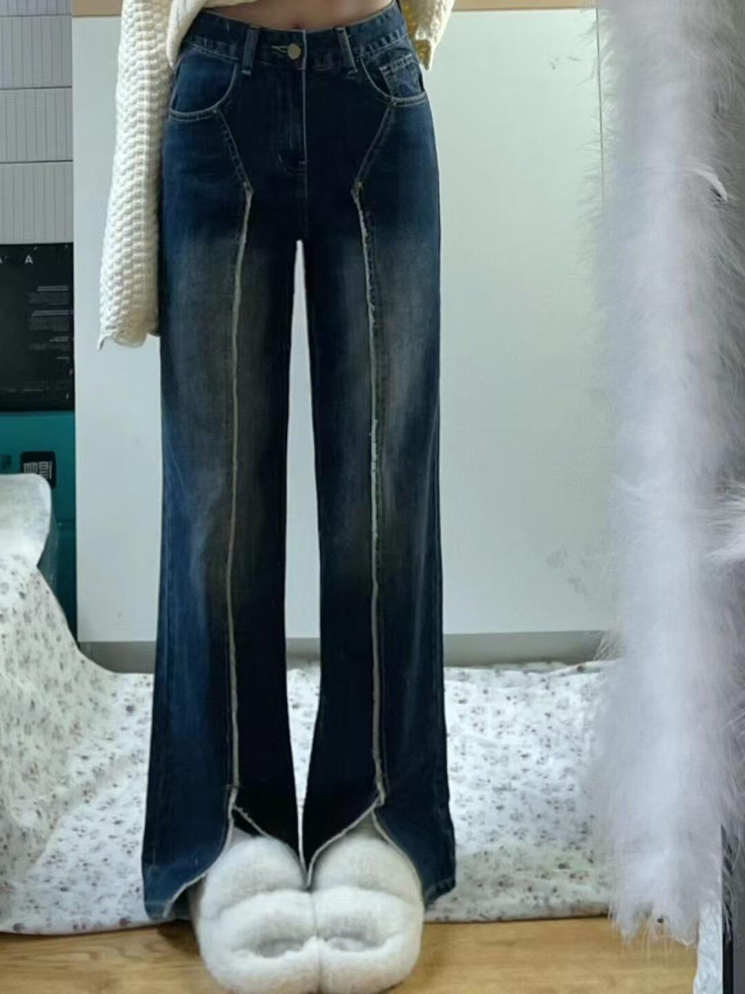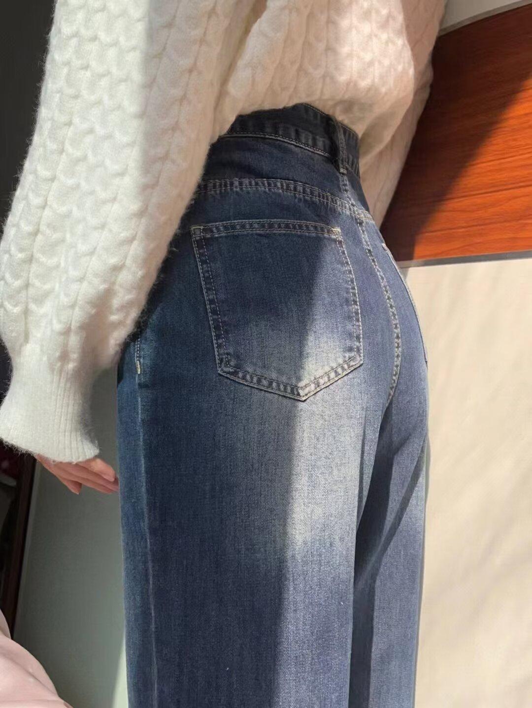 Talla grande chica gordita Jeans Ram Edge para Mujer Primavera y Otoño Retro Adelgazantes Cintura Alta Rectos Pantalones Sueltos de Pierna Ancha