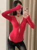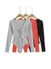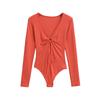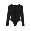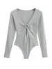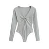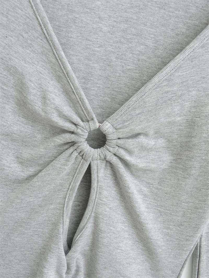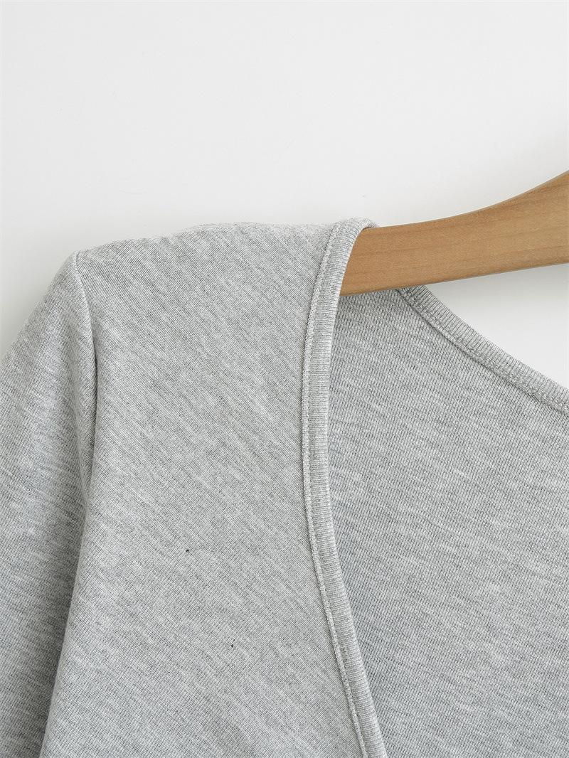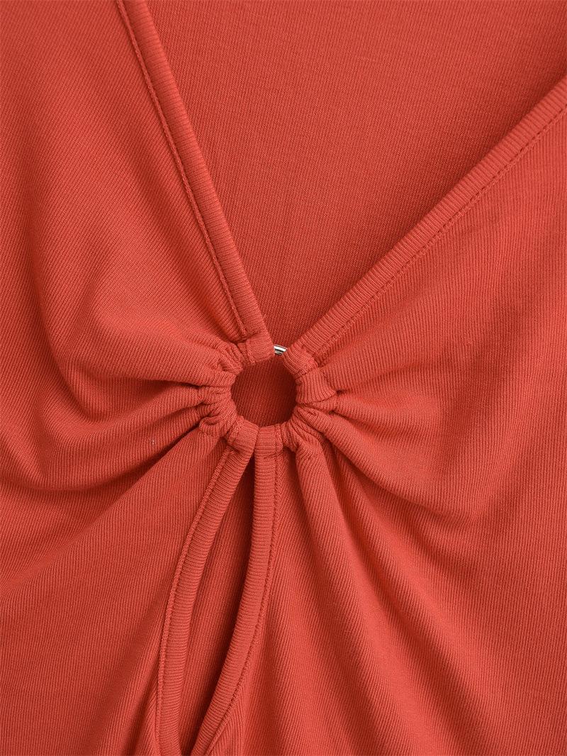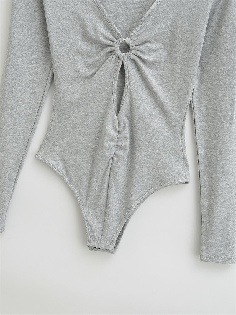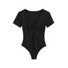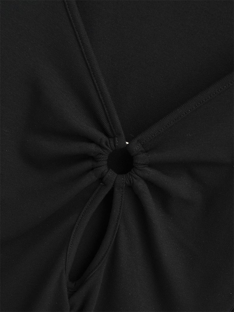 Estilo Europeo y Americano Sexy Escote Profundo en V de Corte Bajo Sentido del Diseño Top Calado Chica Picante Camiseta de Manga Larga Mono Fondo de Manga Corta para Mujer