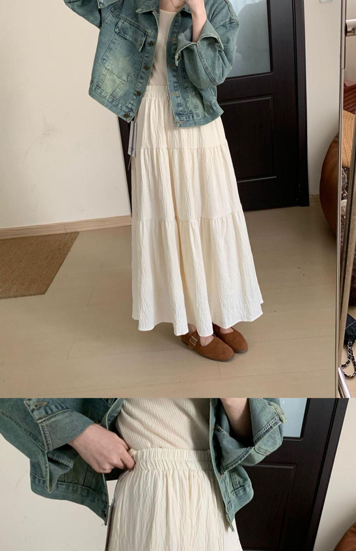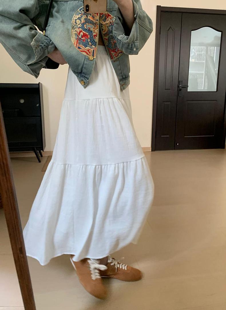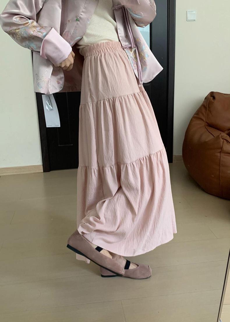 Falda larga de Tencel drapeada adelgazante de cintura alta 2024 primavera y verano nuevo estilo coreano versátil delgada temperamento estilo hada