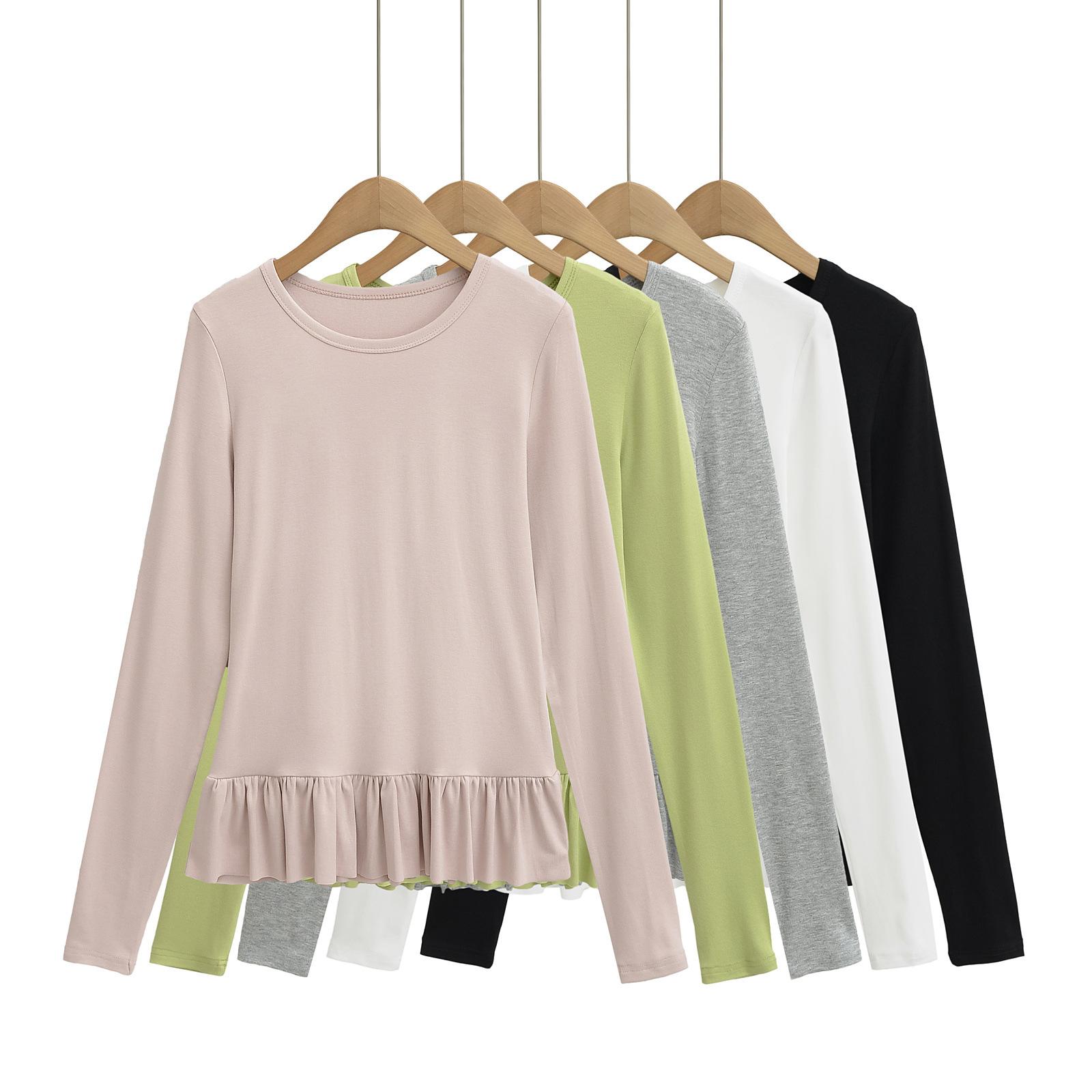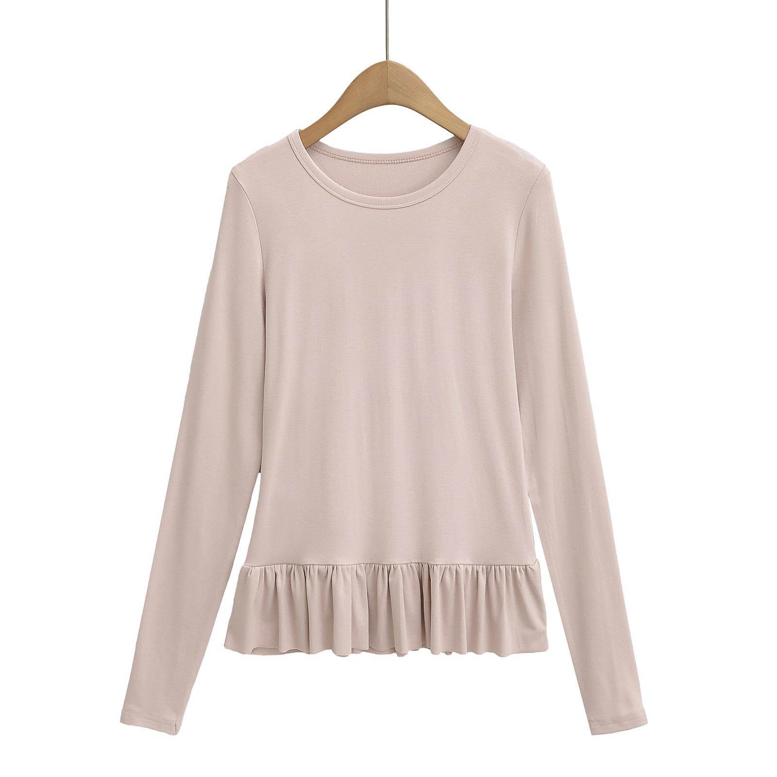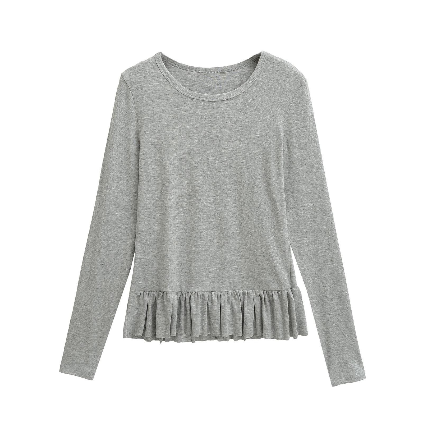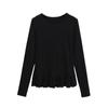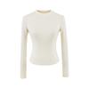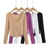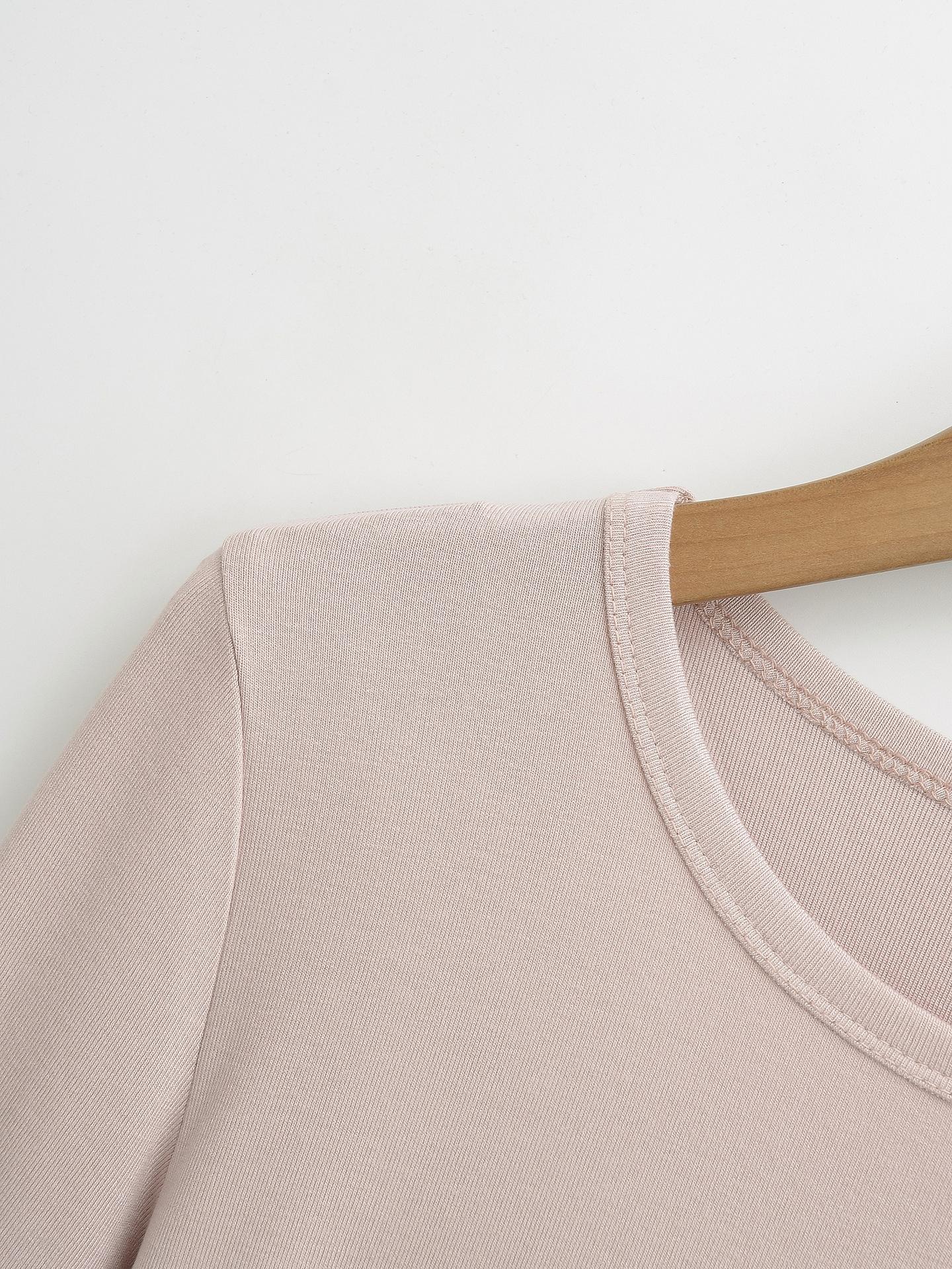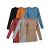 8017-2025 Nuevo Estilo Deseo Puro Versátil Casual Cuello Redondo Top Moda Femenina Ajustado Sexy Plisado Manga Larga Camiseta