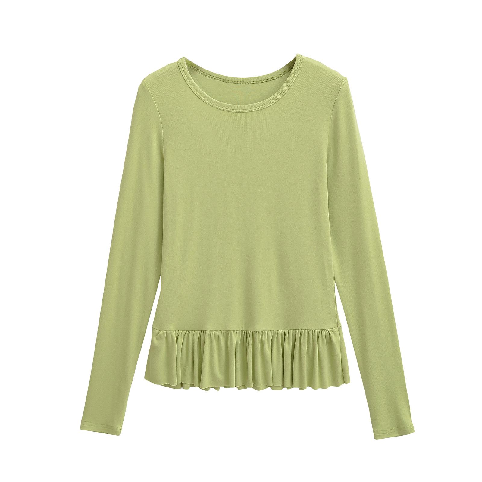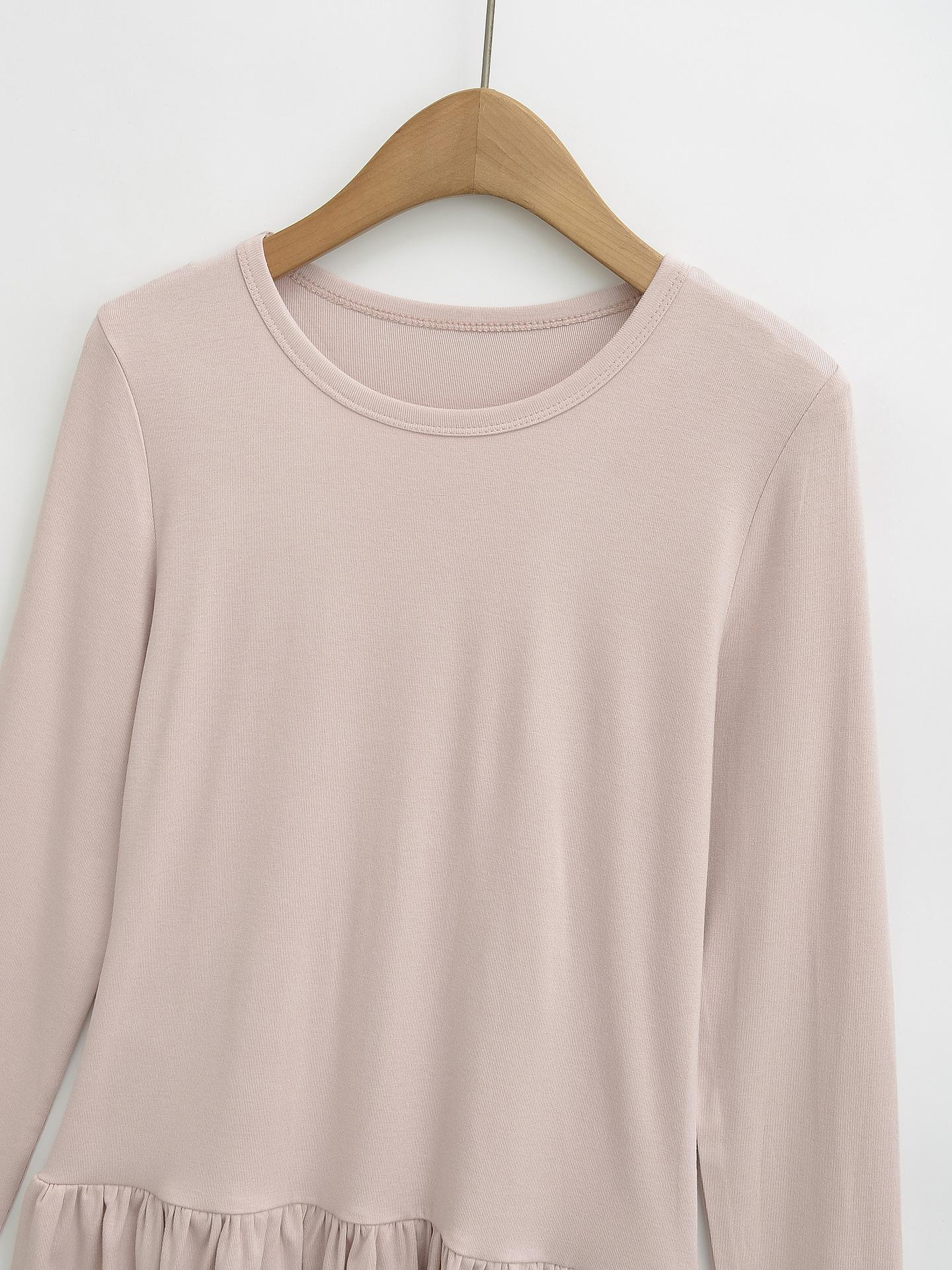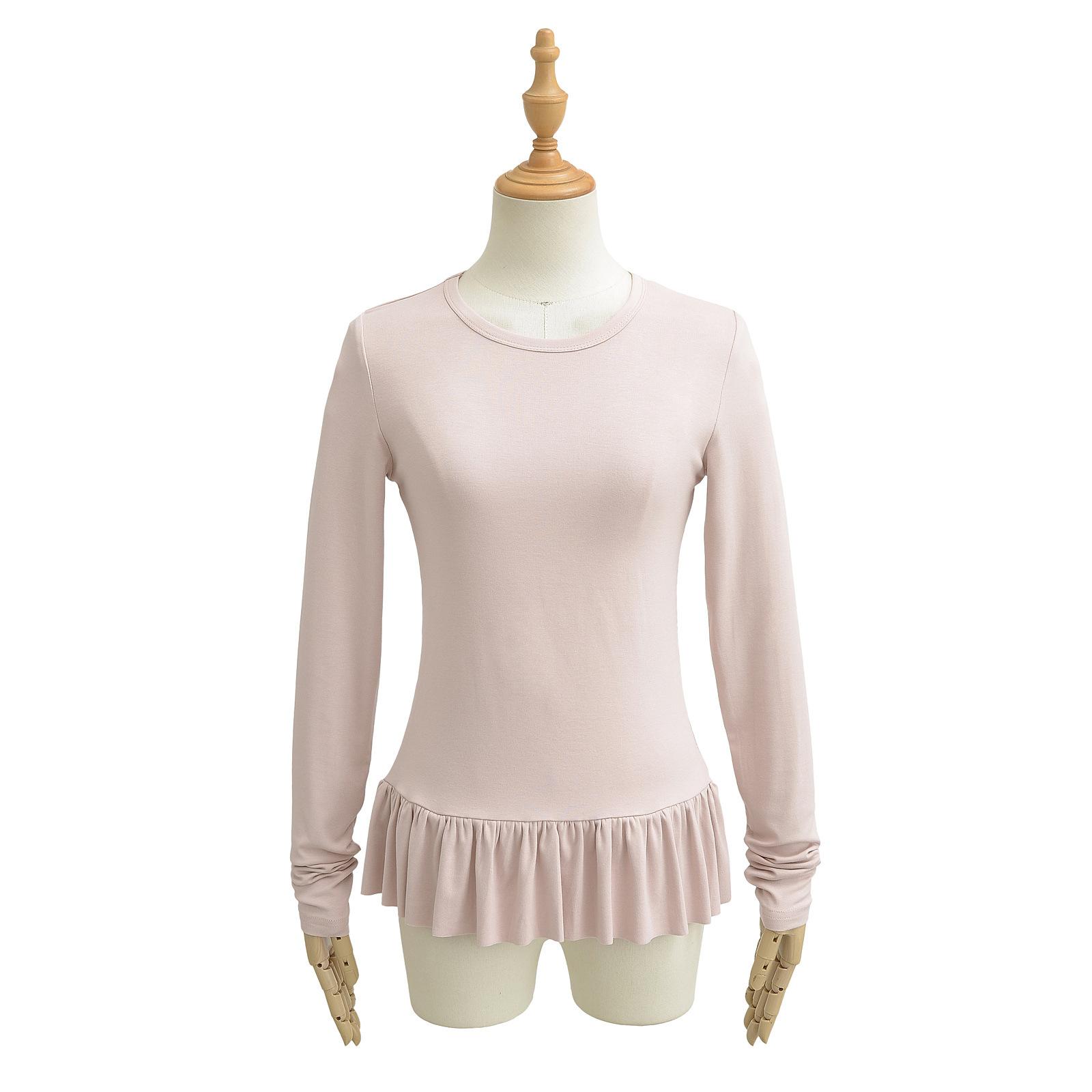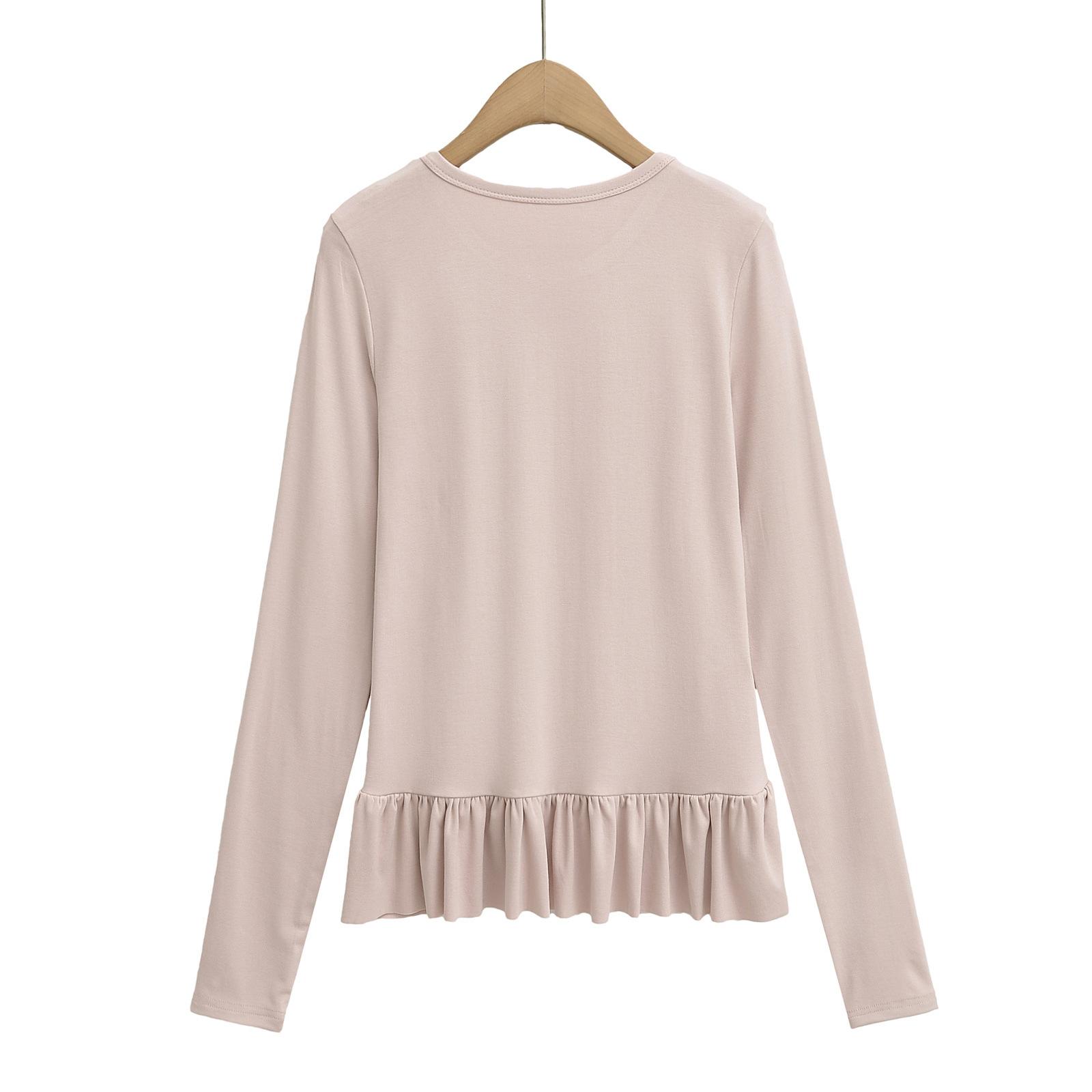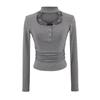 8017-2025 Nuevo Estilo Deseo Puro Versátil Casual Cuello Redondo Top Moda Femenina Ajustado Sexy Plisado Manga Larga Camiseta