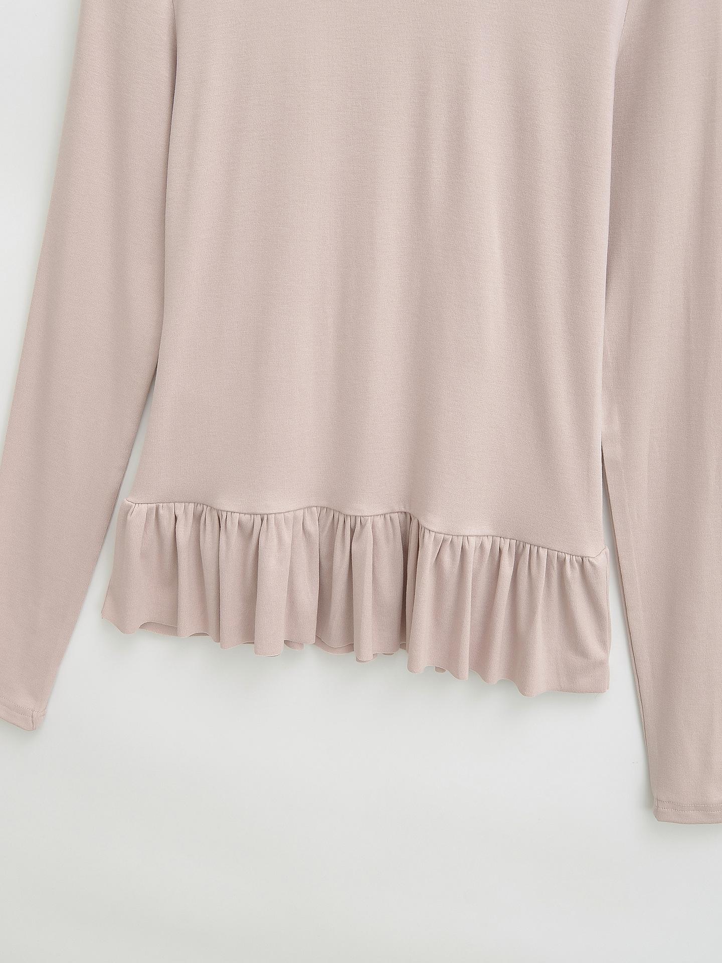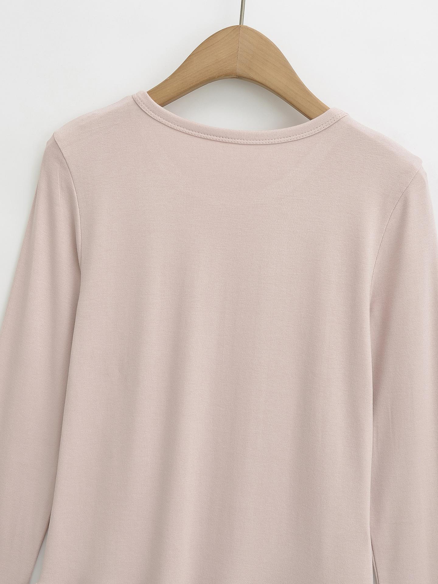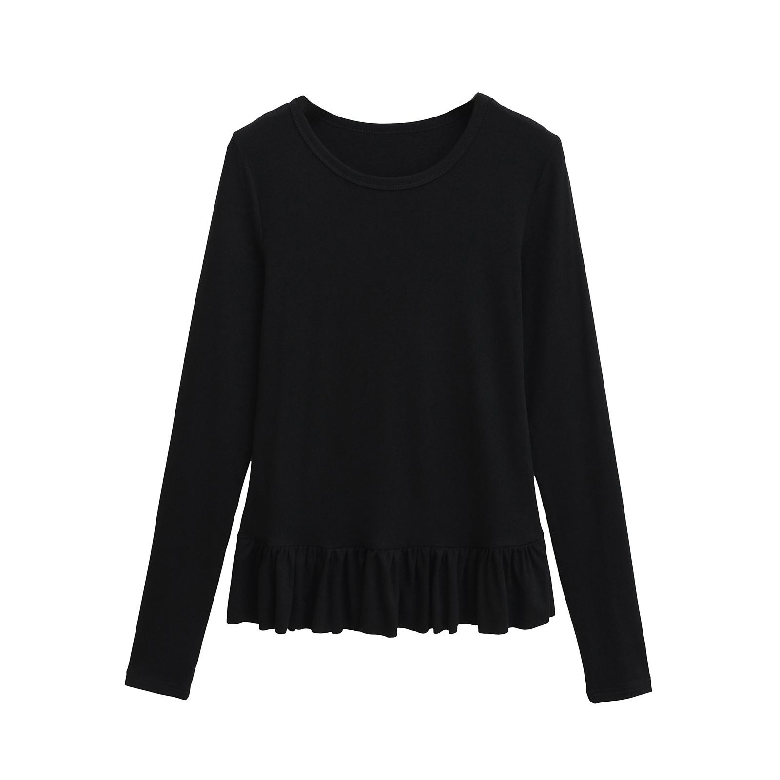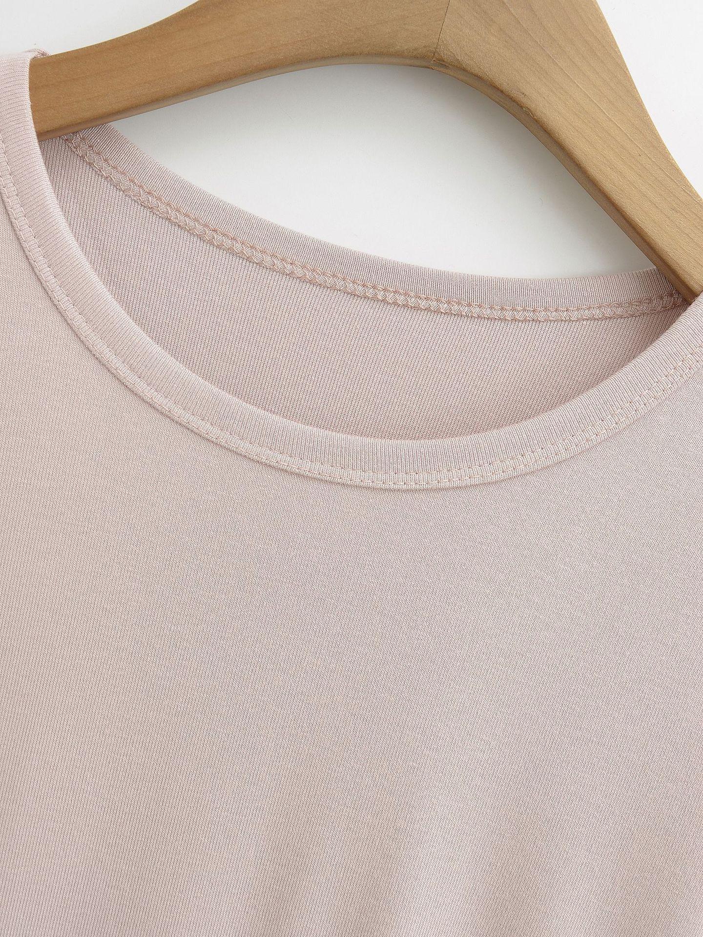 8017-2025 Nuevo Estilo Deseo Puro Versátil Casual Cuello Redondo Top Moda Femenina Ajustado Sexy Plisado Manga Larga Camiseta