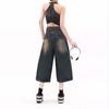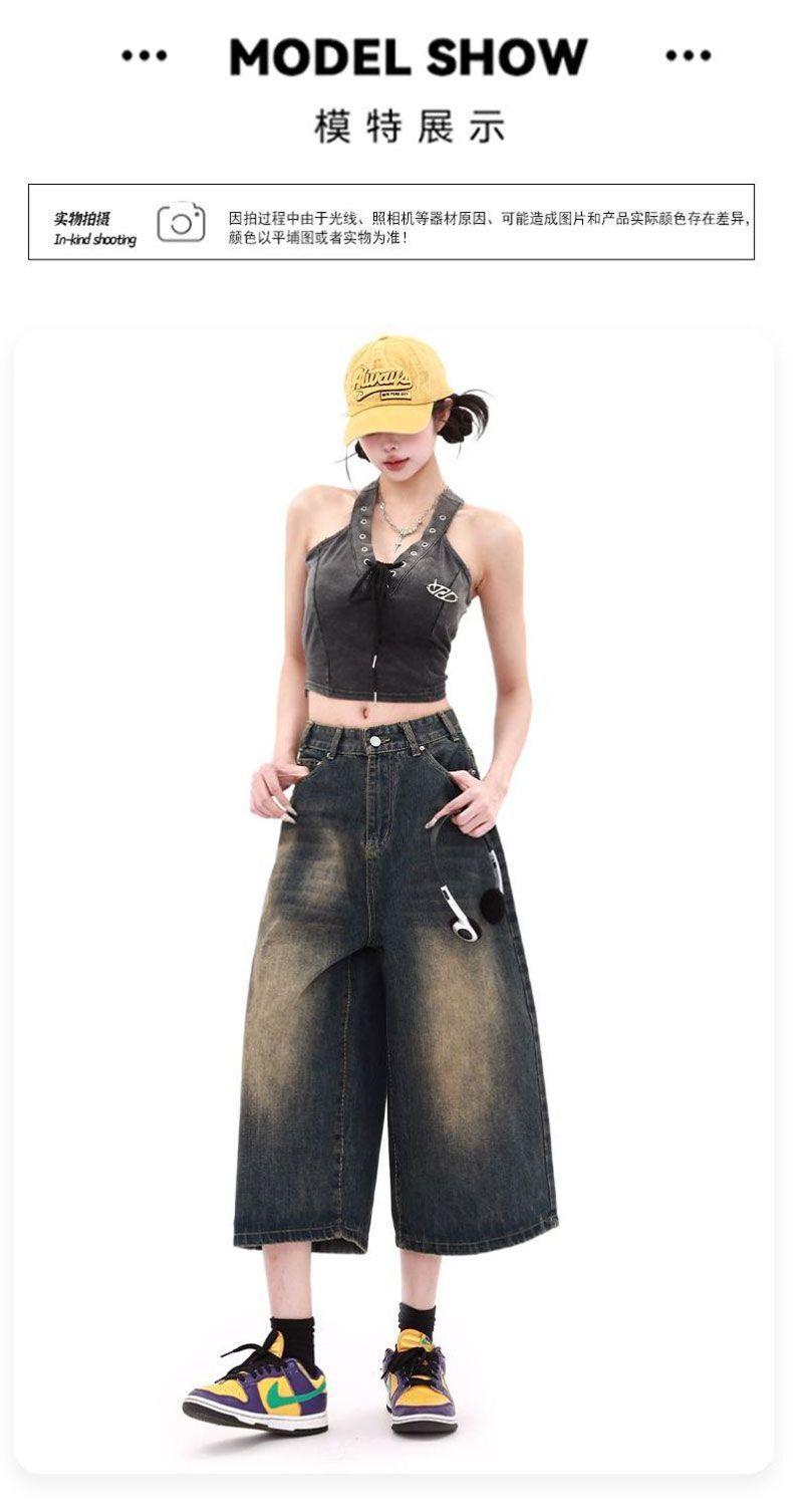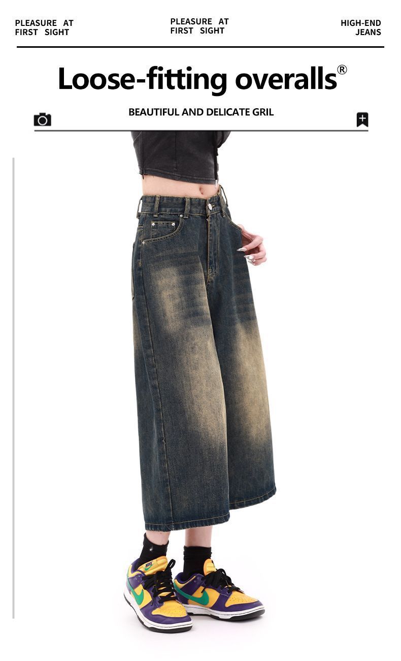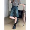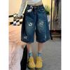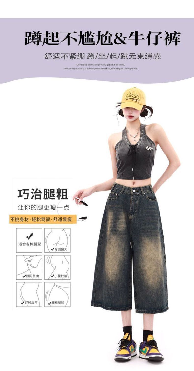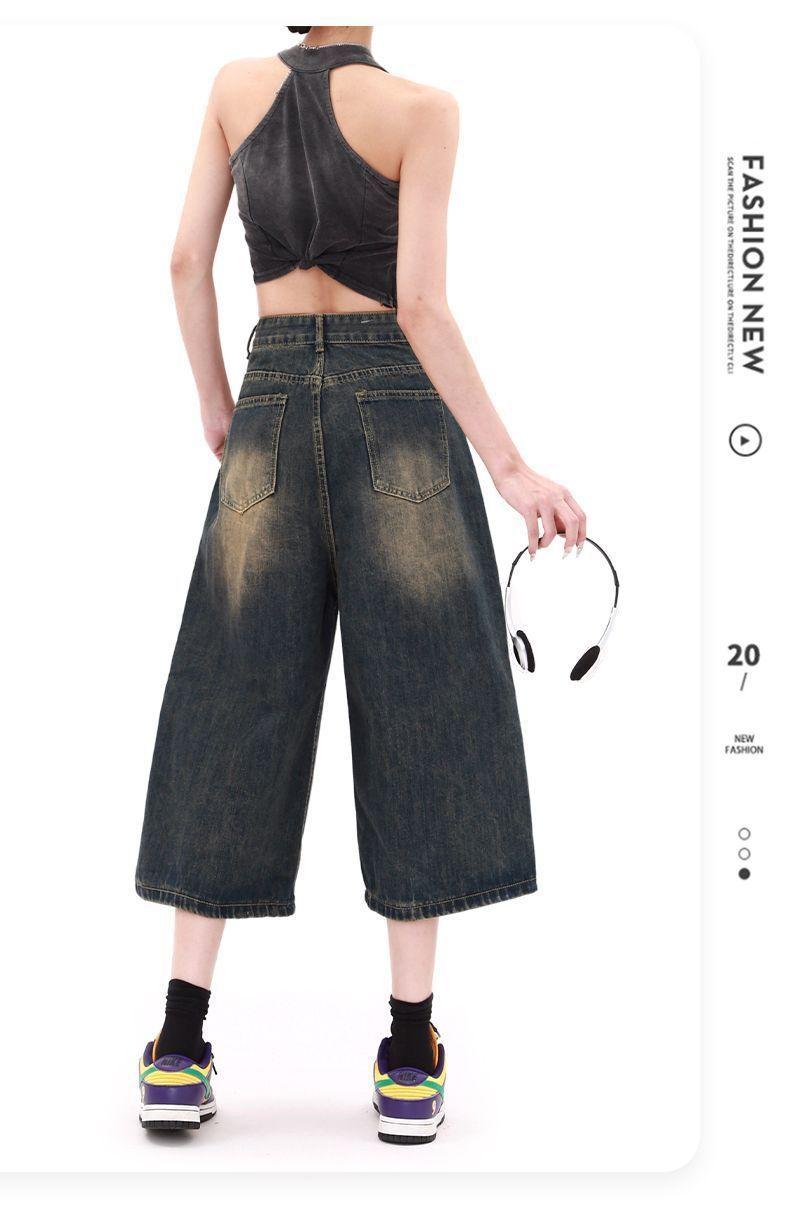Shorts de mezclilla lavada de talle alto para mujer de talla grande estilo americano, casuales de verano, nuevos, de pierna recta, adelgazantes, de pierna ancha, cropped