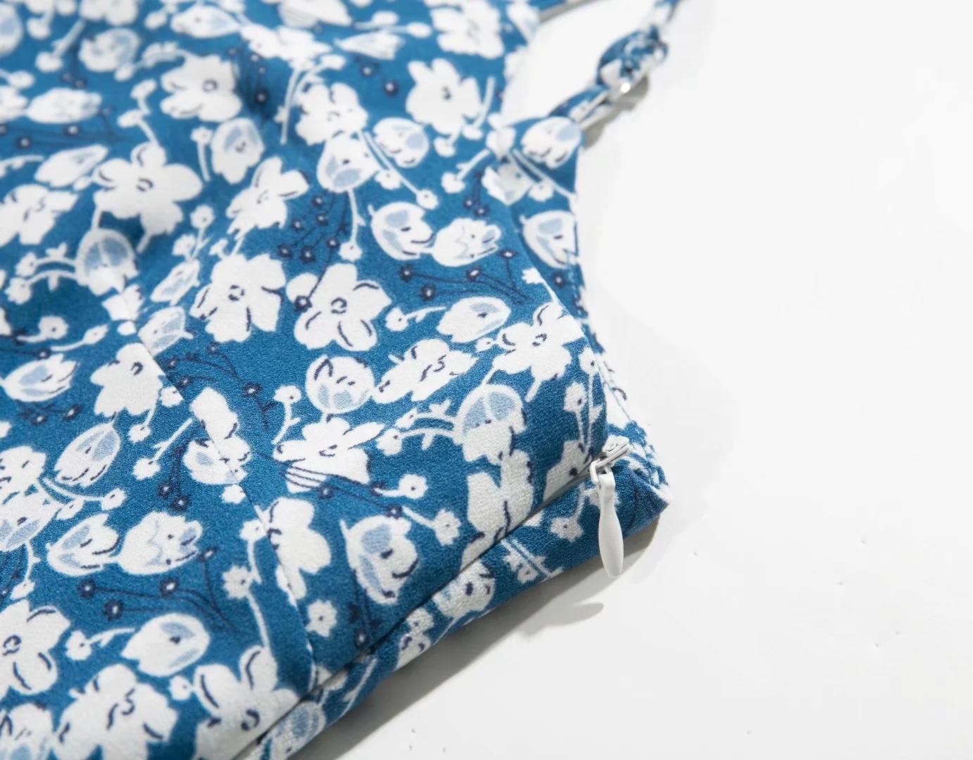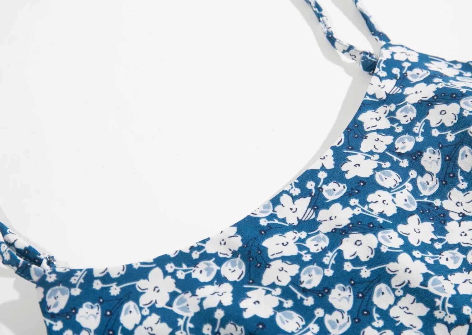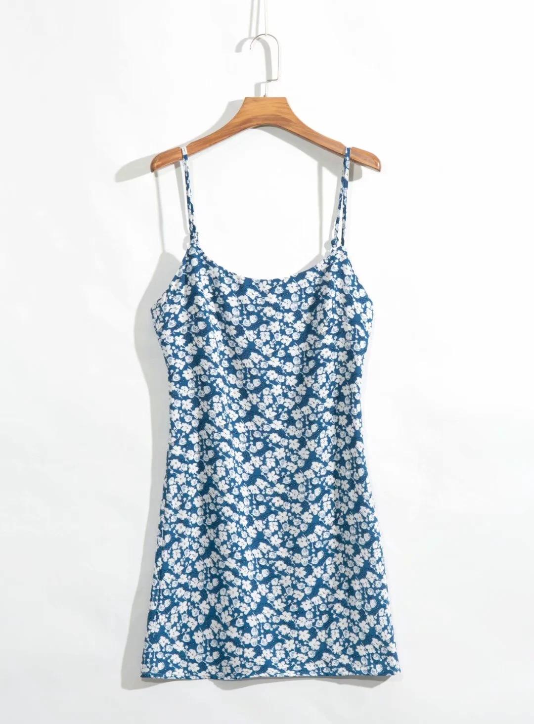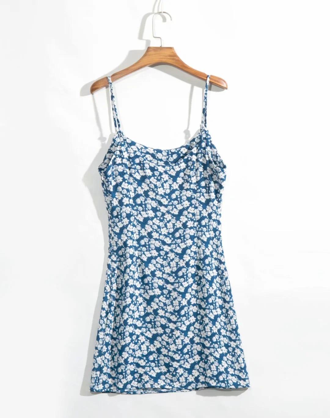 Verano 2020 Estilo Europeo y Americano Moda Nicho Francesa Cintura Alta Corte Slim Adelgazante Vestido Corto de Tirantes Estampado