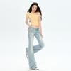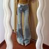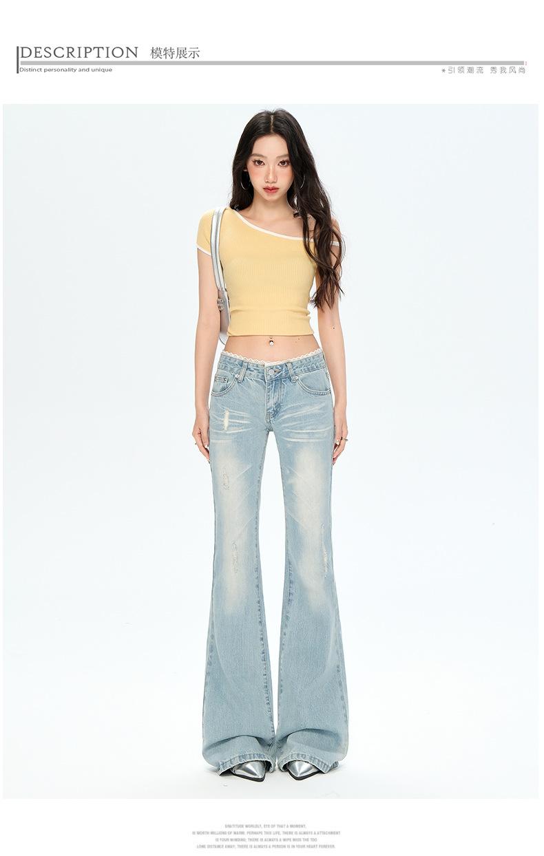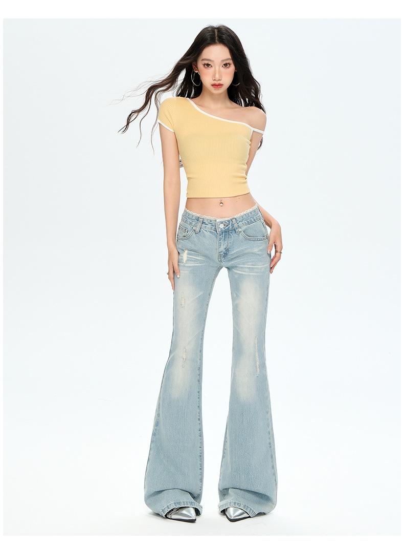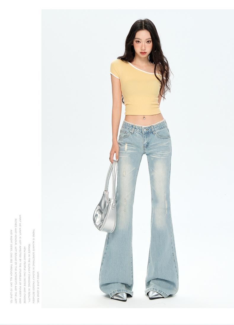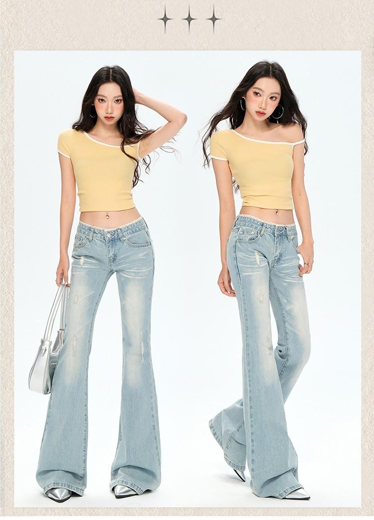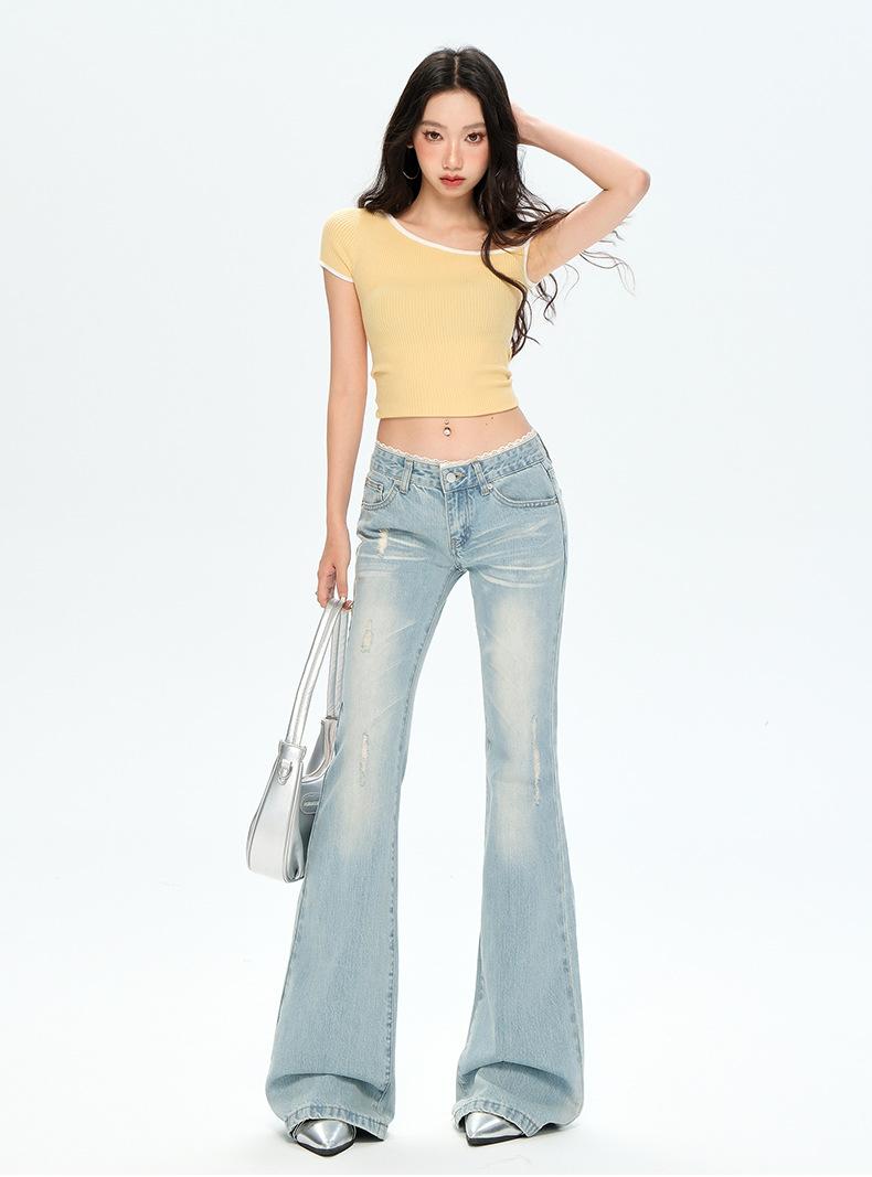 Jeans Microacampanados de Cintura de Encaje para Mujer Primavera 2025 Nueva Llegada Jeans Rotos de Cintura Baja Adelgazantes sin Piernas