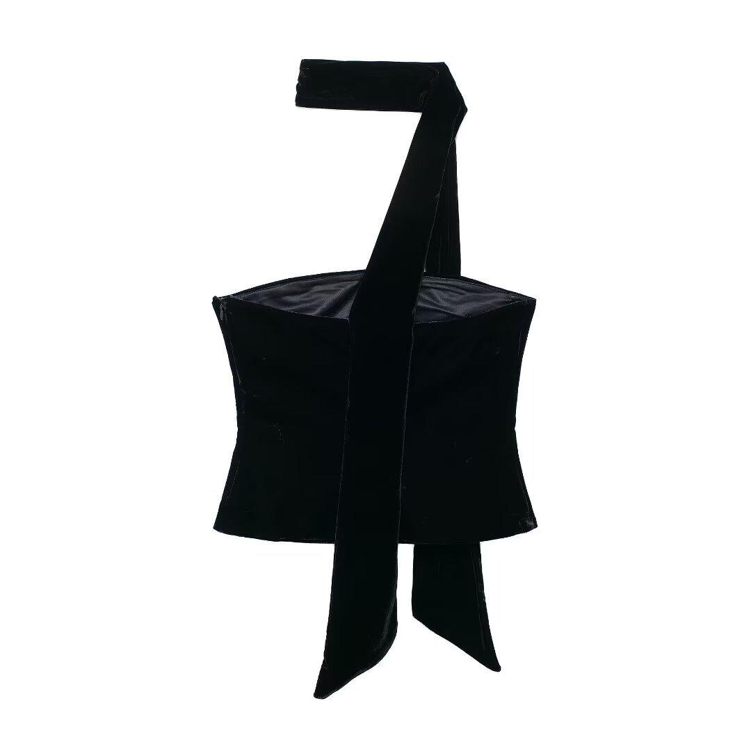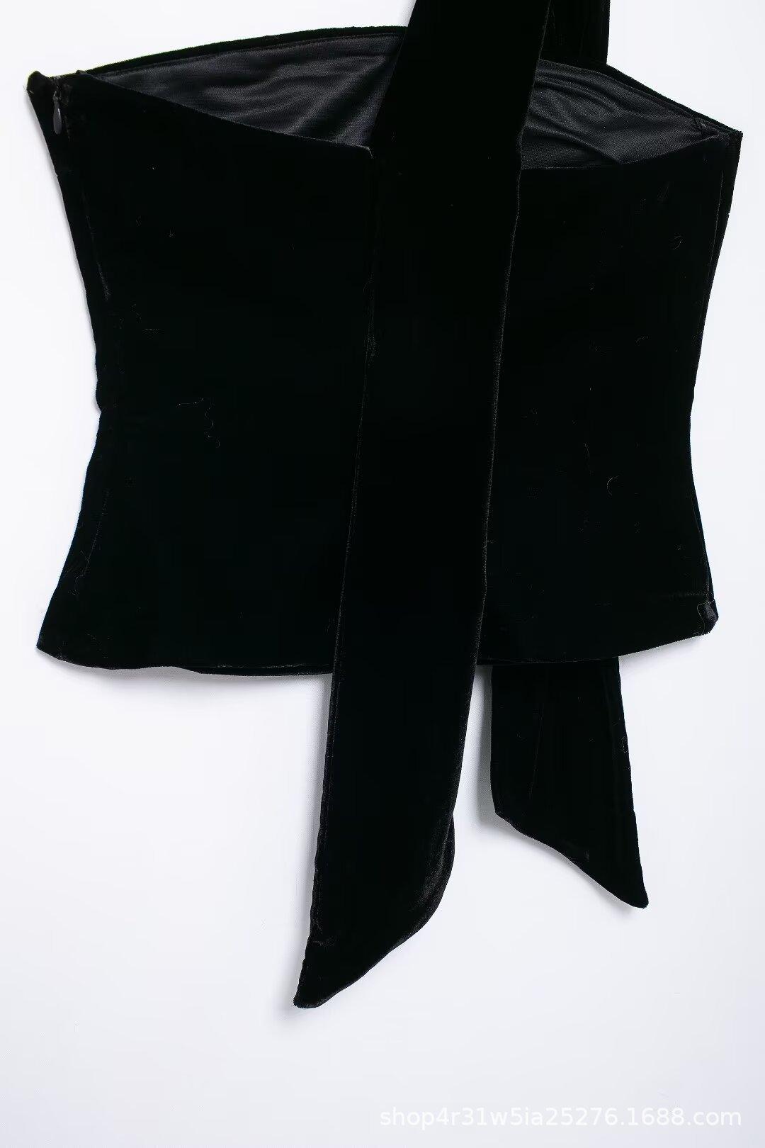 Europa y Estados Unidos venta al por mayor transfronteriza 2024 otoño nuevo sin mangas ajustado corto cuello recto bufanda terciopelo top chaleco