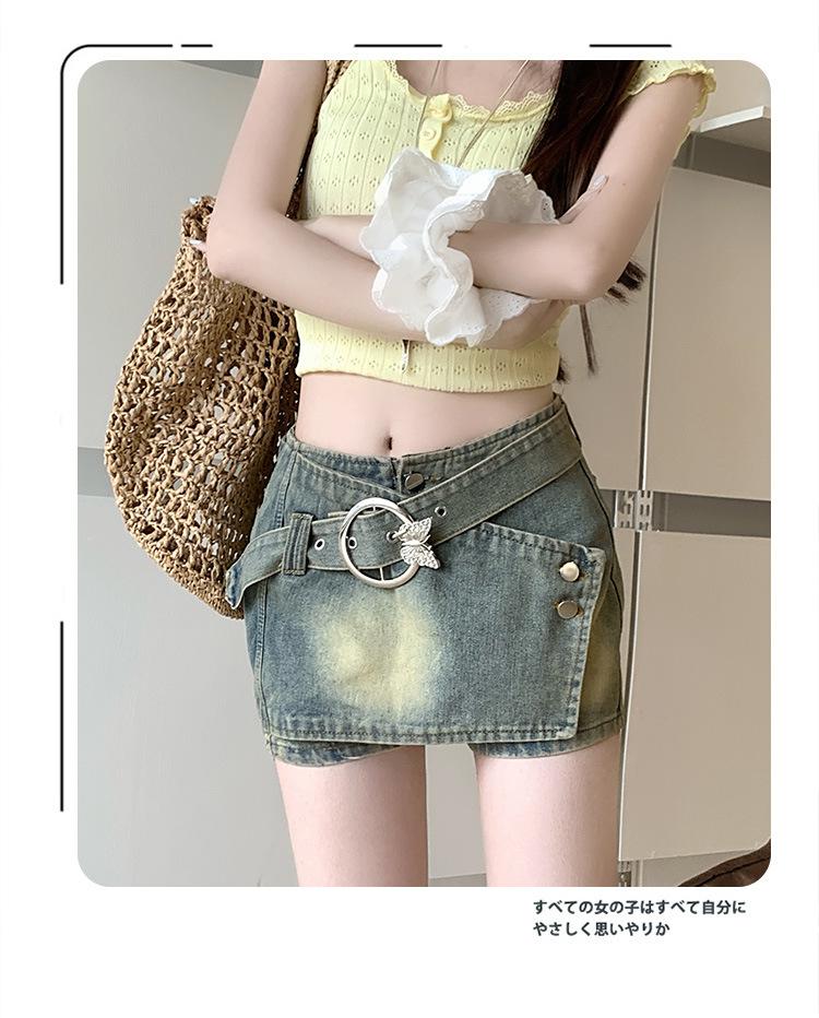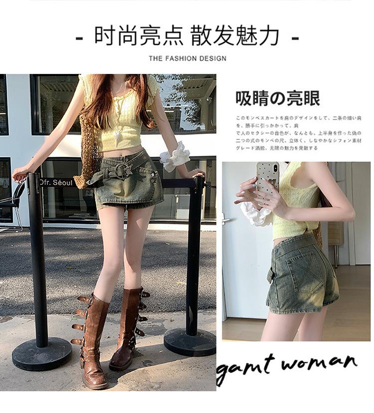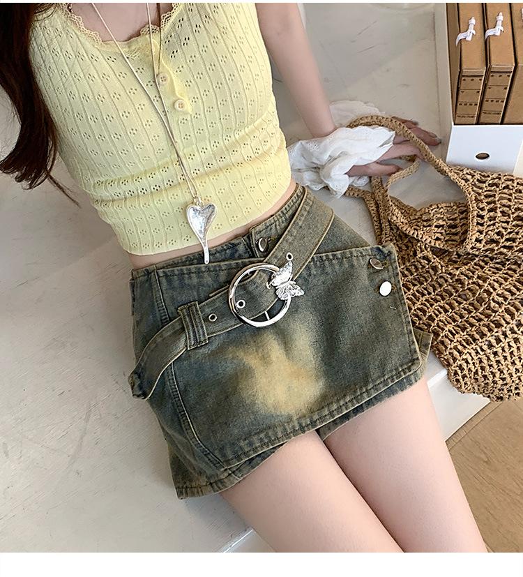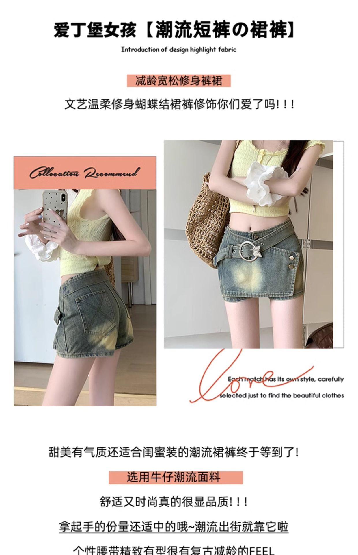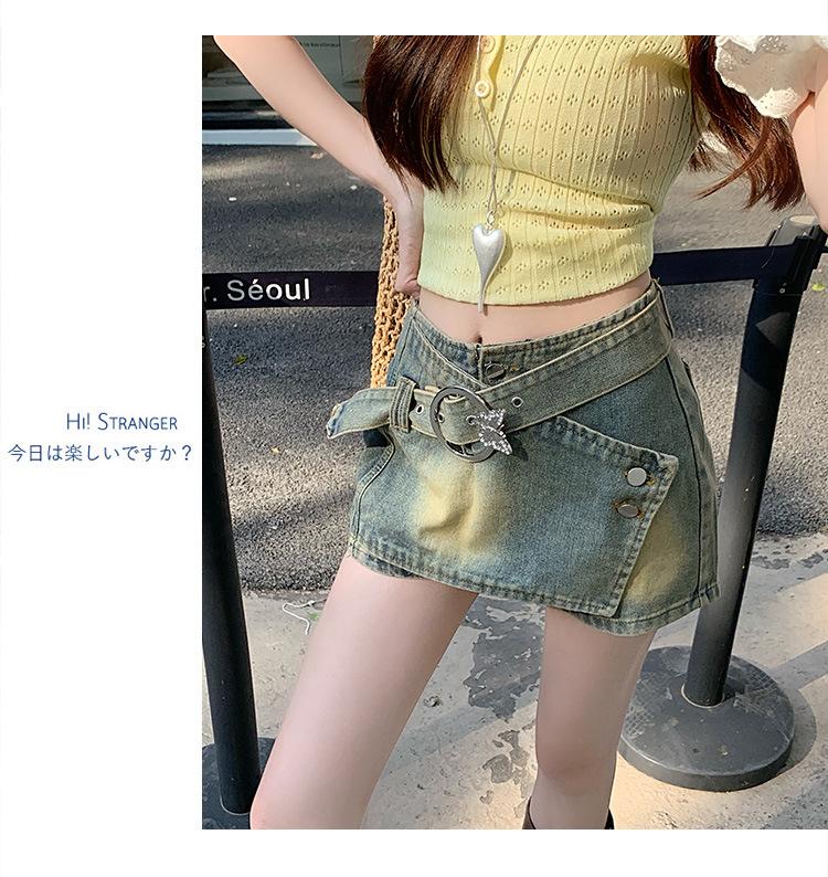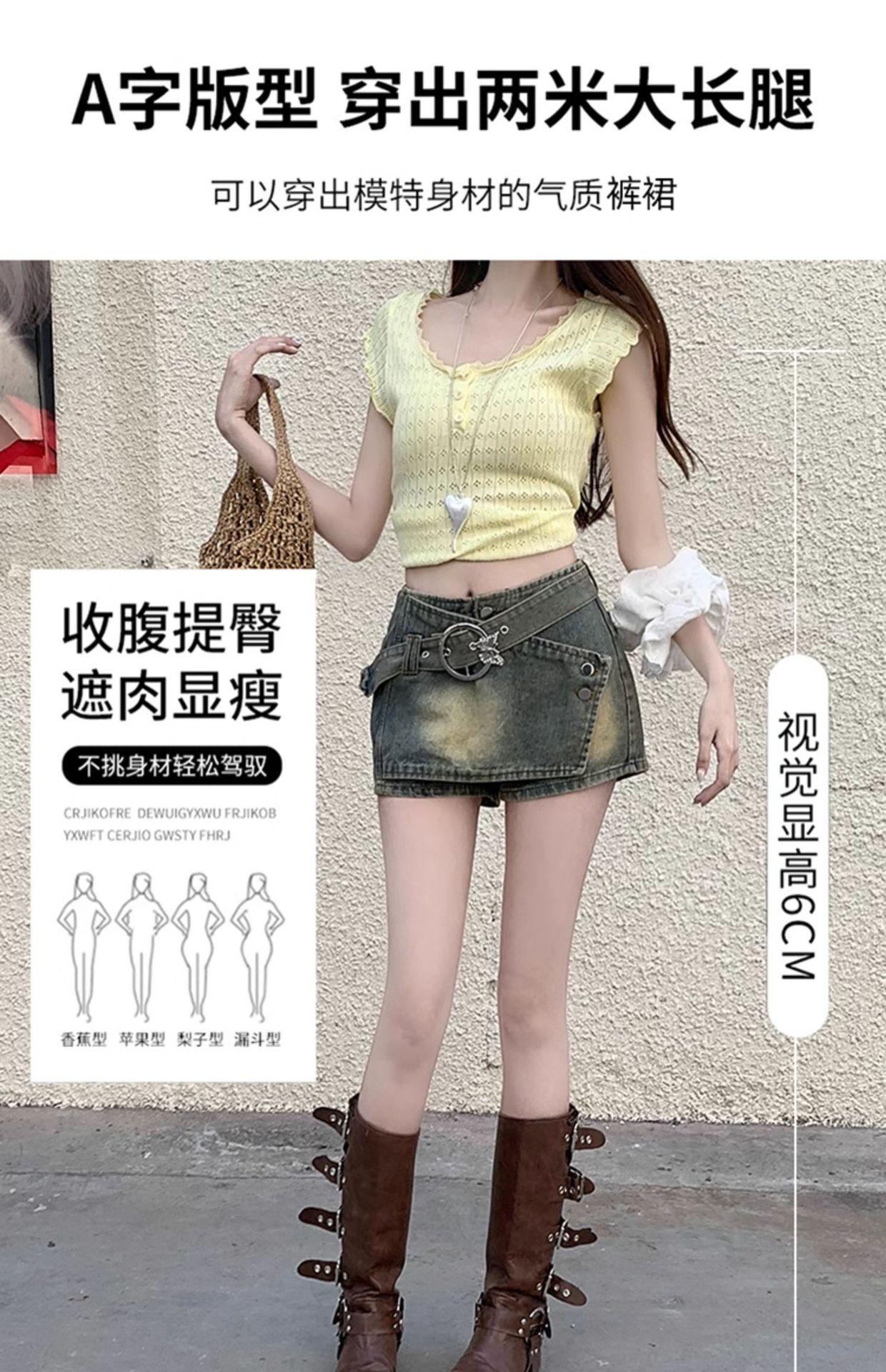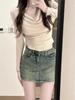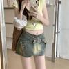 Falda de mezclilla de diseño retro americano para mujer verano nueva talla grande mm gorda cintura alta línea A falda de cadera falda corta