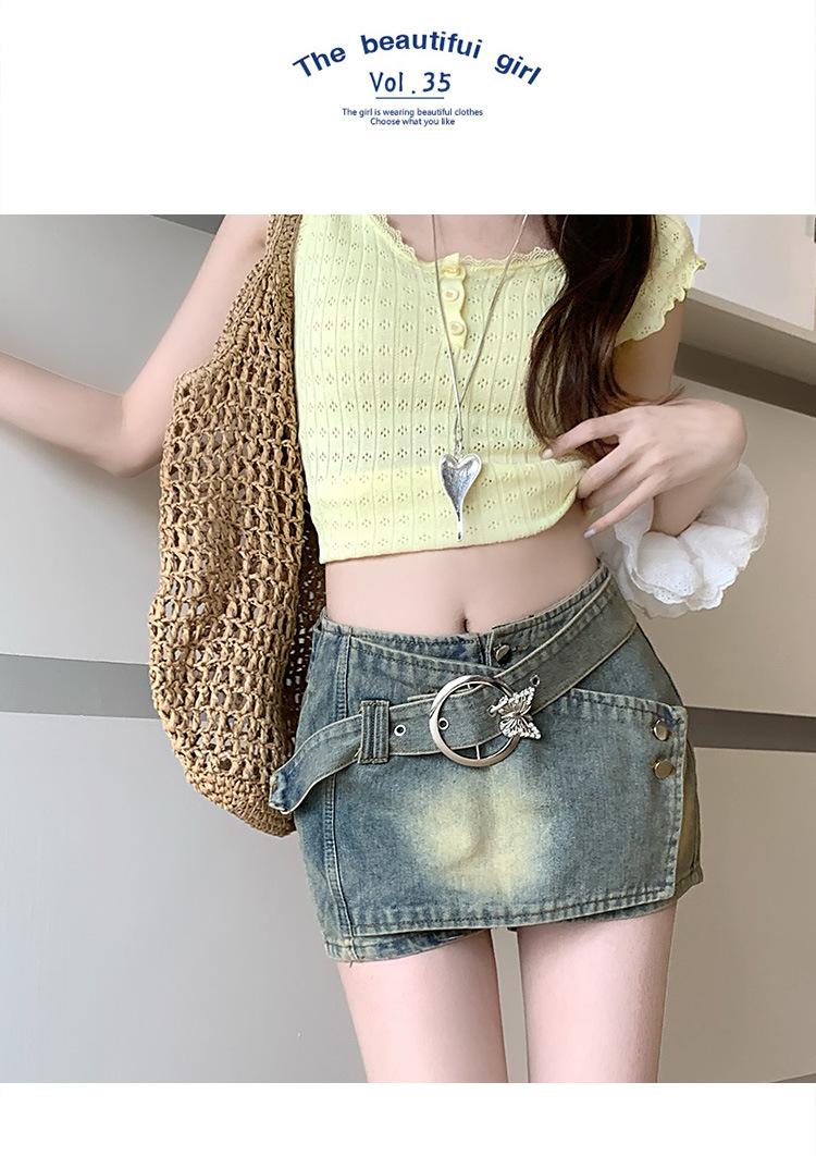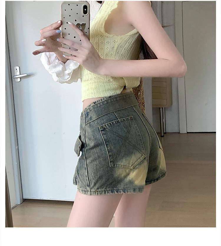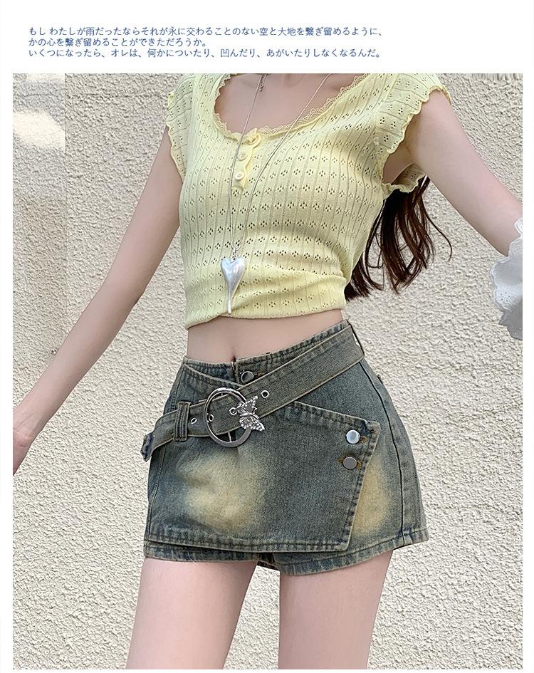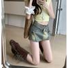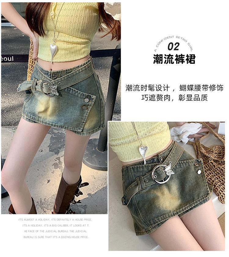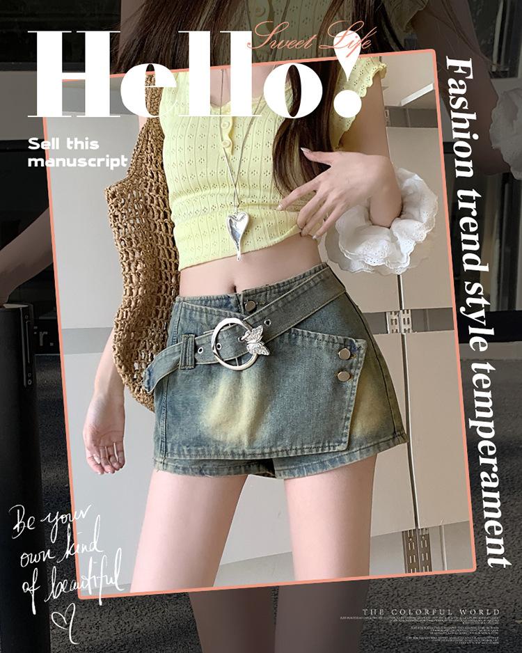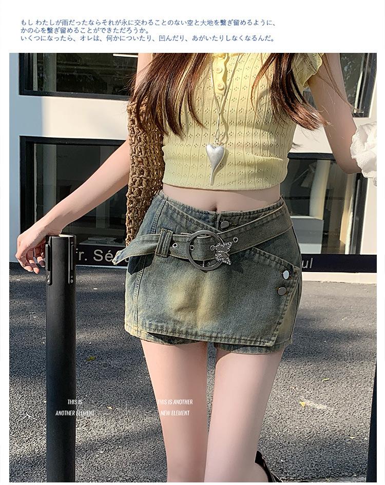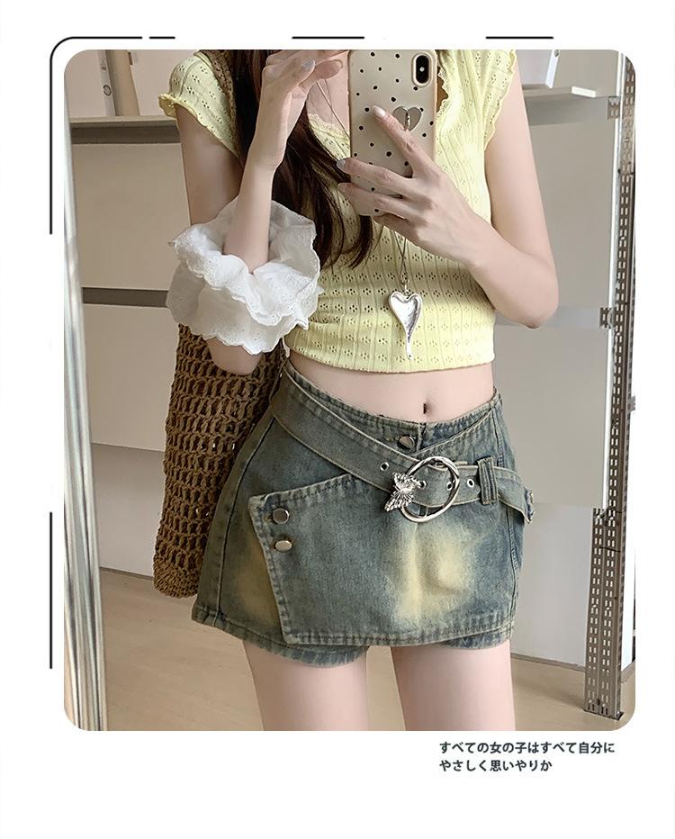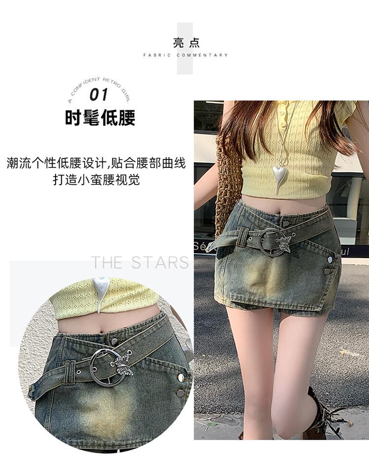 Falda de mezclilla de diseño retro americano para mujer verano nueva talla grande mm gorda cintura alta línea A falda de cadera falda corta