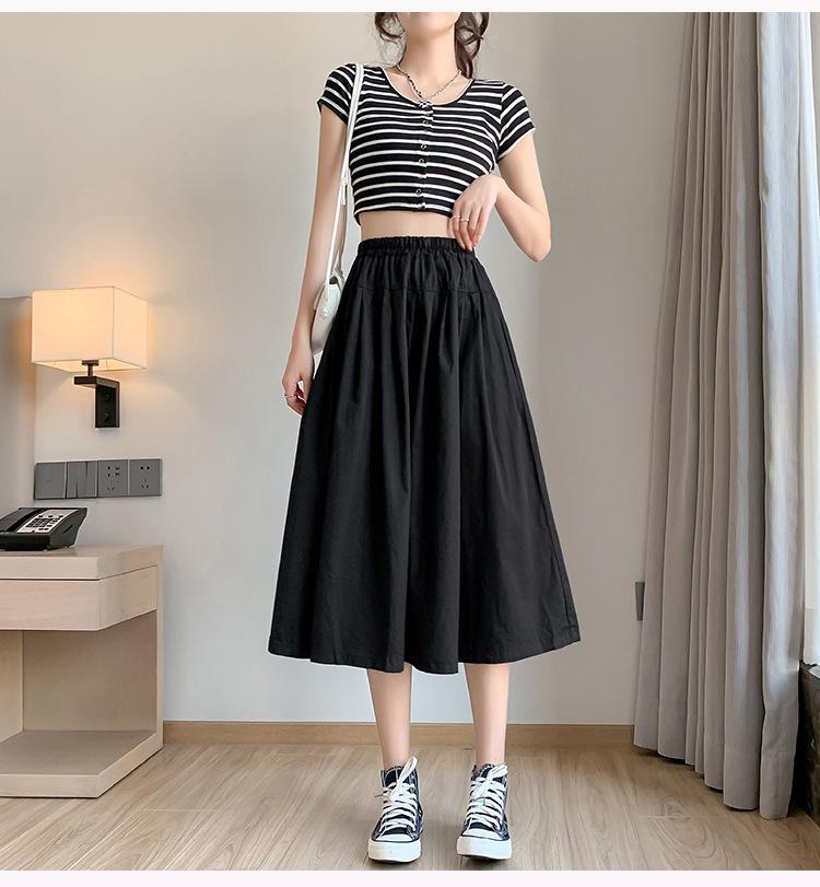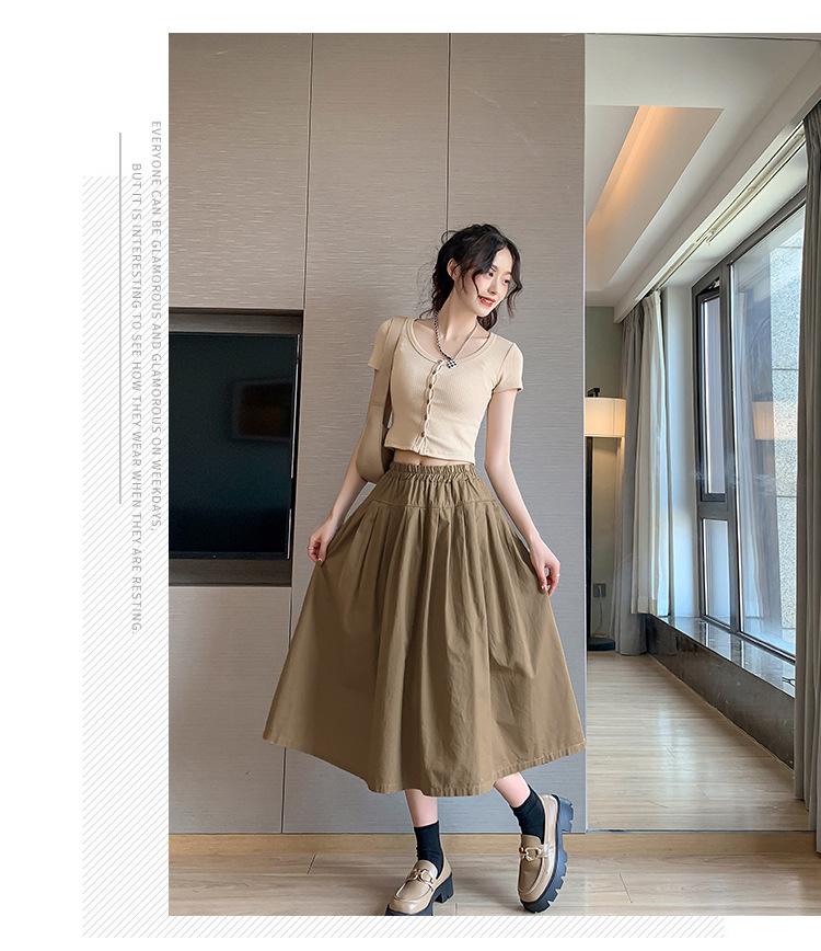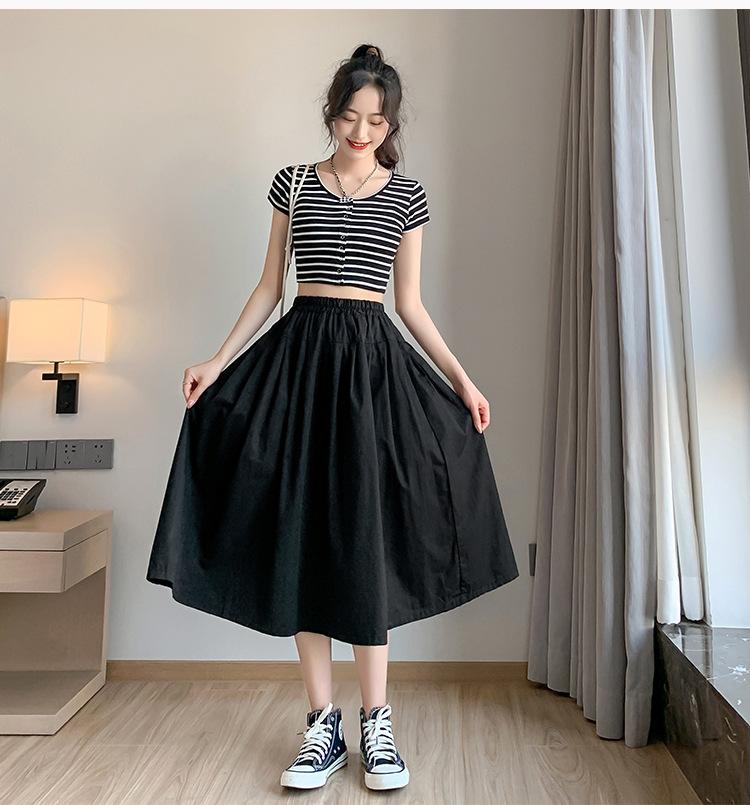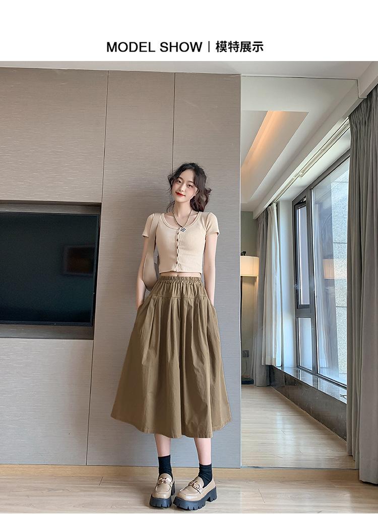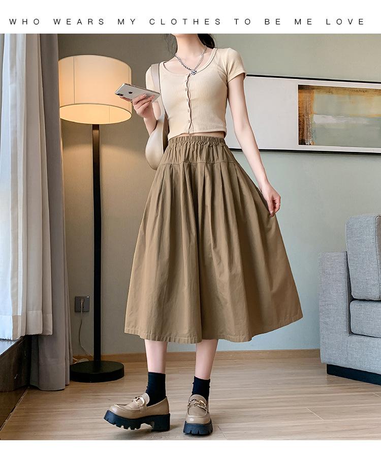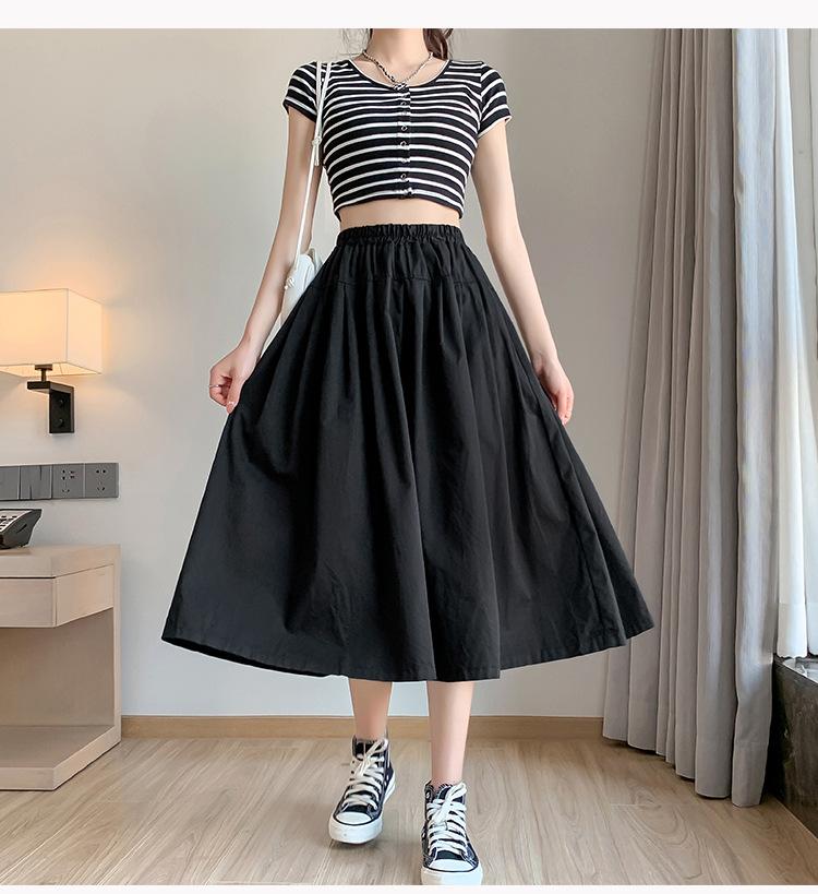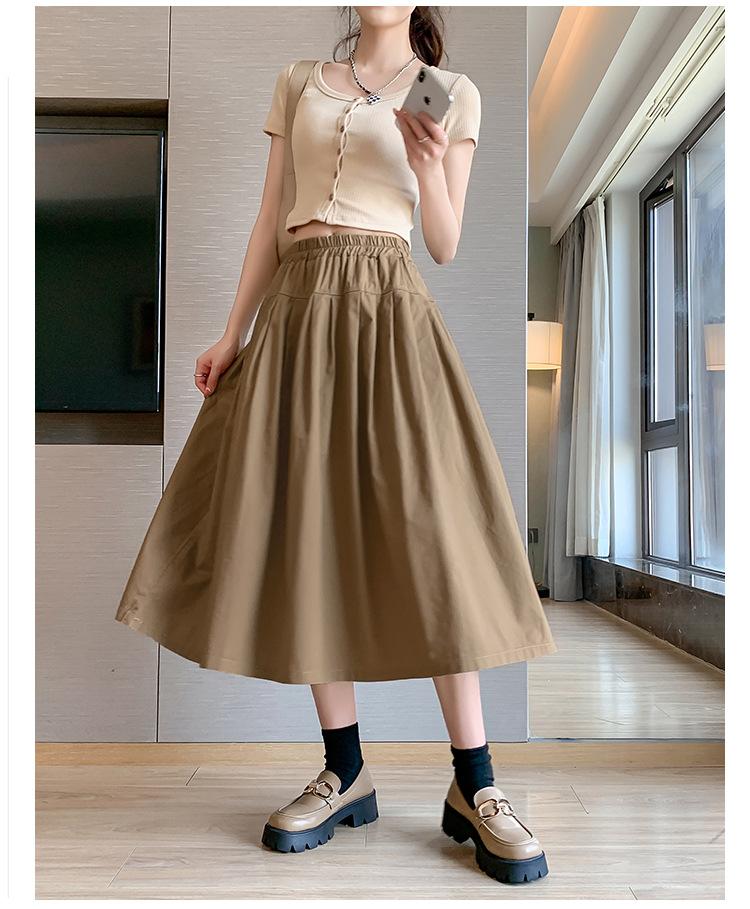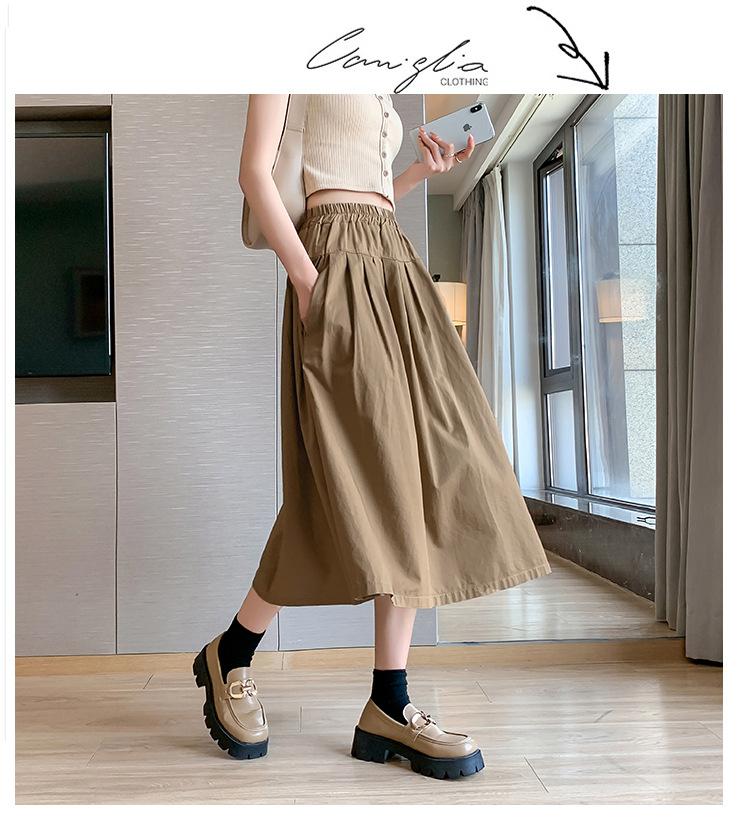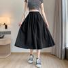 Falda para Mujer Primavera Tencel Lavado Falda de Dobladillo Grande Cintura Alta Falda Paraguas Largo Medio Estilo Universitario Falda Plisada