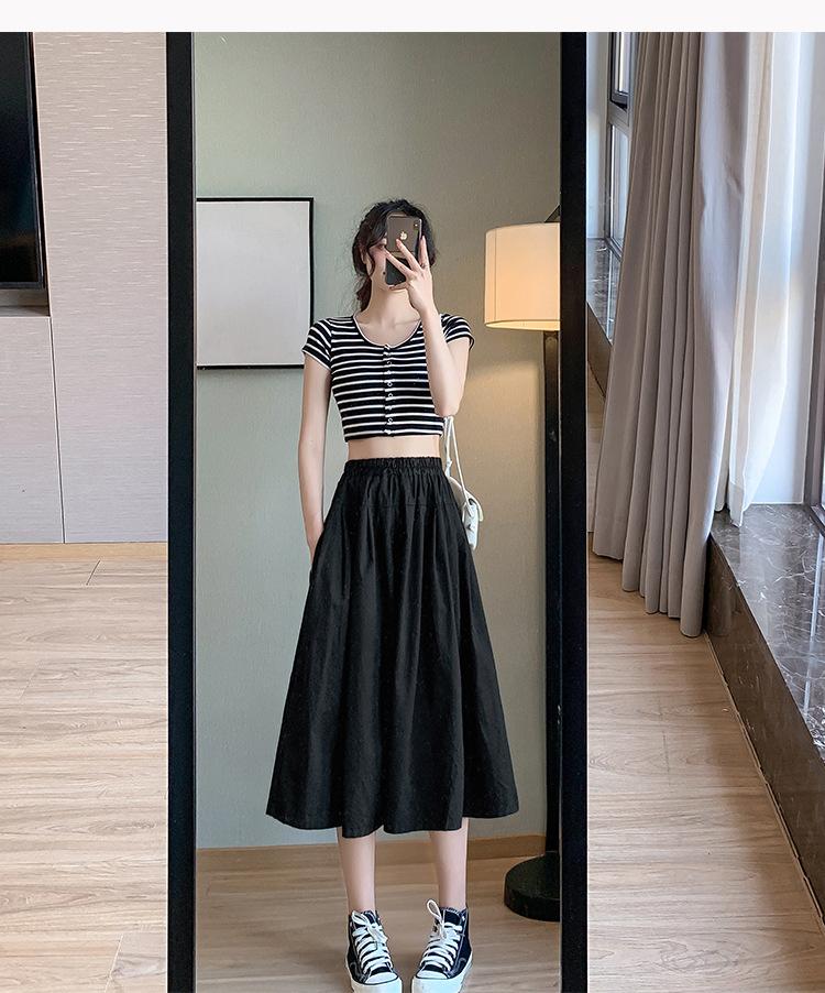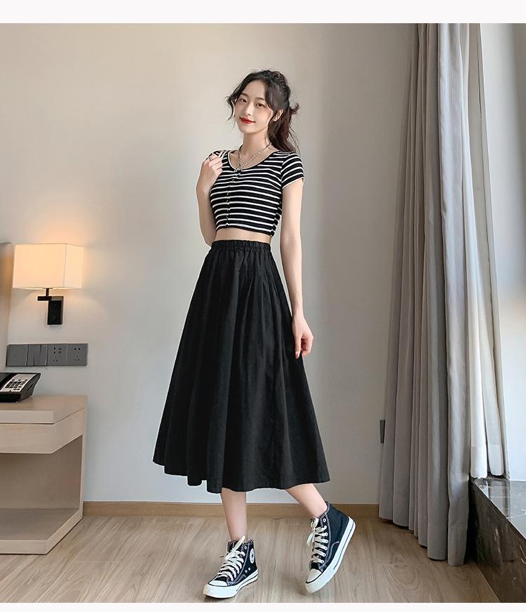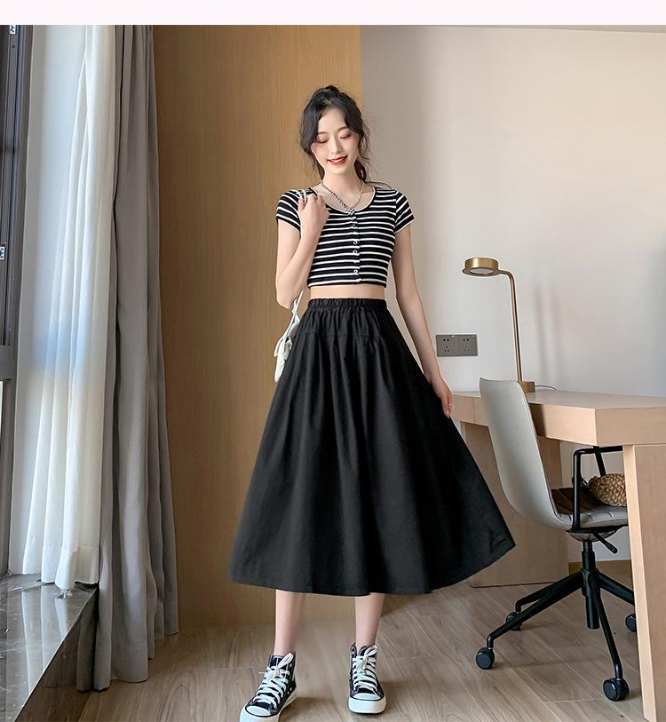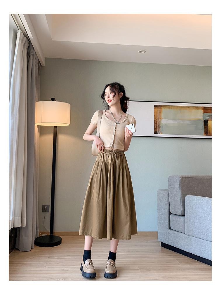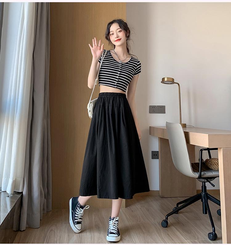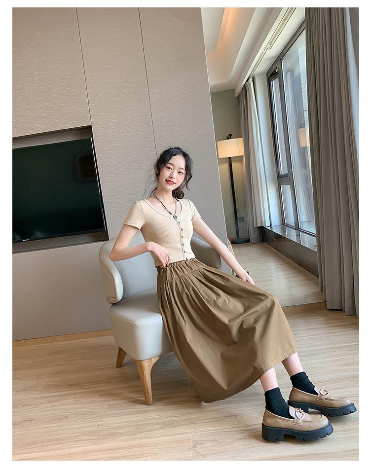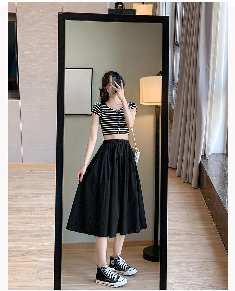 Falda para Mujer Primavera Tencel Lavado Falda de Dobladillo Grande Cintura Alta Falda Paraguas Largo Medio Estilo Universitario Falda Plisada