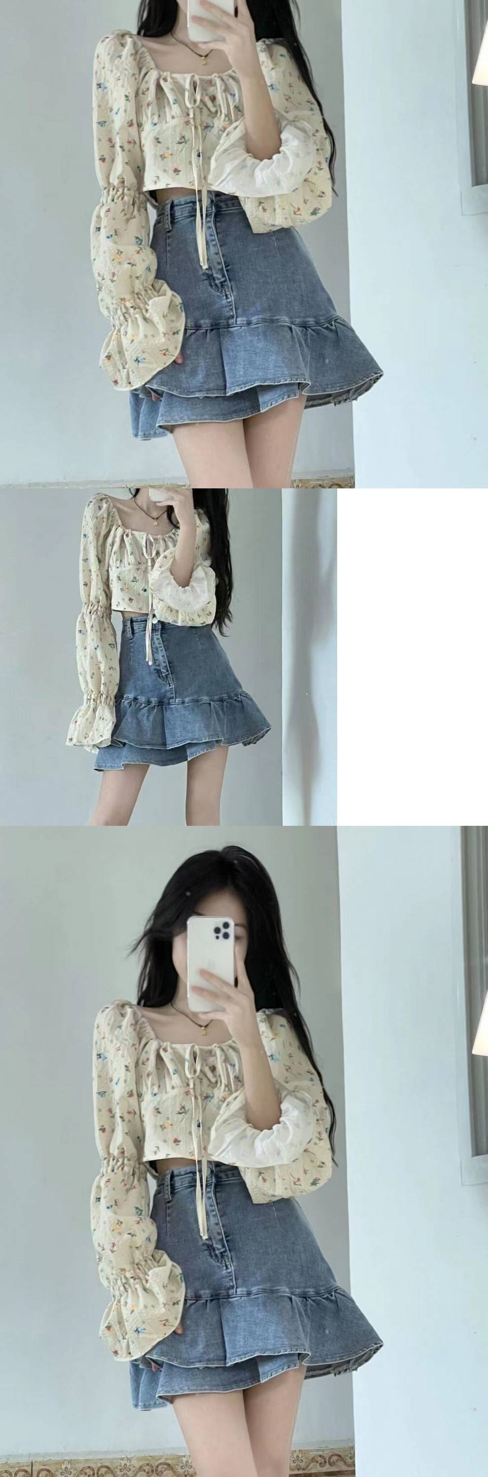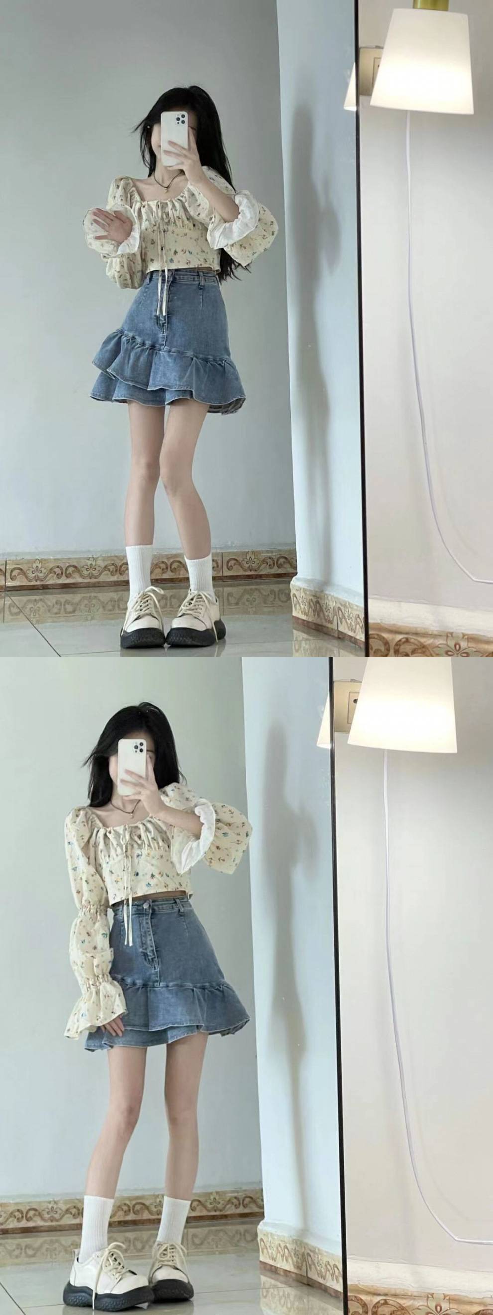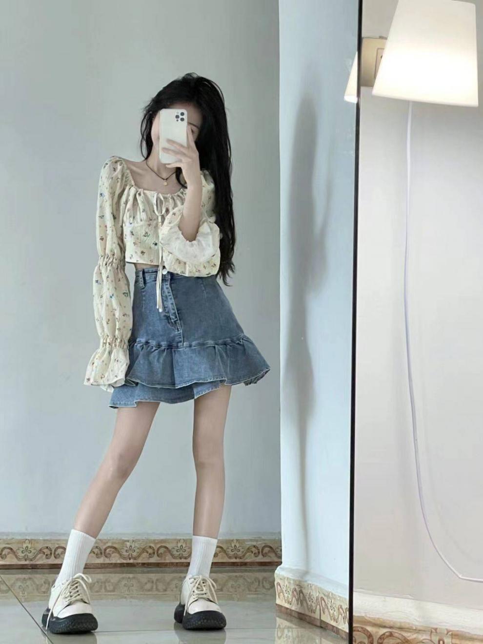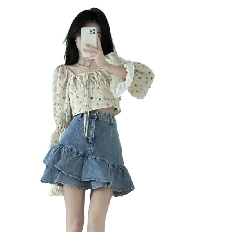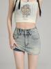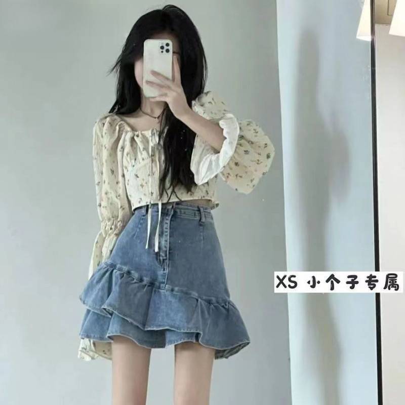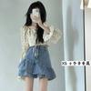 Falda de Mezclilla para Mujer Verano 2025 Falda Corta Versátil con Volantes Delgada de Cintura Alta Falda Ajustada a las Caderas