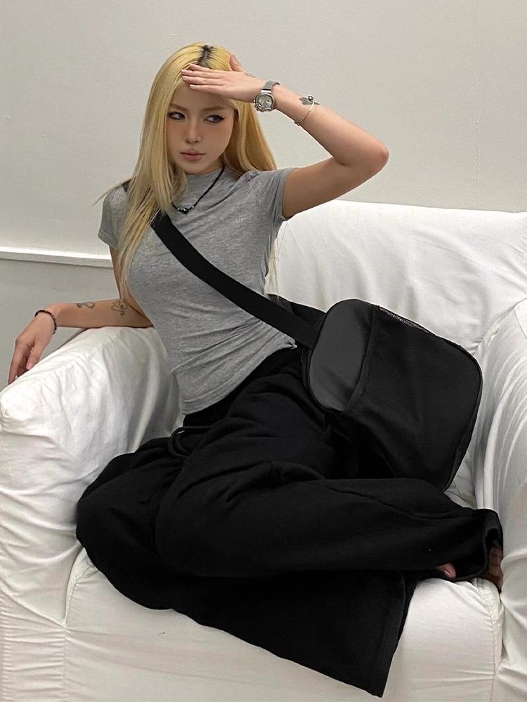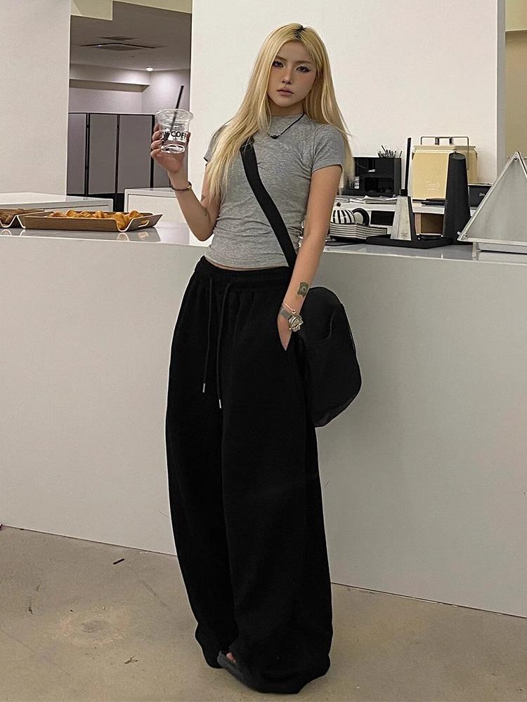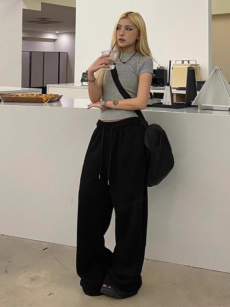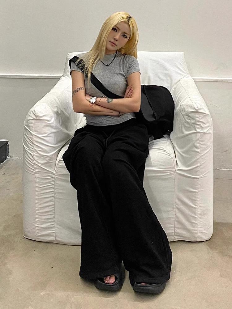 Pantalones deportivos de pierna ancha con cordón de estilo americano para mujer, pantalones de chándal finos de verano, pantalones casuales sueltos, pantalones de dumping, pantalones de baile jazz