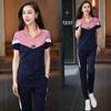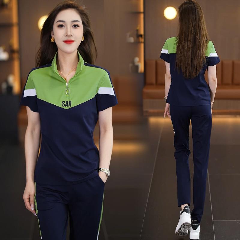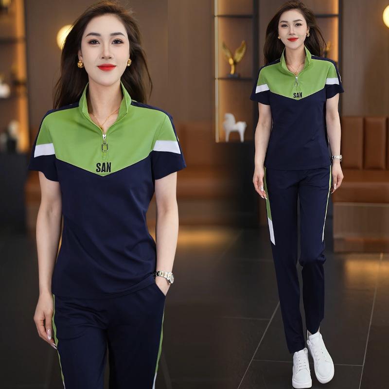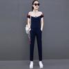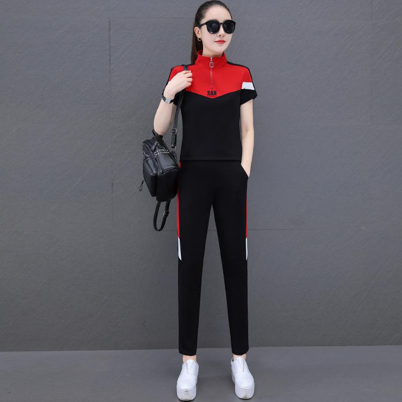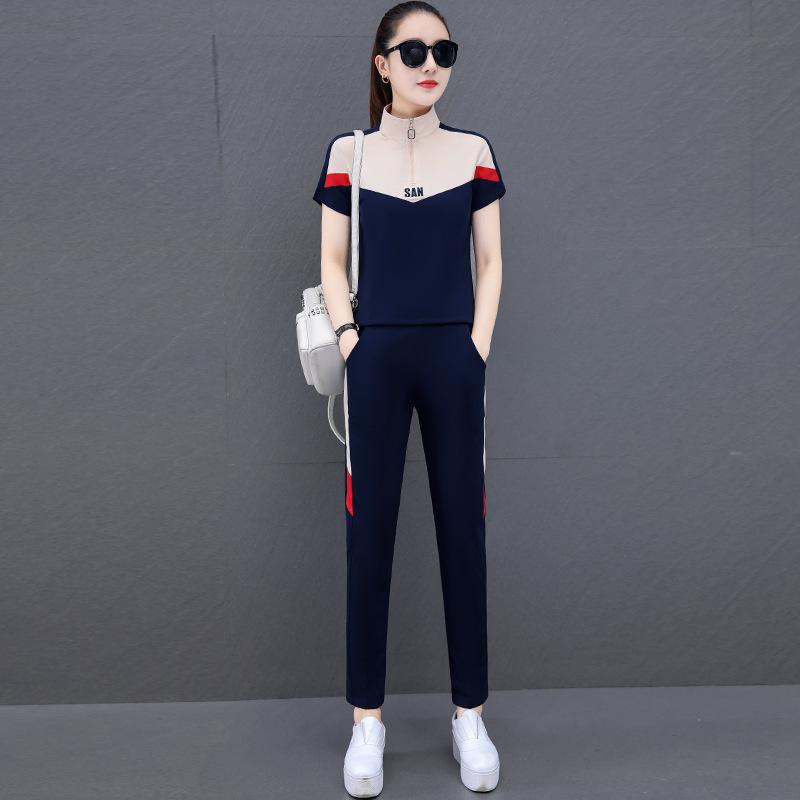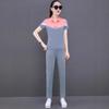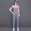 Traje deportivo casual para mujer 2025 Verano Nuevo Estilo Occidental Adelgazante Top de manga corta Pantalones de pierna ancha Conjunto de dos piezas