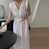 Chic Coreano Verano Nuevo Estilo Francés Suave Elegante Versátil Elegante Cuello en V Cordón Ajustable Delgado Vestido sin Mangas