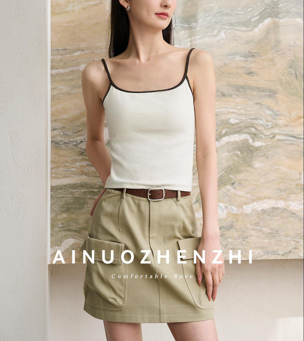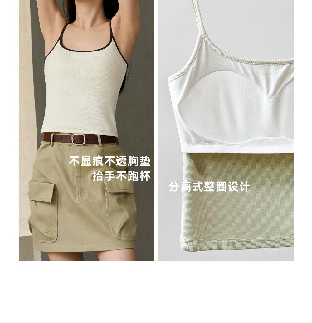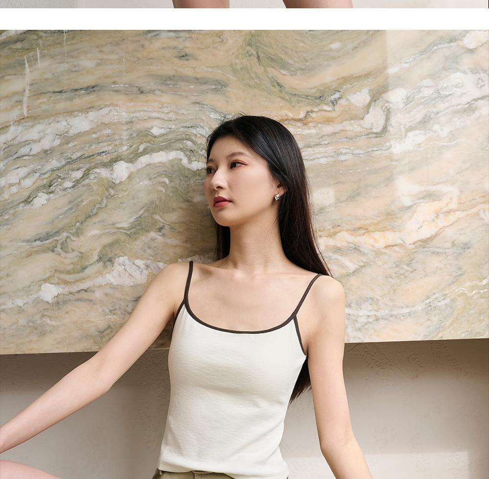 Camisola de Chica Sexy con Almohadilla en el Pecho Interior Primavera y Verano Nuevo Ajustado Adelgazante Algodón Corto Fondo Sin Mangas Top