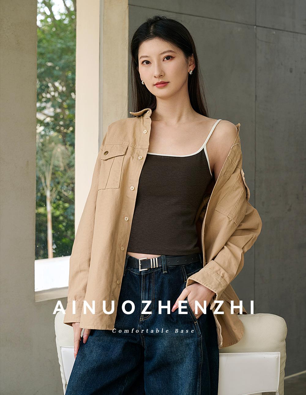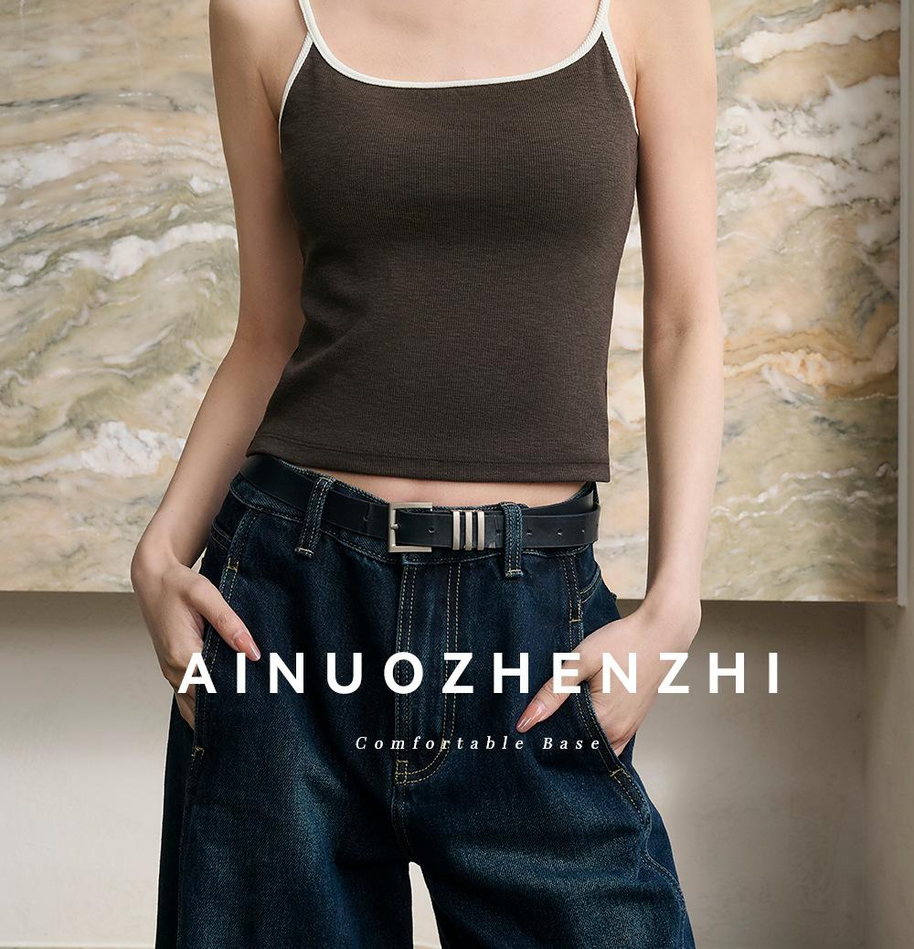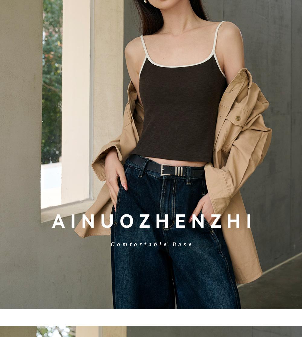 Camisola de Chica Sexy con Almohadilla en el Pecho Interior Primavera y Verano Nuevo Ajustado Adelgazante Algodón Corto Fondo Sin Mangas Top