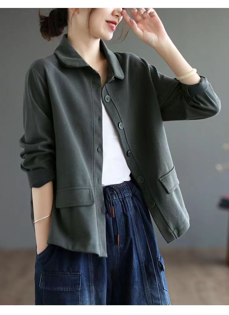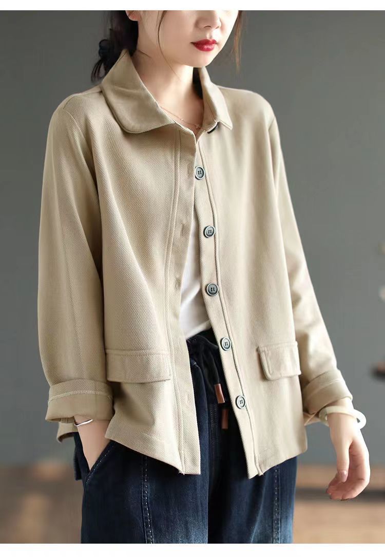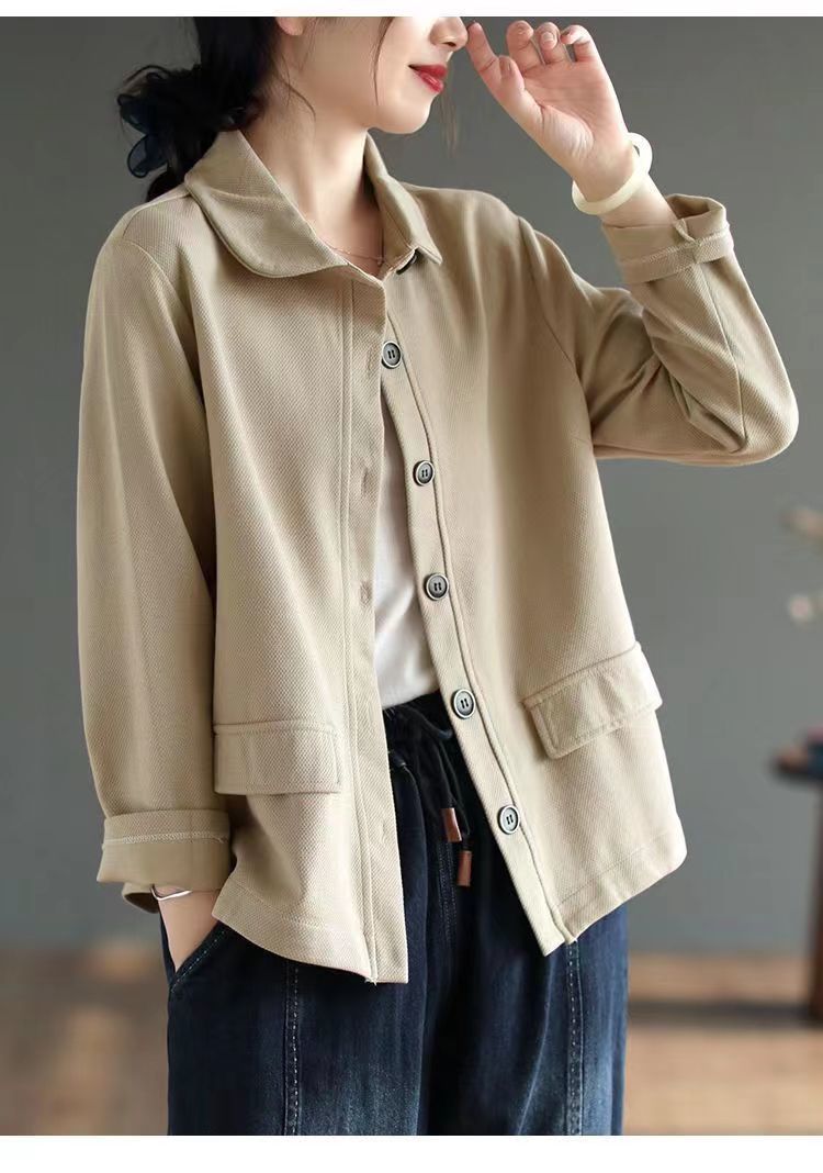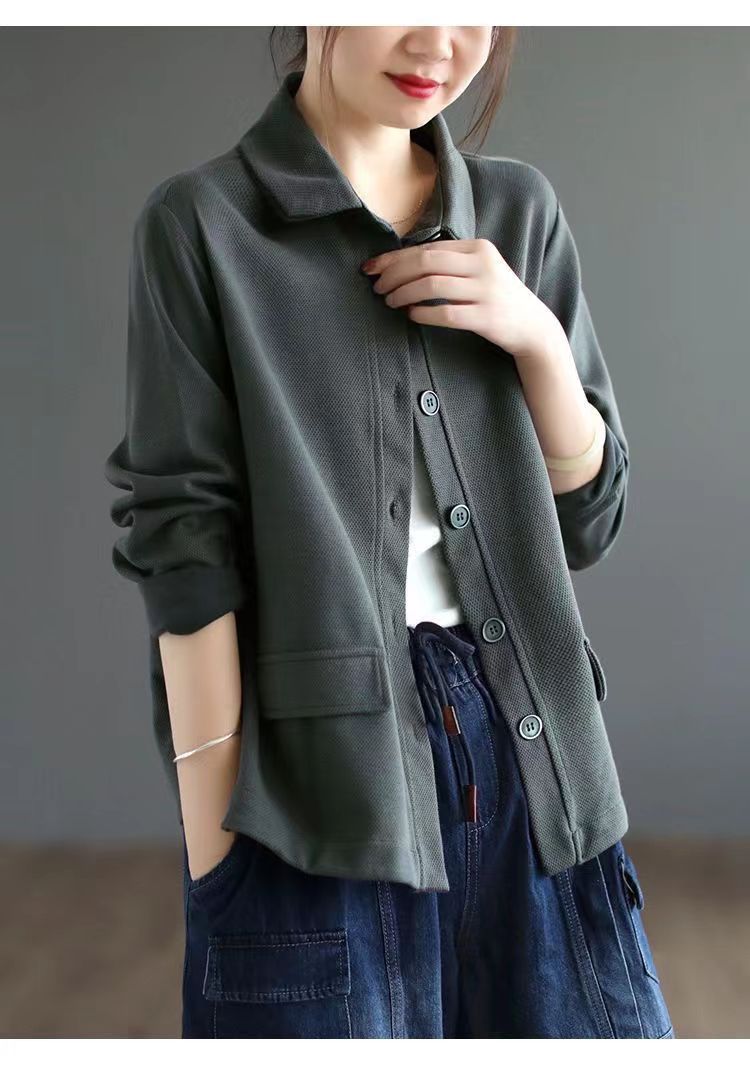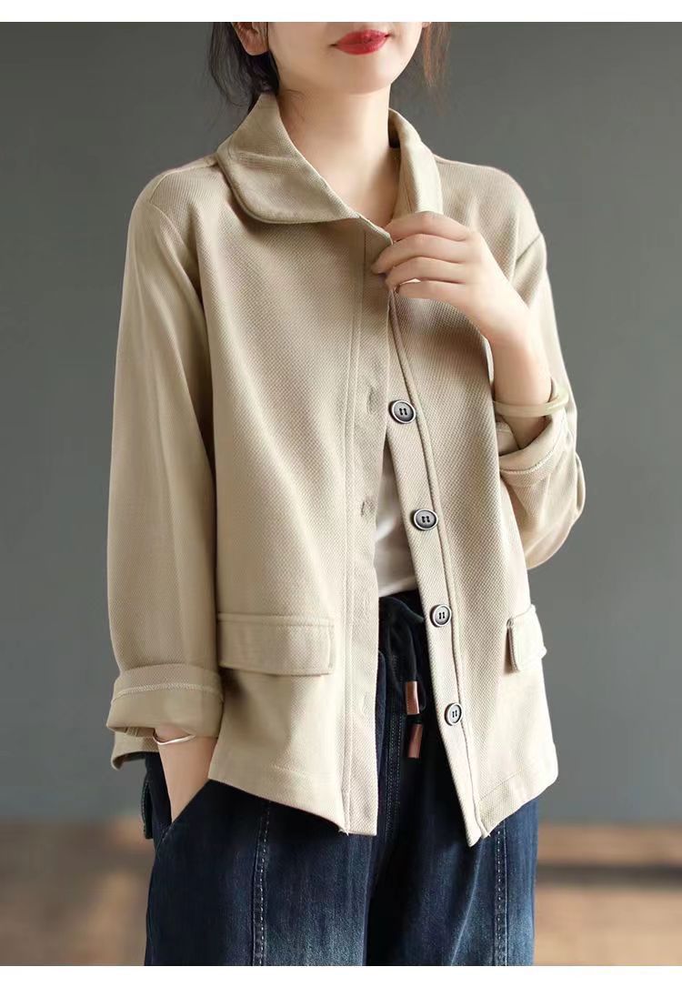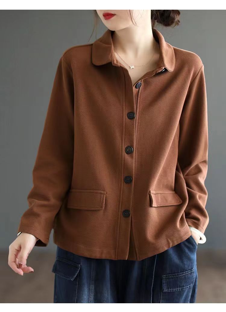2025 Otoño Nuevo Versátil Moda para Mujer Retro Artístico Commuter Color Sólido Suelto Chaqueta de Un Solo Botón