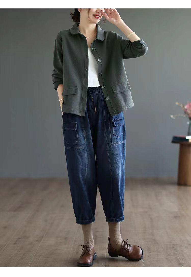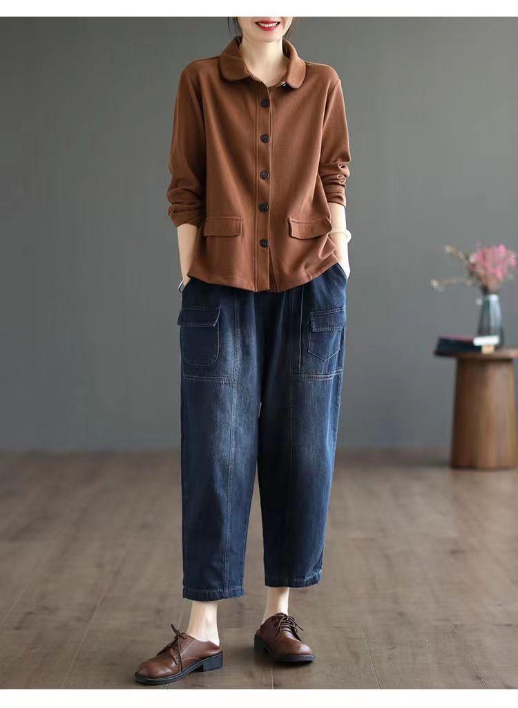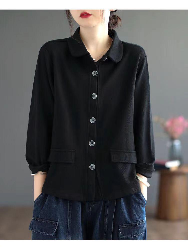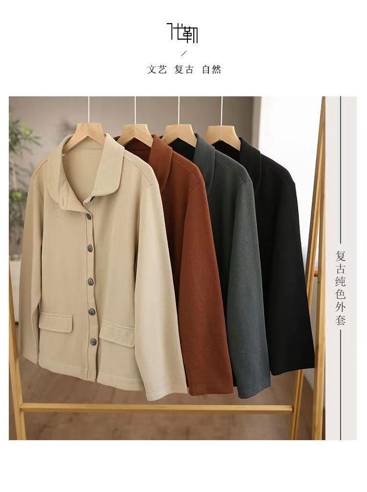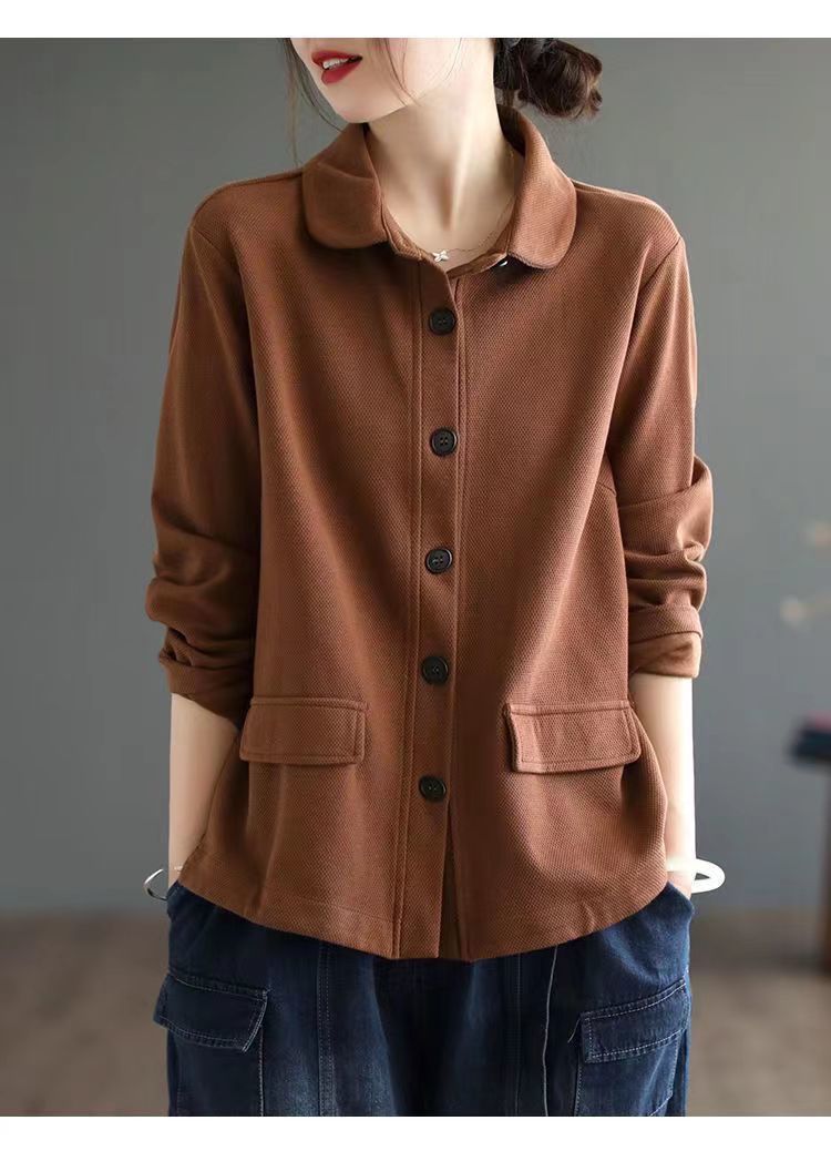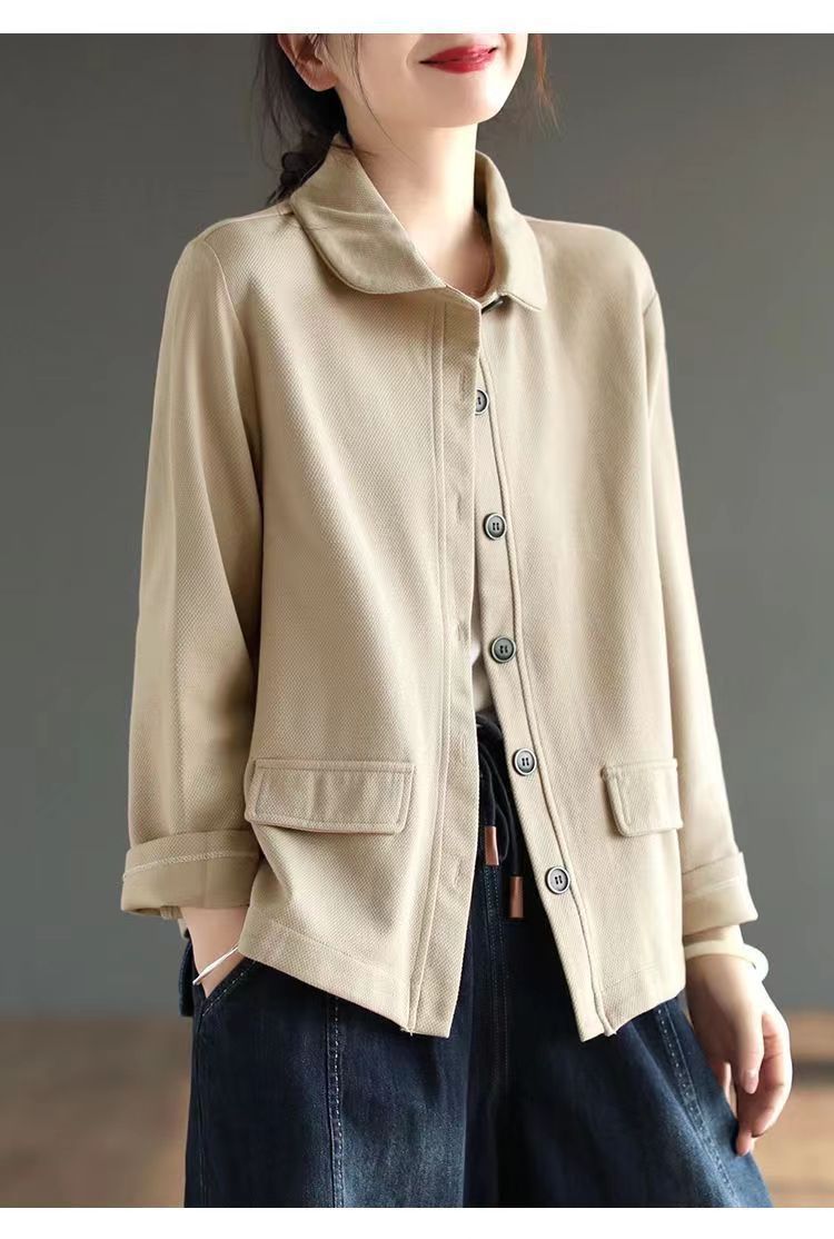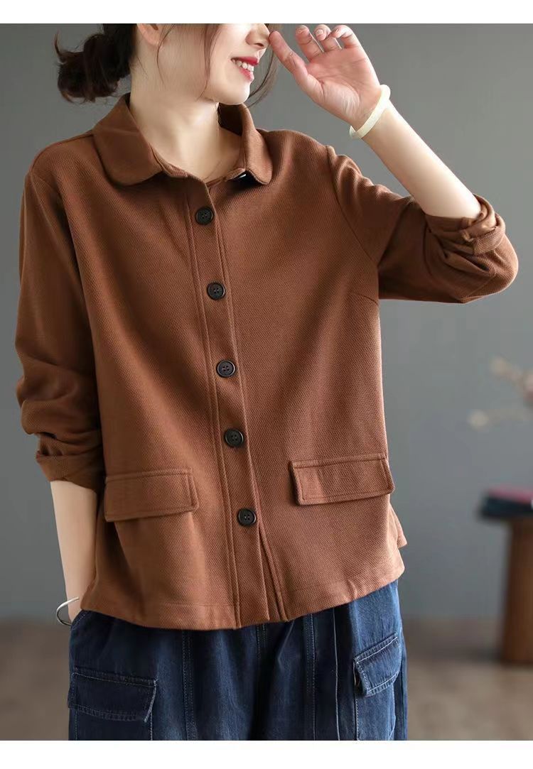 2025 Otoño Nuevo Versátil Moda para Mujer Retro Artístico Commuter Color Sólido Suelto Chaqueta de Un Solo Botón