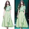 Vestido de verano con un conjunto de la moda popular de este año, hermoso temperamento, top de punto de manga corta, falda, traje de dos piezas