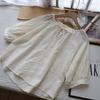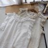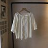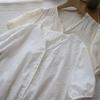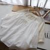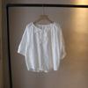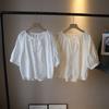[Bizheng] Verano 2025 Nuevo Coreano Cuello Redondo Cordones Calado Bordado Suelto Slim Manga Corta Camisa para Mujer 4222
