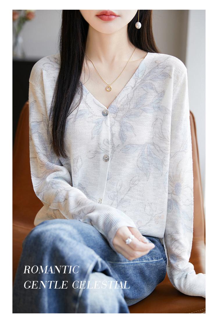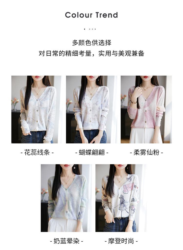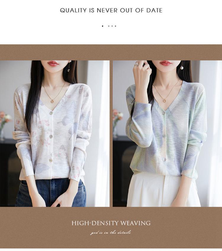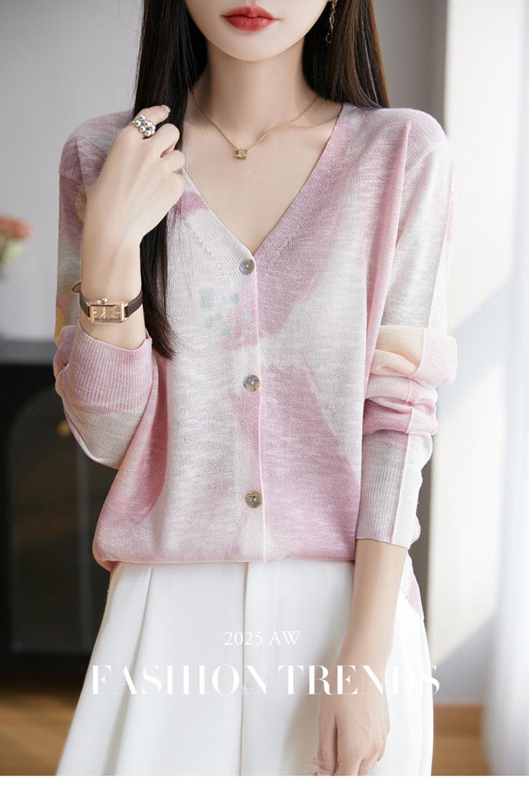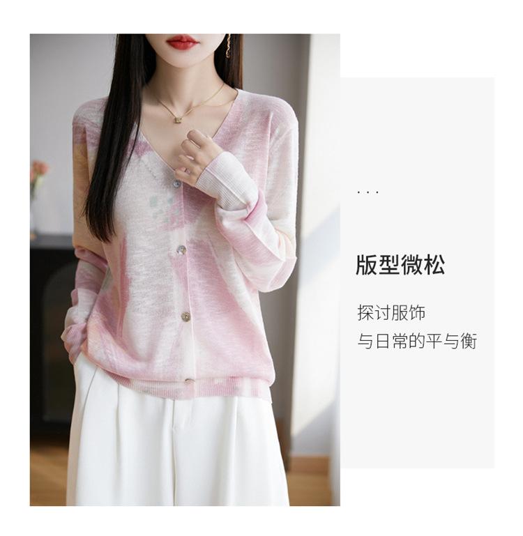Cárdigan Tejido con Cuello en V Tie-Dye a Juego de Colores para Mujer, Nuevo Verano, Camisa para Aire Acondicionado, Exterior Estilo Occidental Talla Grande, Top con Protección Solar