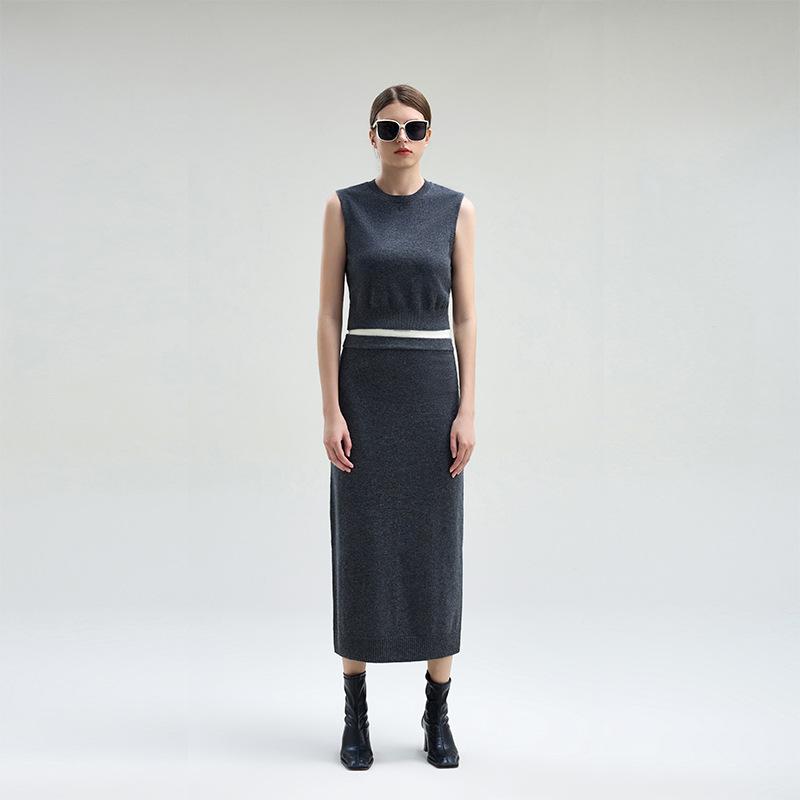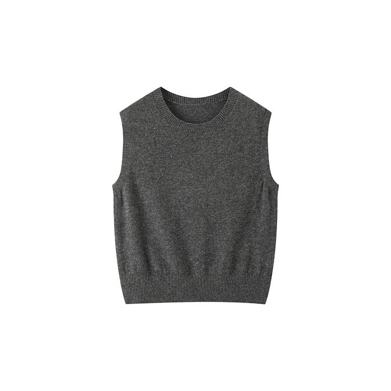 Sjia Nanyou Elegante Venta al por Mayor Primavera y Verano Gris Cuello Redondo Sin Mangas Jersey Tejido de Lana Cachemira Prendas de Punto Top para Mujer