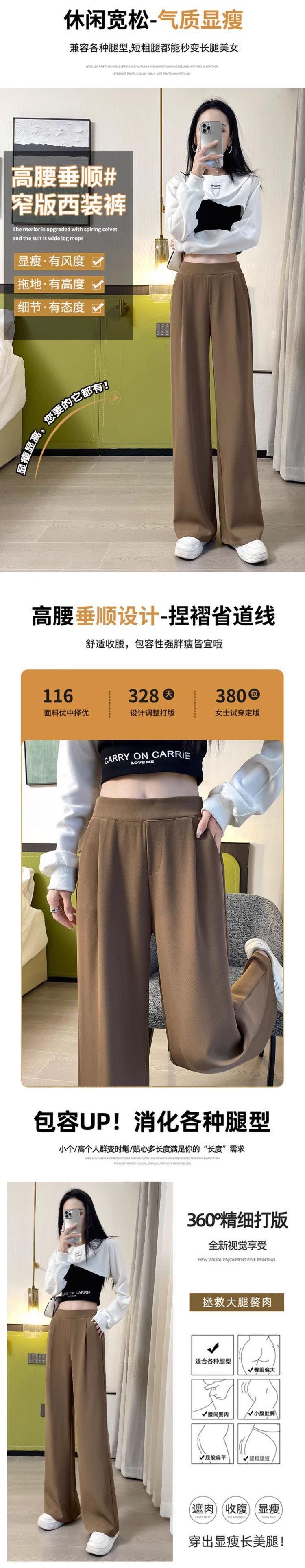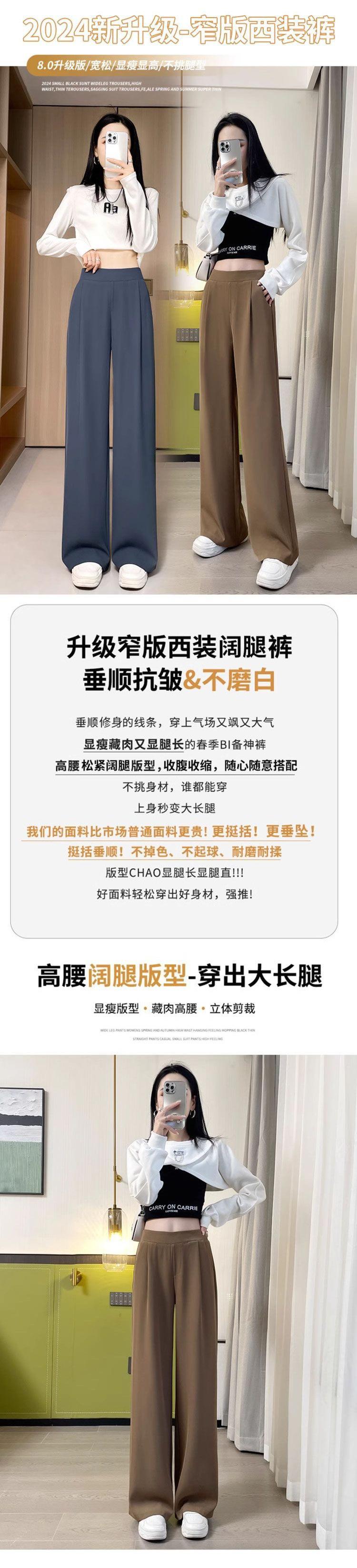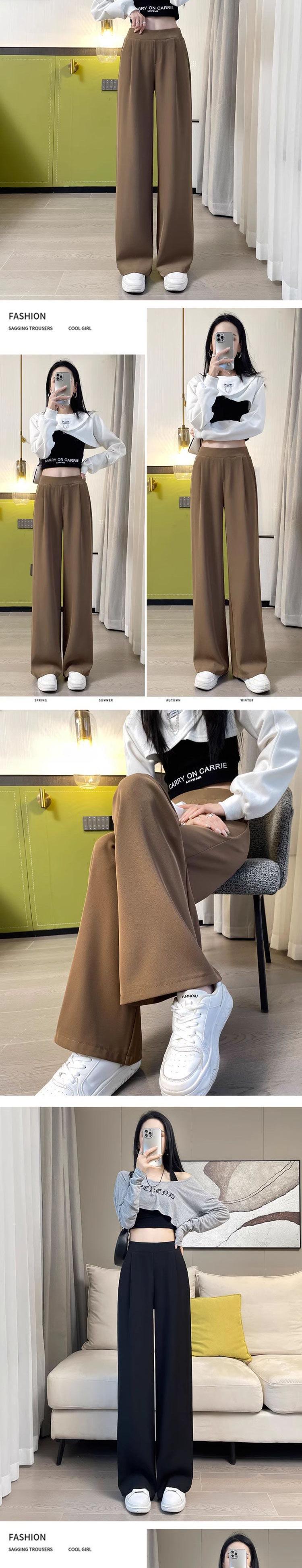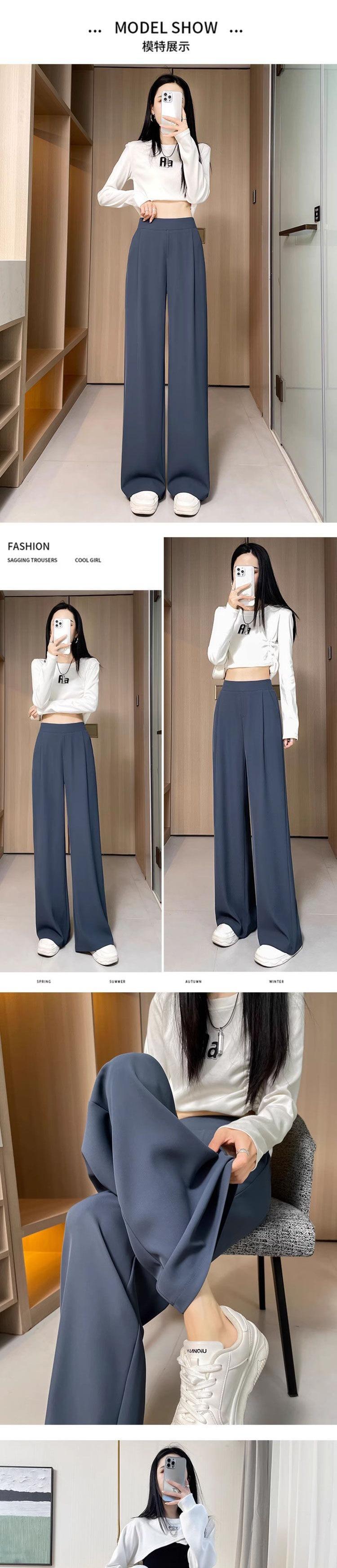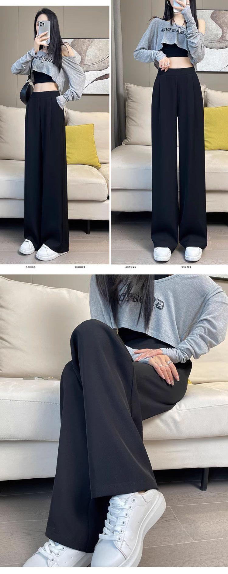Pantalones Occidentales Pantalones de Pierna Ancha Pantalones de Mujer Primavera y Otoño Drapeados 2024 Nuevas Explosiones Cintura Alta Adelgazantes Casuales Sueltos Rectos