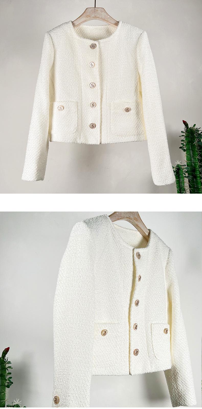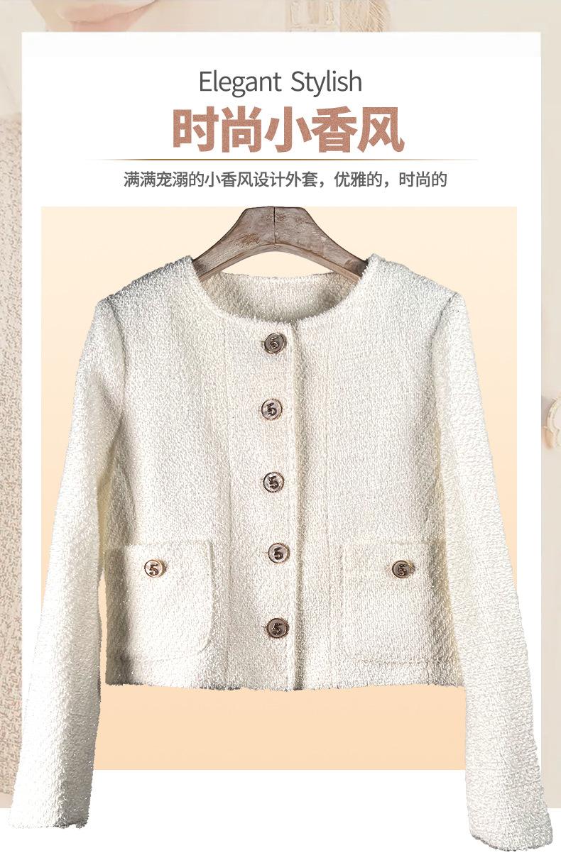 Chaqueta Pequeña Fragante de Tweed de Lana Estilo Coreano Nuevo 2024 para Mujer, Tops Regulares de Moda Estilo Dama Corta para Mujer