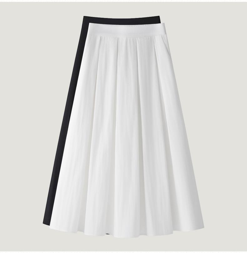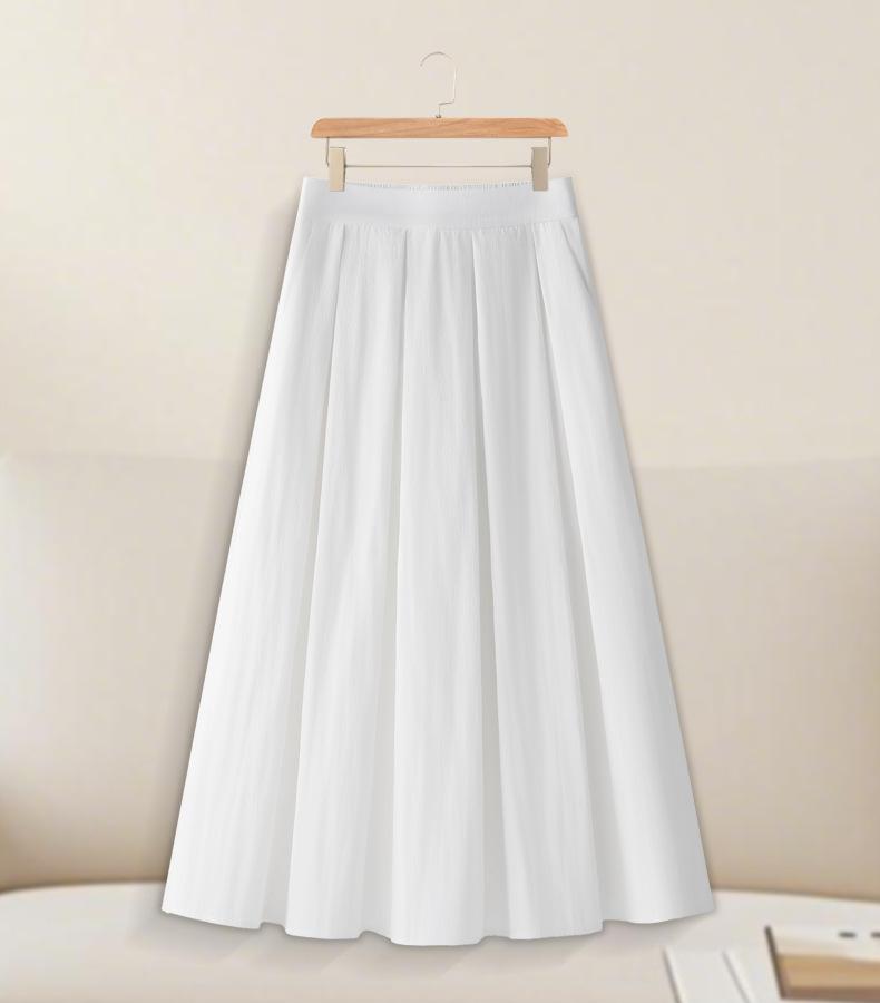 Falda Paraguas Blanca Suave Elegante para Mujer Verano Nueva Falda A-Line Plisada Drapeada de Cintura Alta Falda Midi