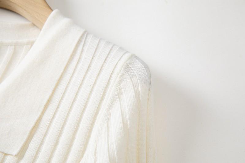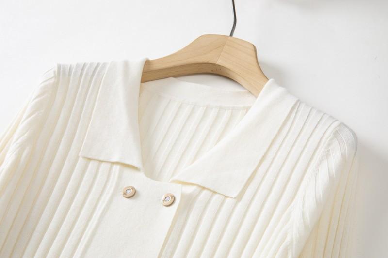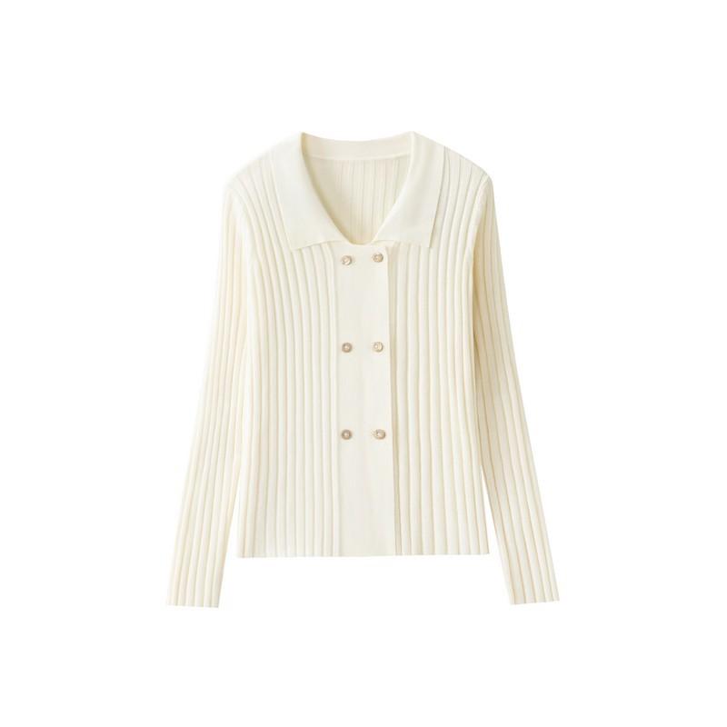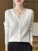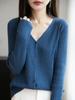 Cárdigan de Lana de Punto Acanalado Elegante Personalizado con Cuello en V, Suéter Vintage para Mujer, Solapa, Color Sólido, Abotonado, Manga Larga
