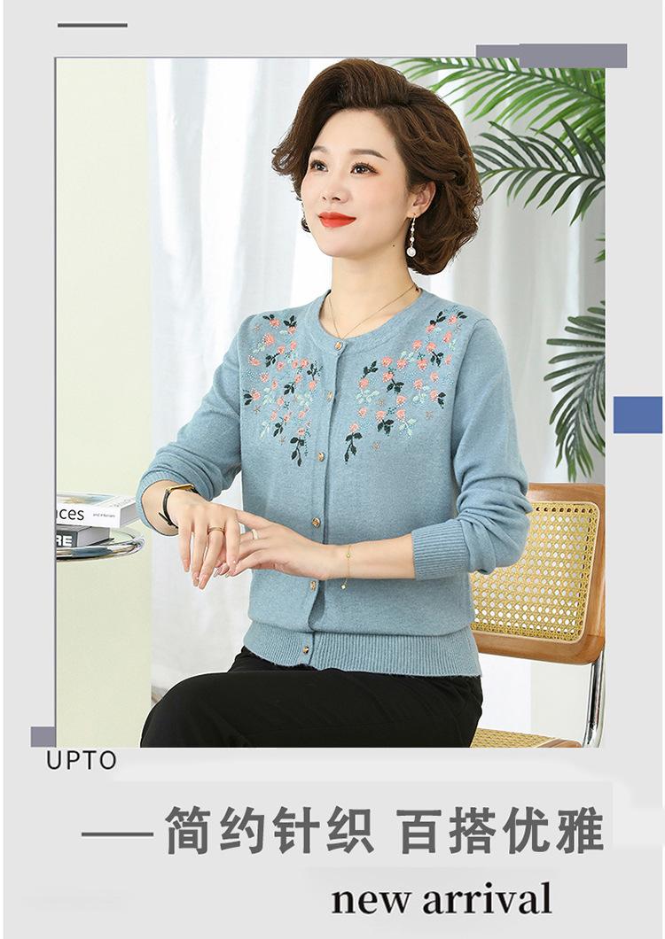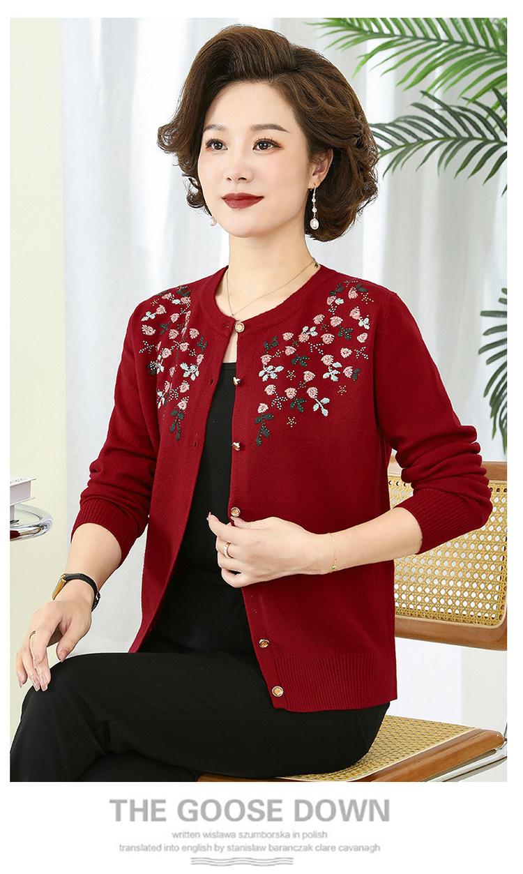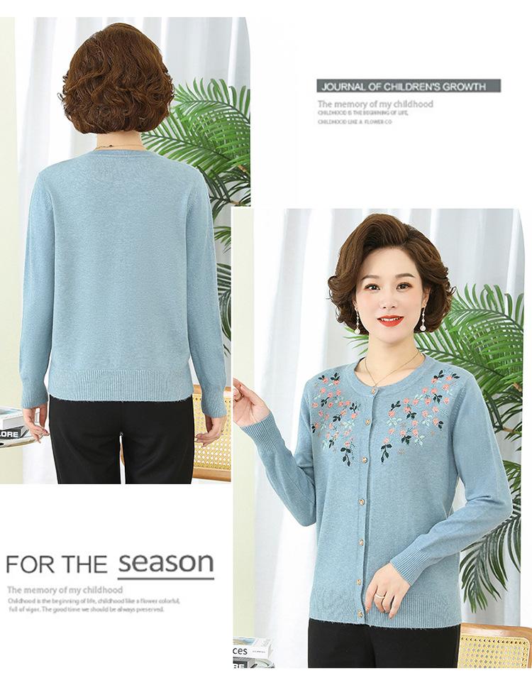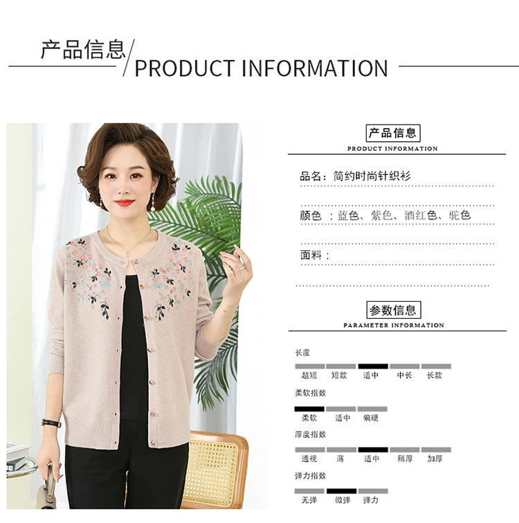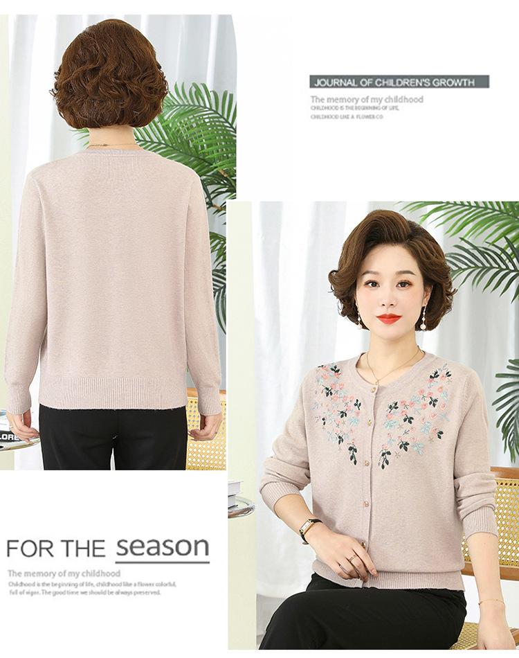 Cárdigan Suéter de Otoño para Madre con Cuello Redondo Bordado para Mujeres de Mediana Edad de Color Sólido Estilo Occidental Tejido Holgado Primavera y Otoño
