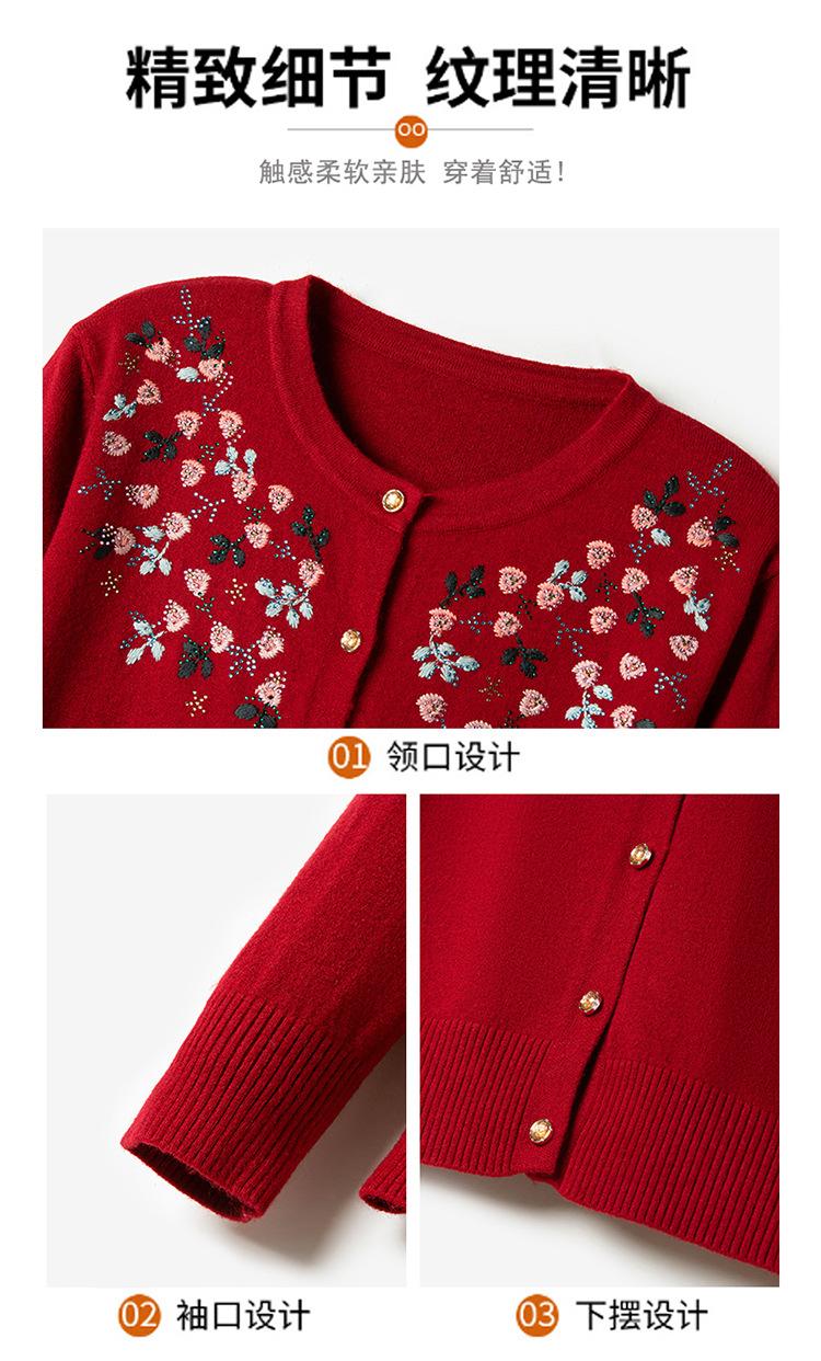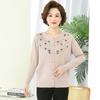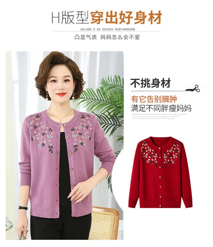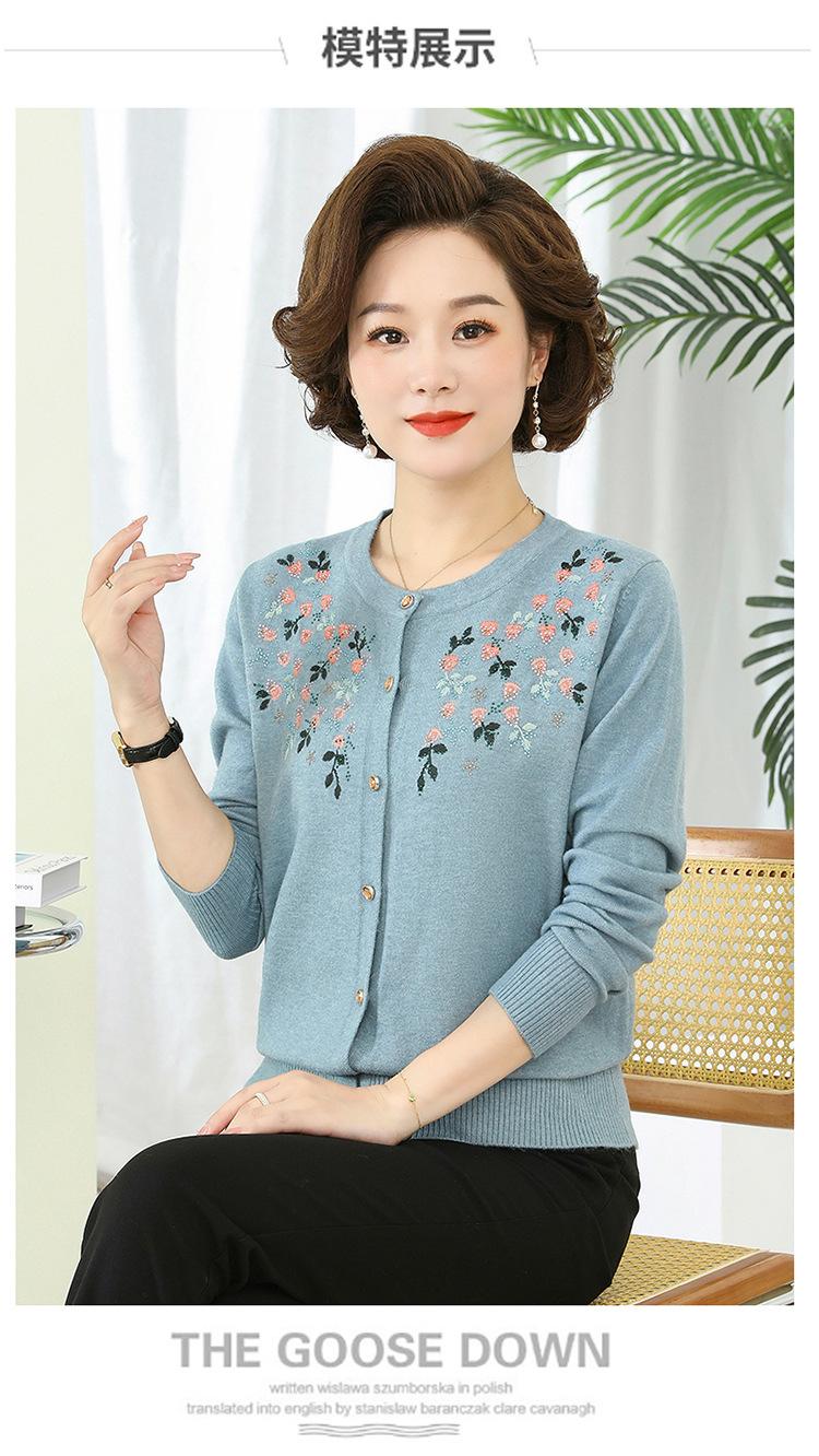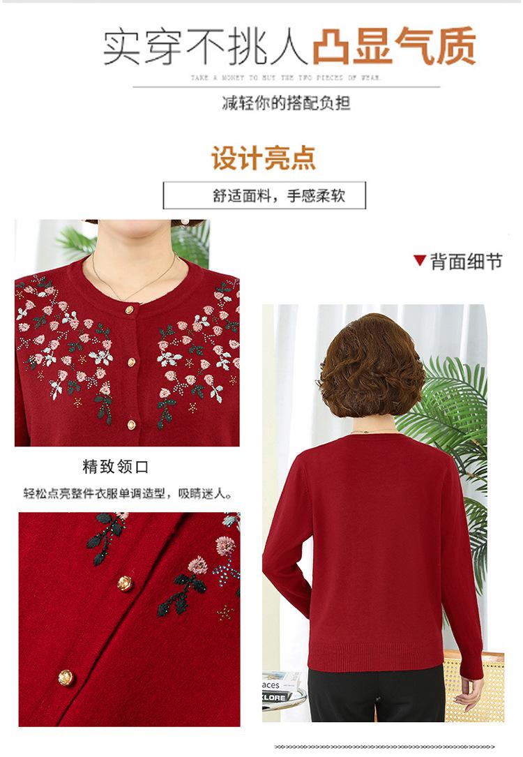 Cárdigan Suéter de Otoño para Madre con Cuello Redondo Bordado para Mujeres de Mediana Edad de Color Sólido Estilo Occidental Tejido Holgado Primavera y Otoño