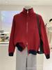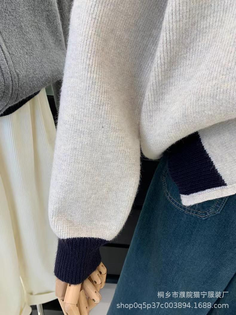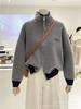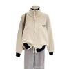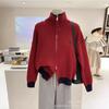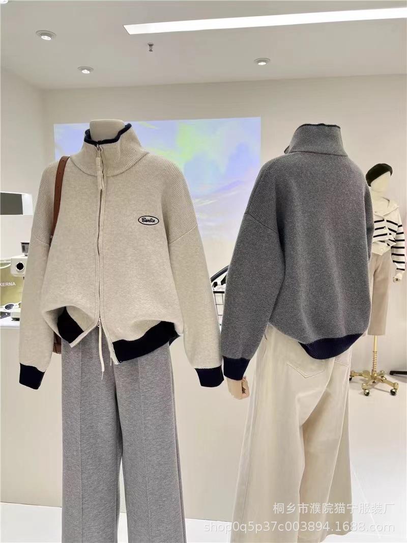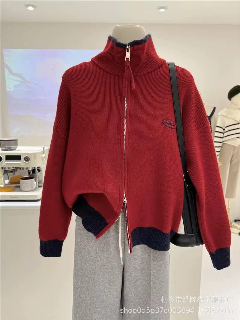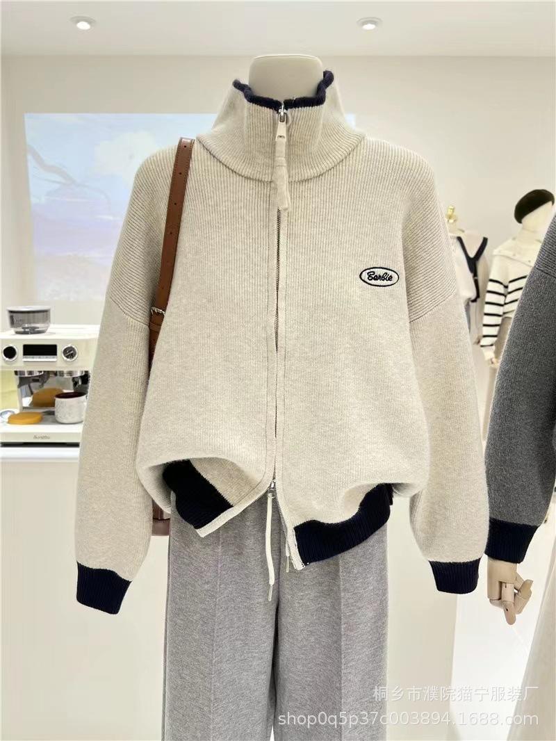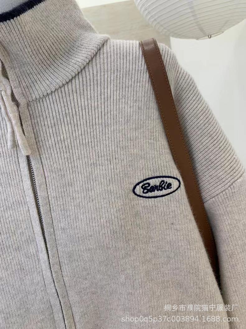 Otoño e Invierno Nuevo Coreano Retro Combinación de Colores Simple Bordado Estilo Perezoso Suéter Cálido Cárdigan Holgado con Cremallera Chaqueta de Mujer