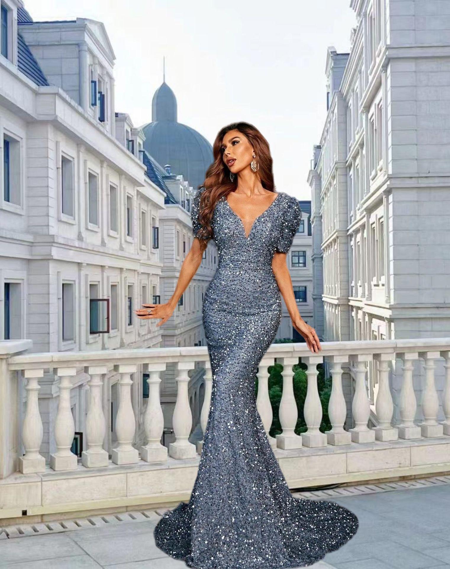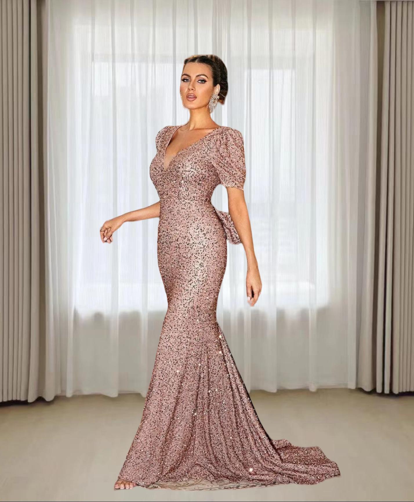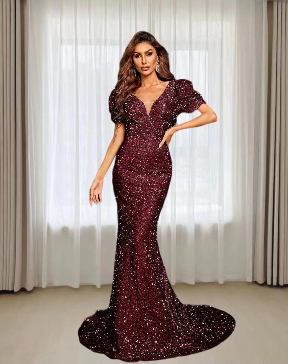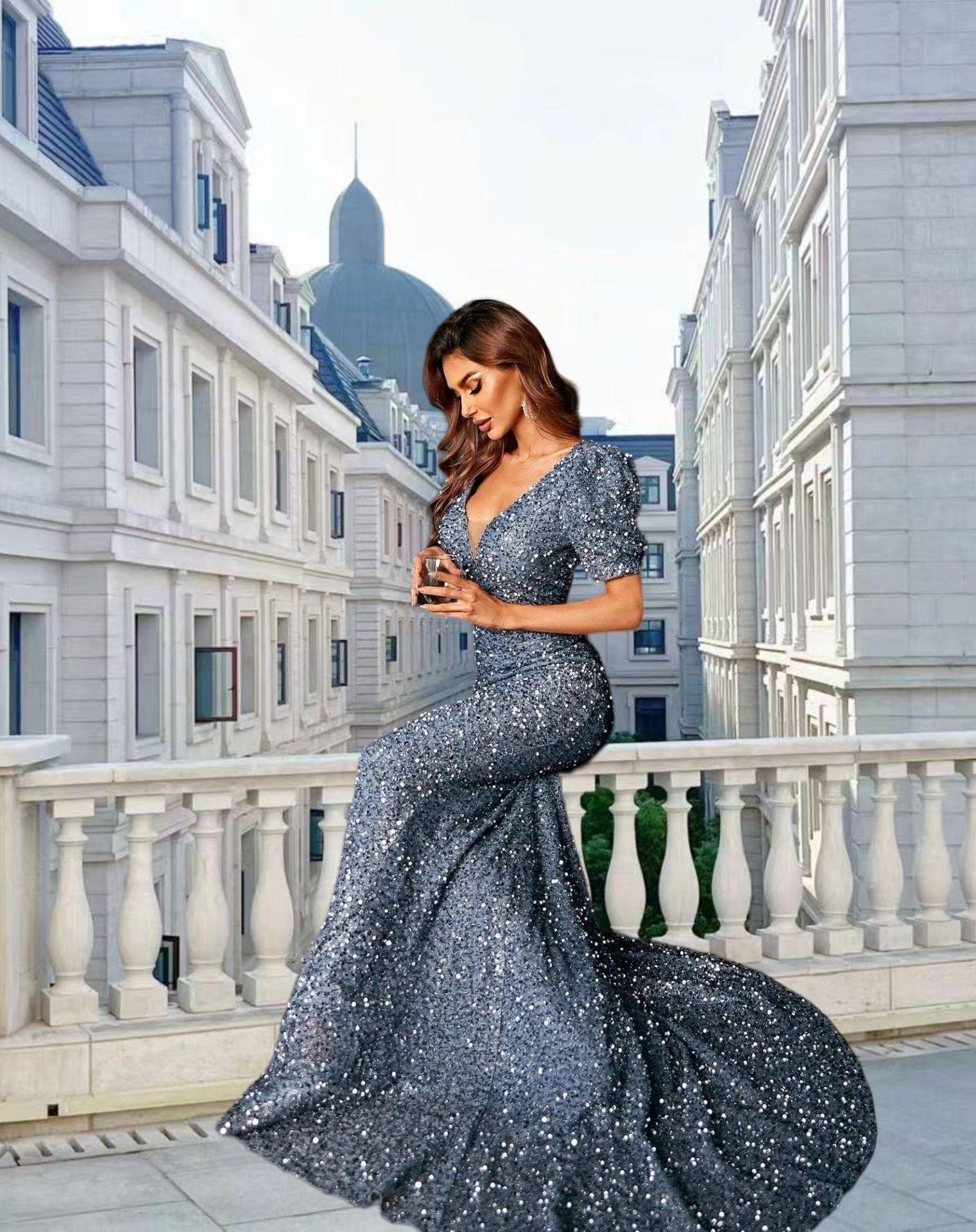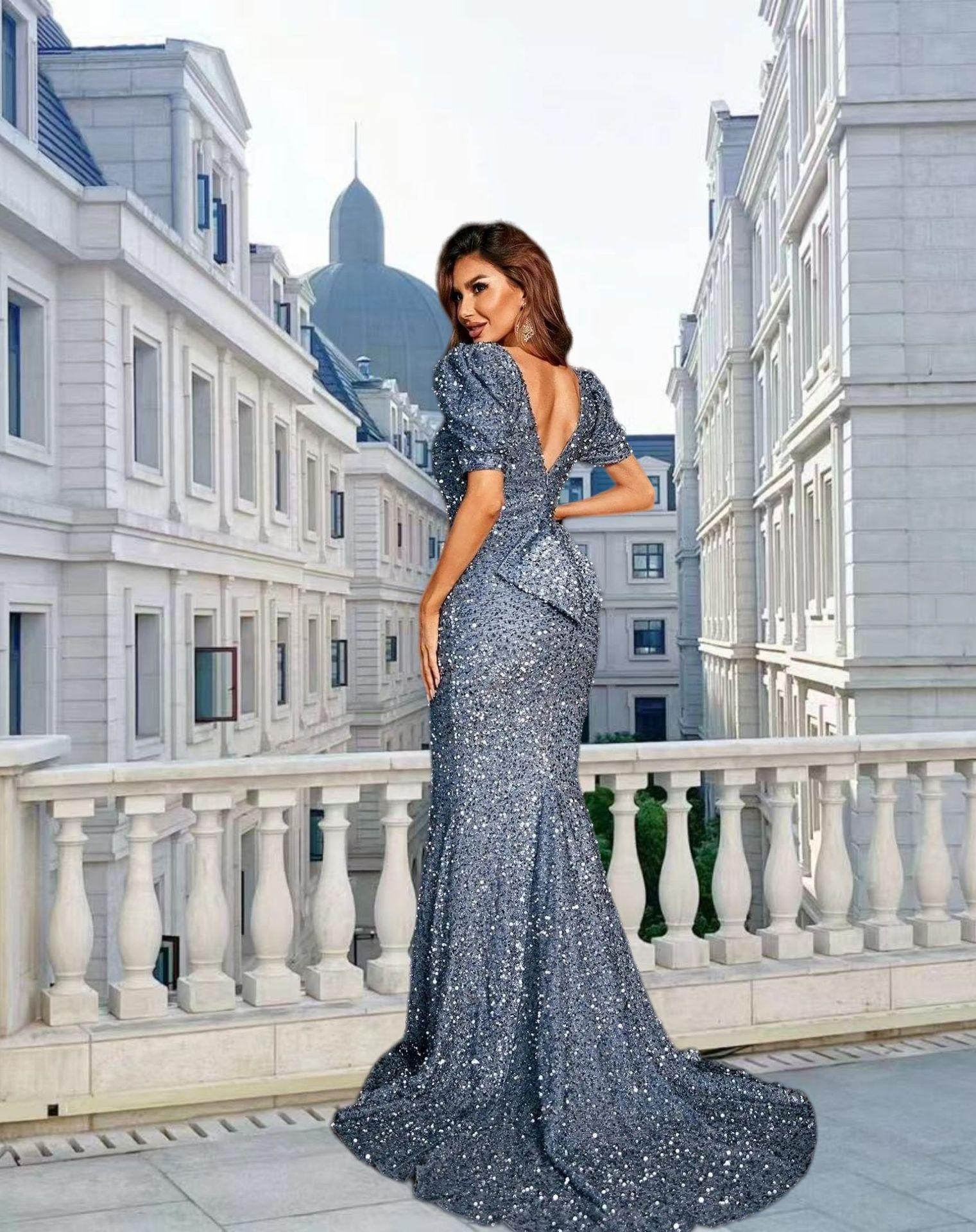 Nuevo AliExpress Amazon vestido de trapeador cola de pez falda extragrande top de tubo lazo trasero vestido de noche más joven