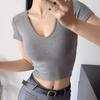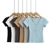 Playera Corta de Cuello en V Cruzada con Diseño-Sense para Mujer Verano Ajustada Dulce y Sexy Cintura Alta Manga Corta Hombro