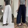 Primavera/Verano 2025 Nuevo Talla Grande Blanco Minimalista Cimitarra Pantalones Casuales Forma de Pera Cintura Alta Adelgazantes Recortados Pantalones de Pierna Ancha