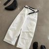 2025 Verano Nuevo Estilo Delgado Blanco Sencillo Machete Casual Forma de Pera Cintura Alta Adelgazante Pantalones Recortados de Pierna Ancha para Mujer Moderno