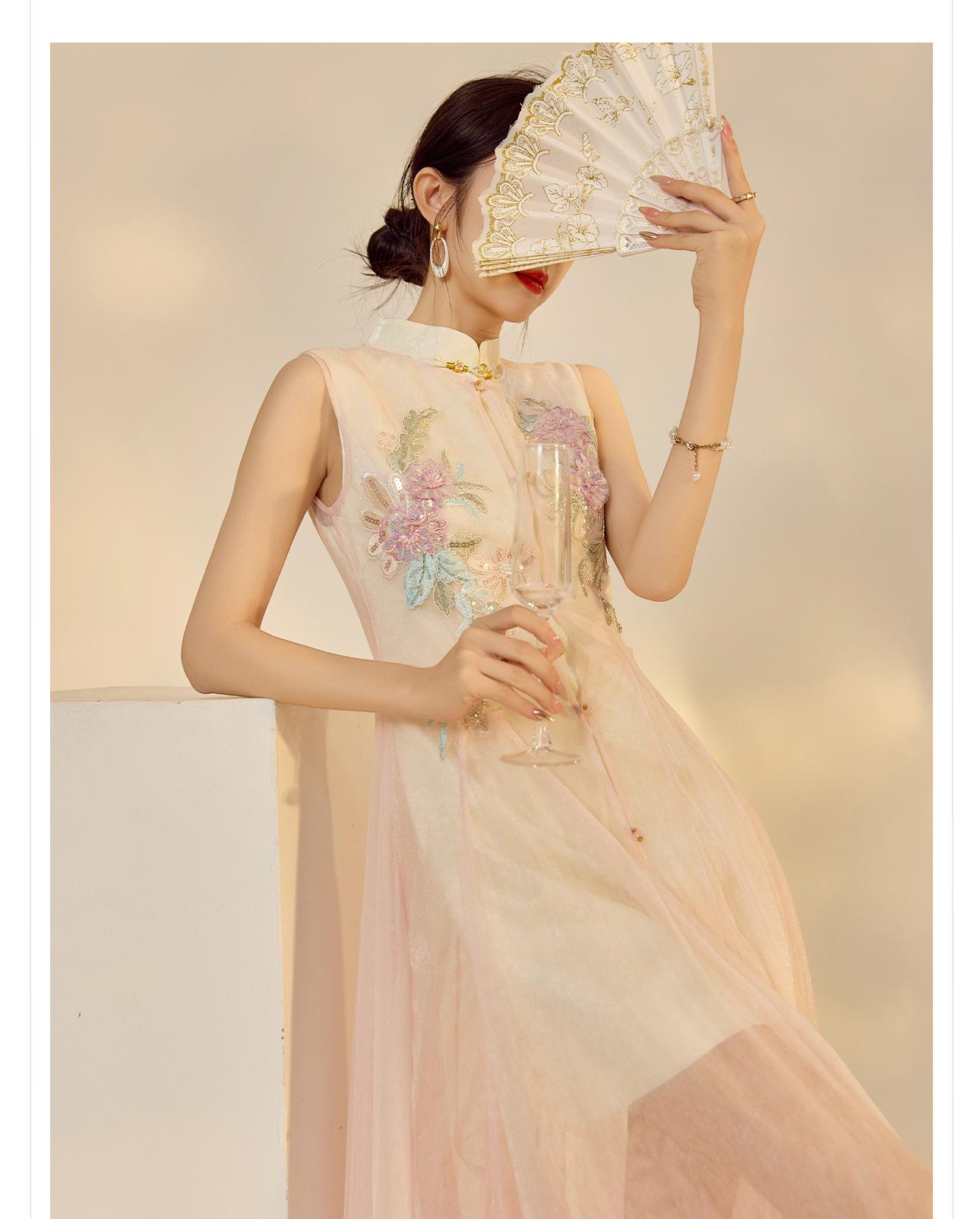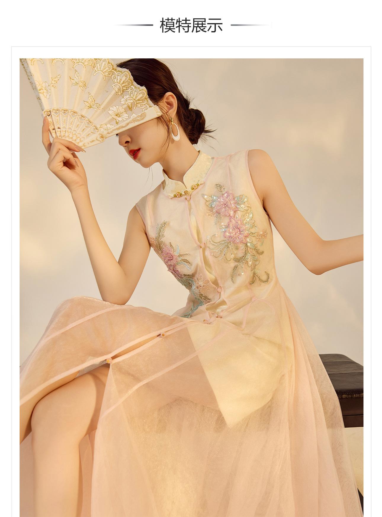 Estilo Nacional Verano 2025 Nuevo Cárdigan Largo Bordado con Lentejuelas Top Nuevo Estilo Chino Bordado Traje de Vestido N5033