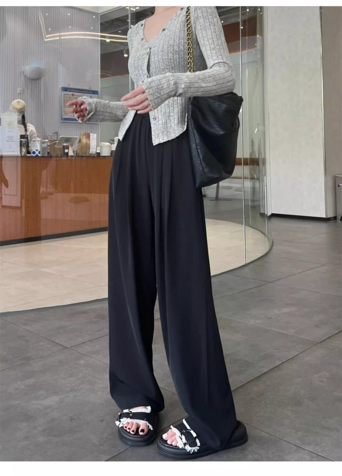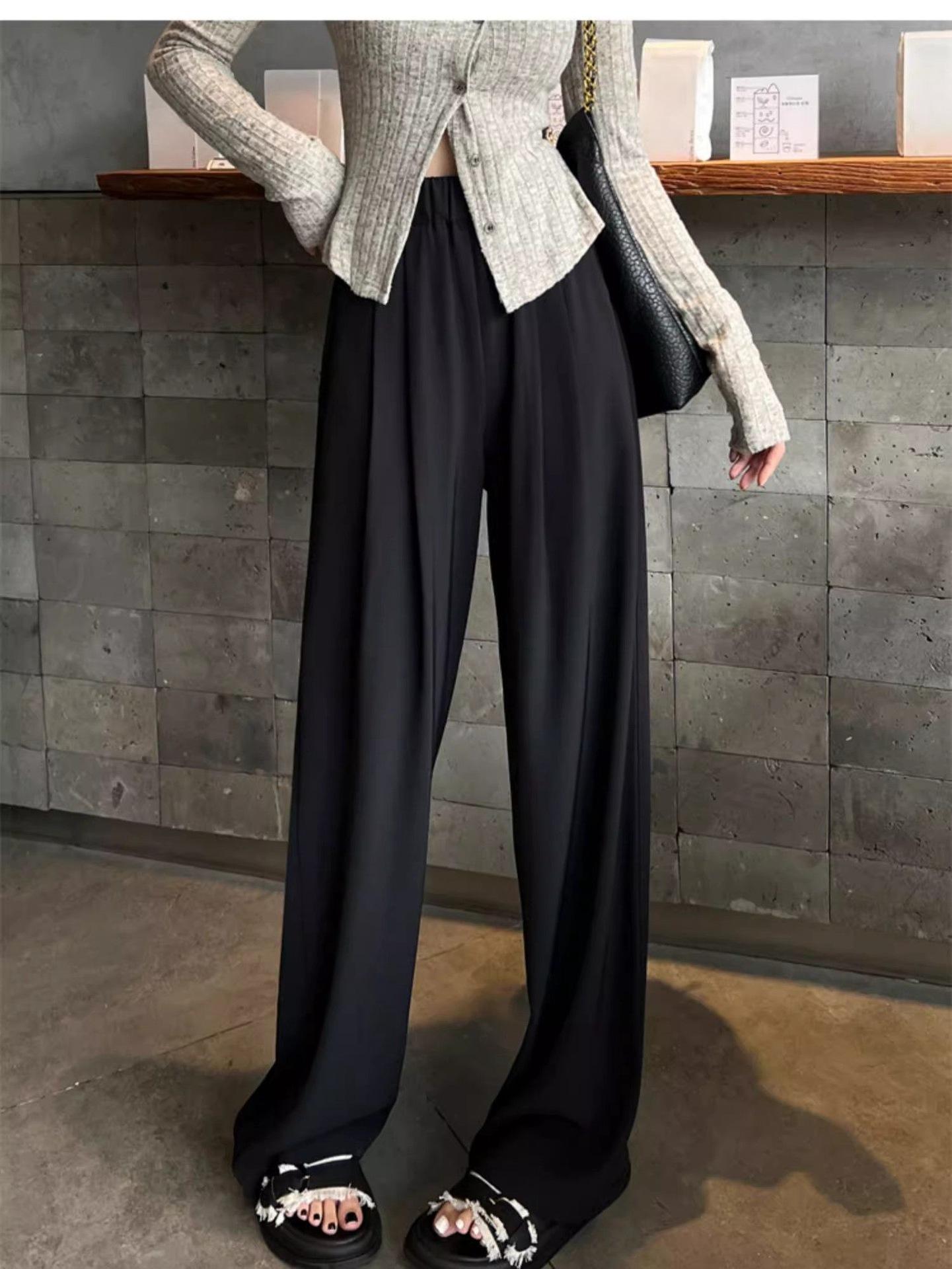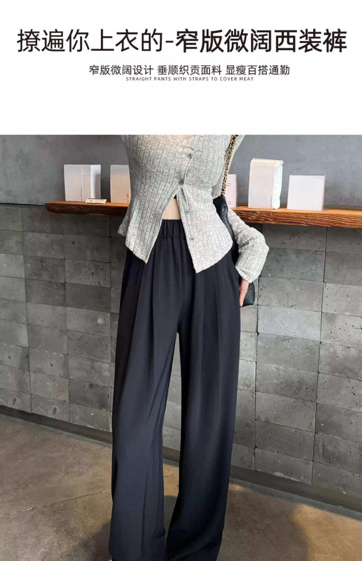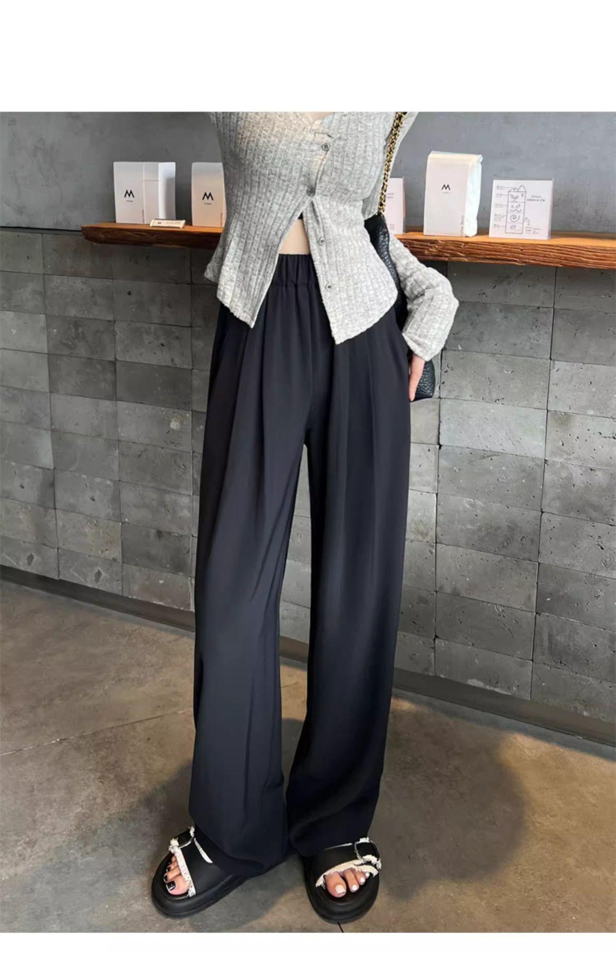 Azul marino Pantalones Estrechos para Mujer Primavera y Otoño 2025 Nuevo Recto Adelgazante Casual Cintura Alta Dosificación Pantalones de Pierna Ancha